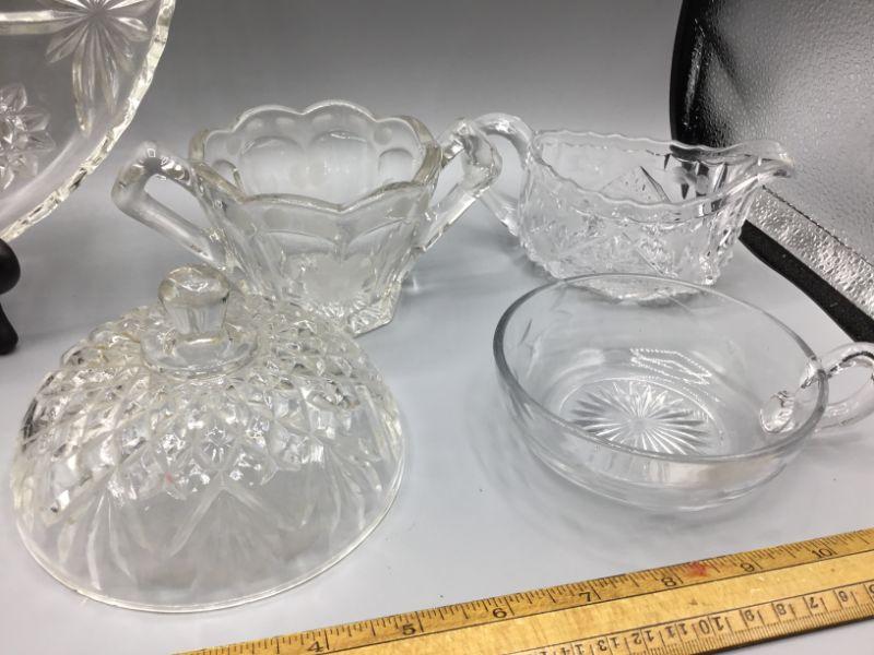 Random lot of vintage glass pieces. All are in good used condition, no chips.