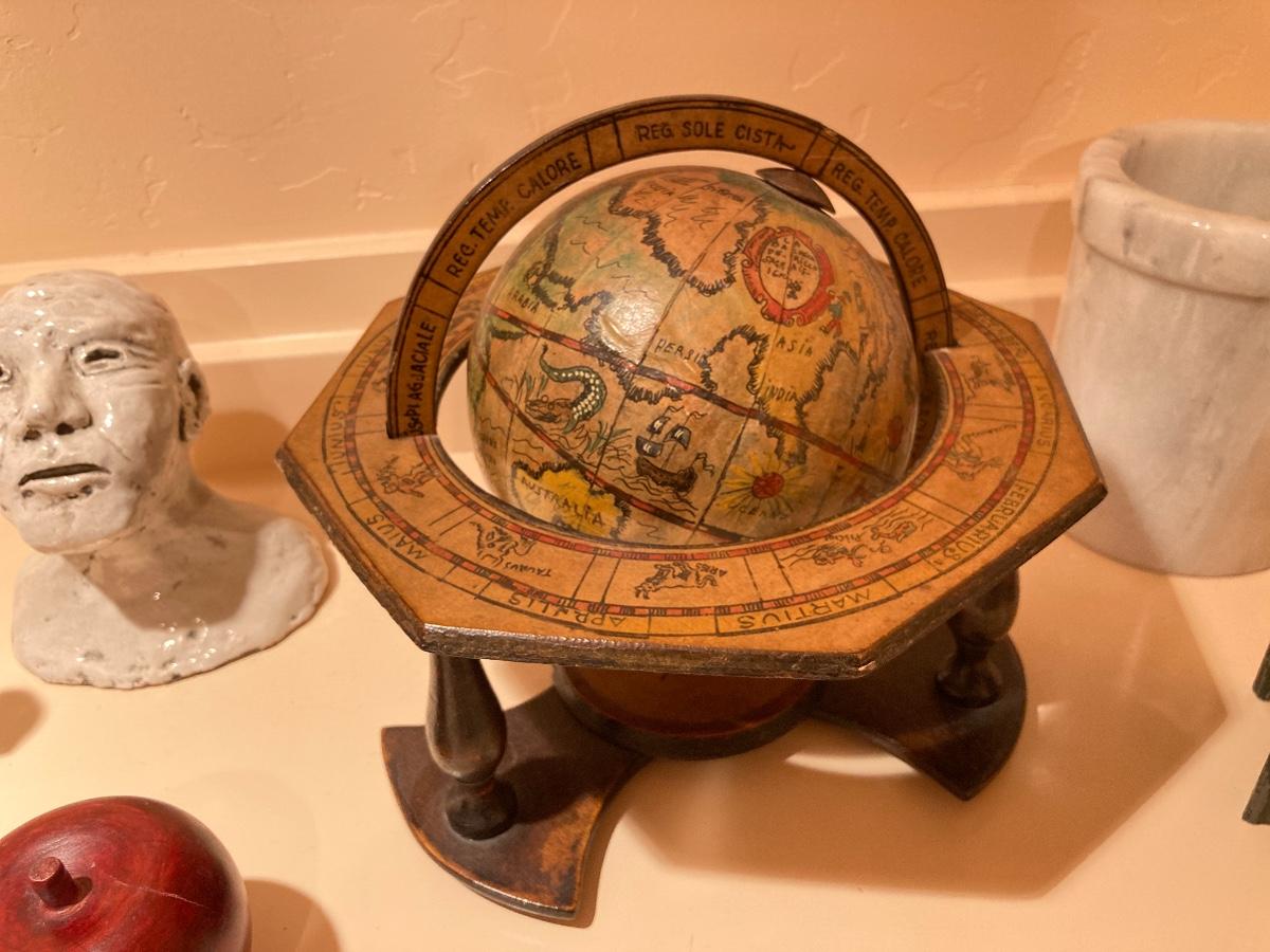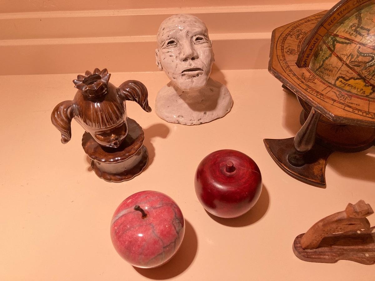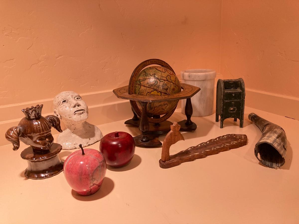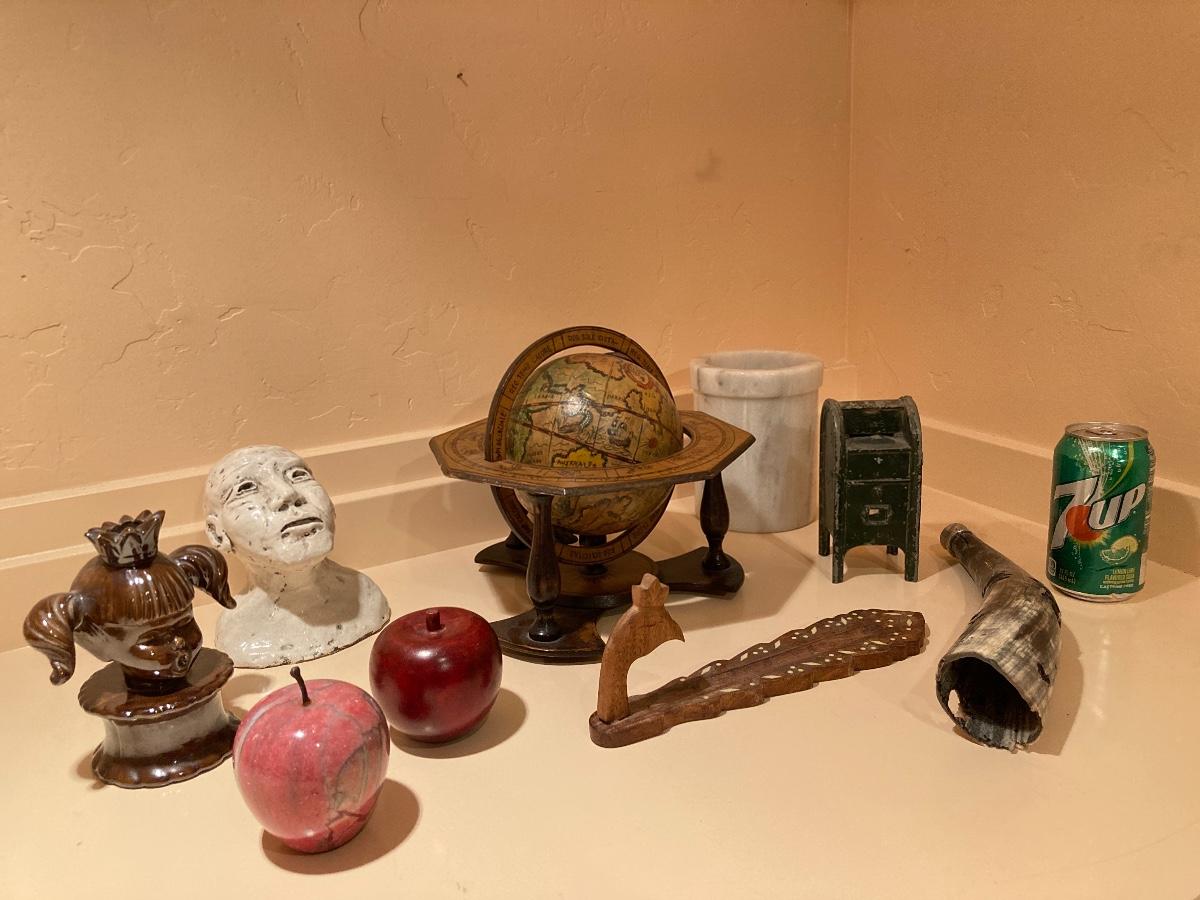 #353 Miscellaneous Home Decor: Globe, Incense Holder, Bank, Apples, Etc Lot of 9