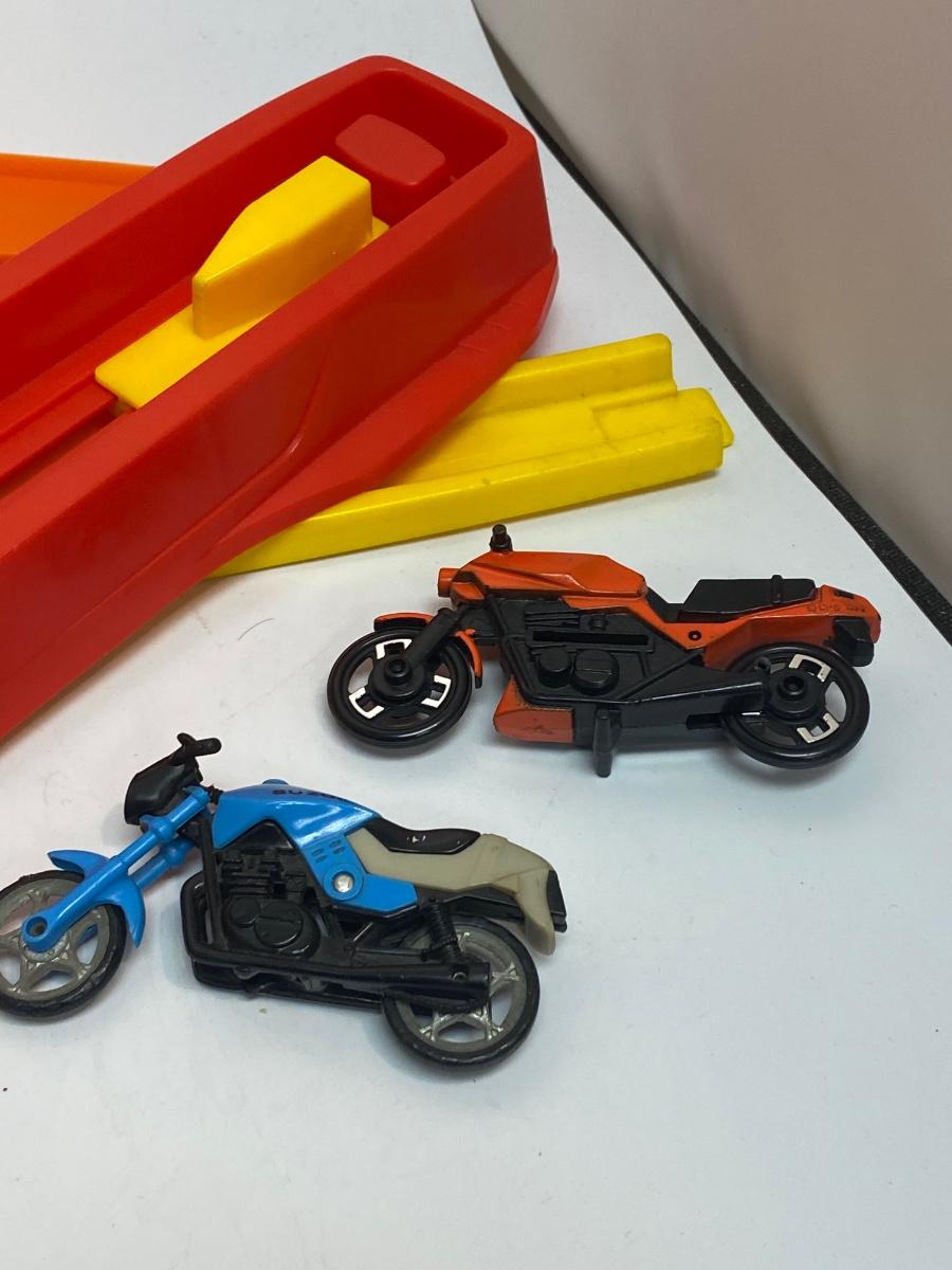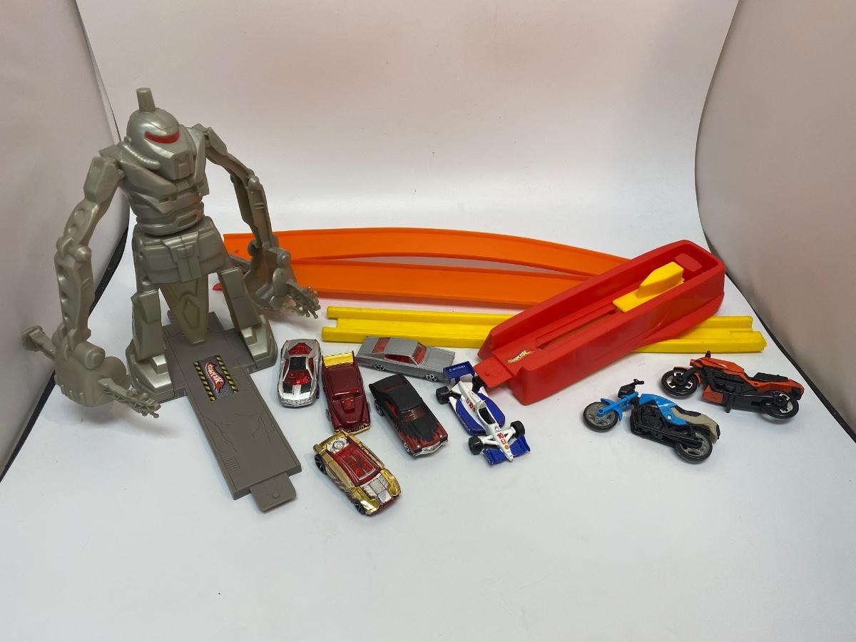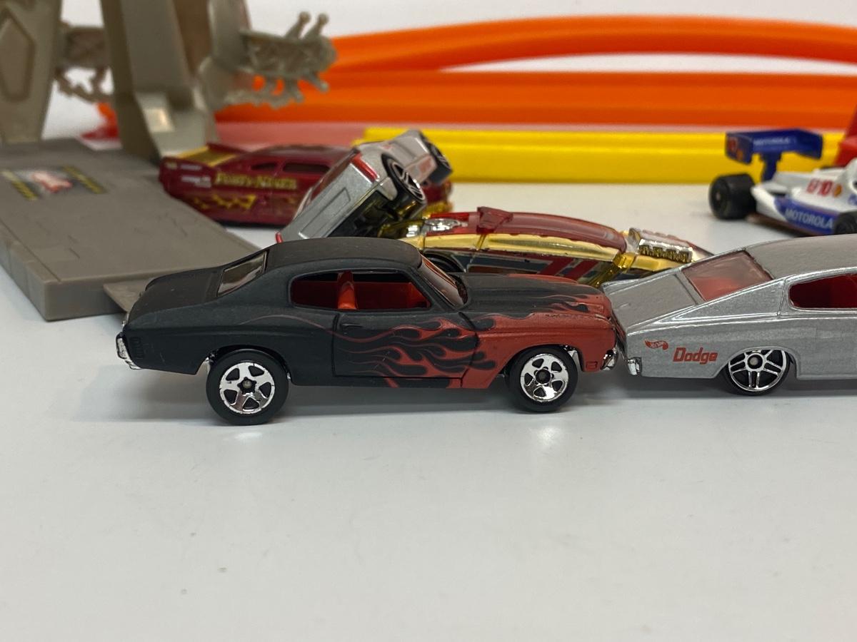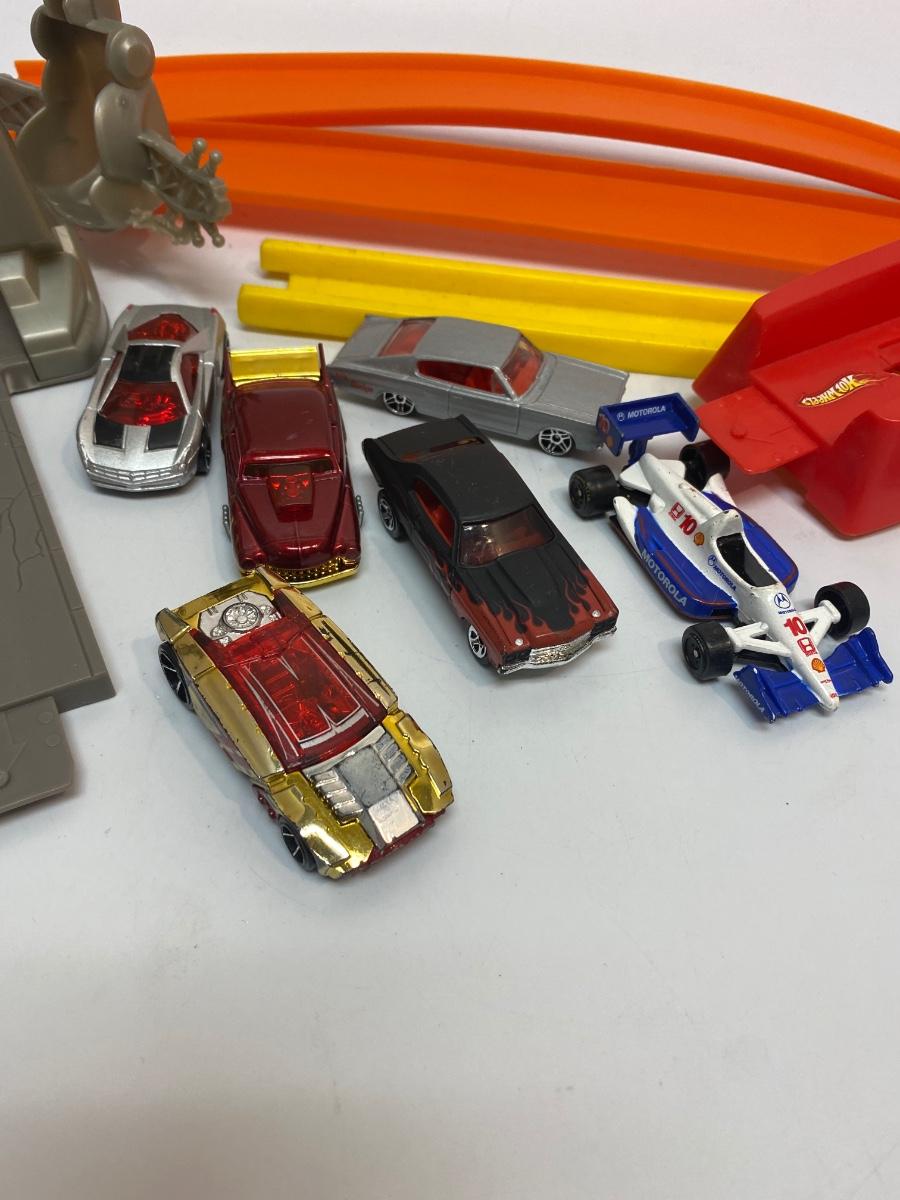 Miscellaneous Hot Wheels Cars & Track Pieces. Cars are in good condition, very little wear. The two motorcycles are just an added bonus.