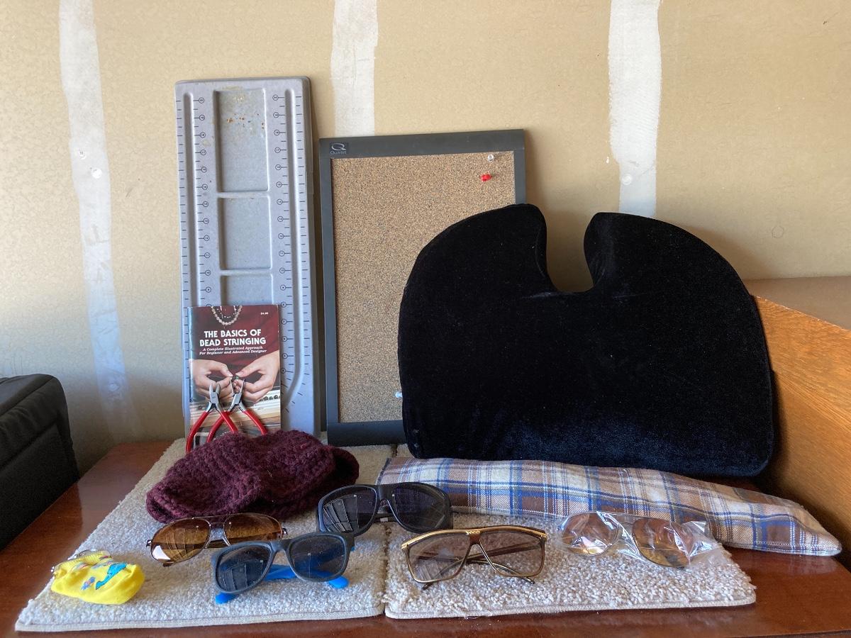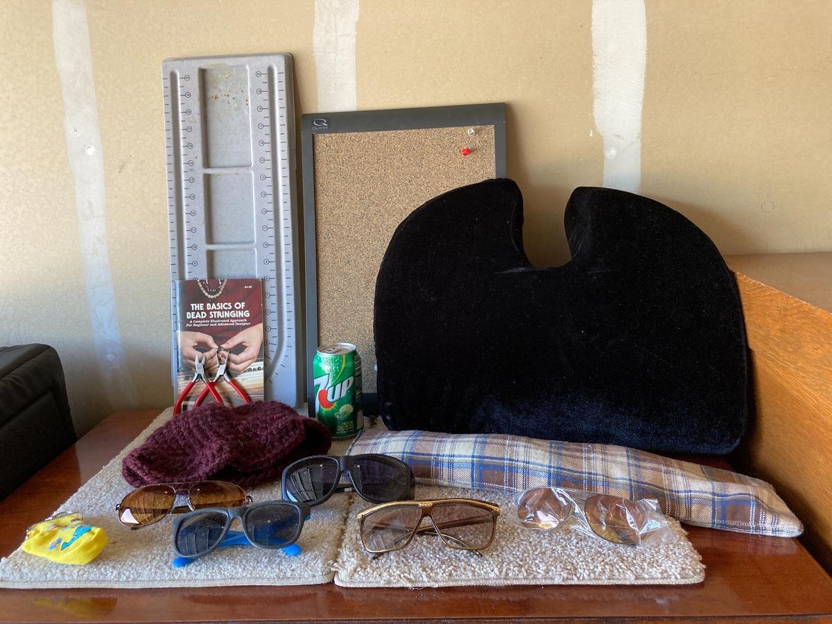 #450 Beading Board and Book, Cushion, Sunglasses, Etc