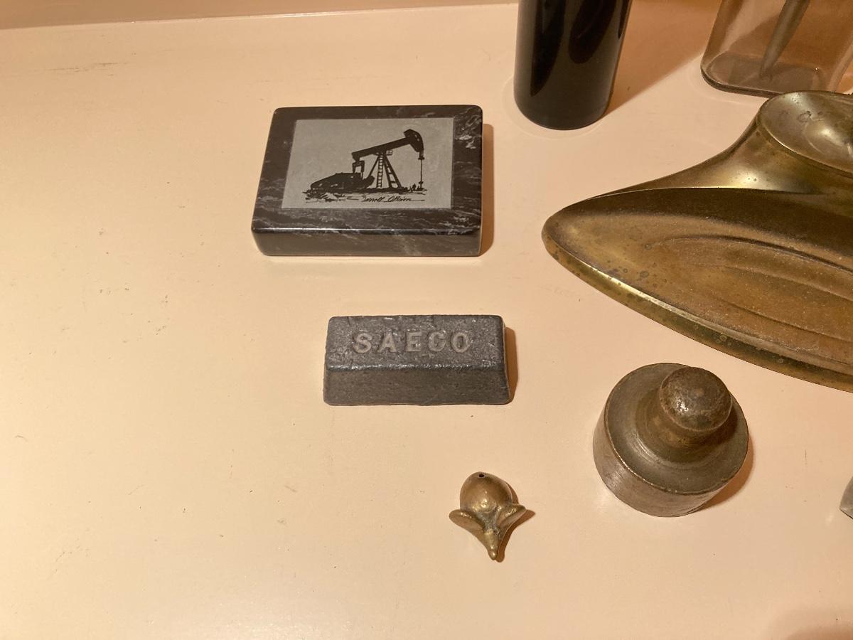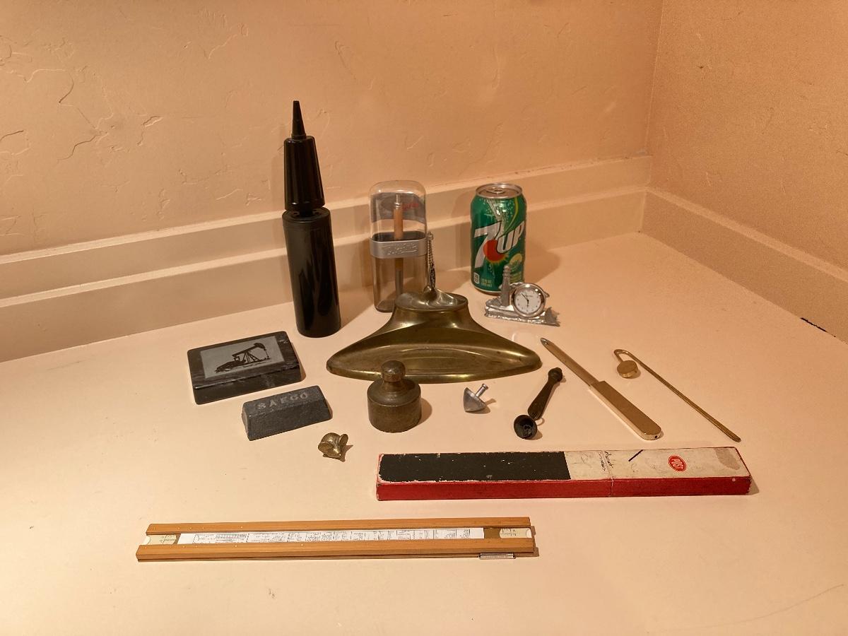 #355 Household/Office Items: Paper Weights, CLICKART Pen, POST Tool, Bell, Etc Lot of 13