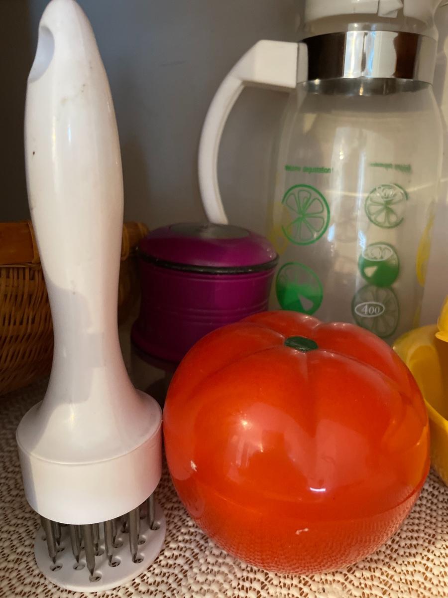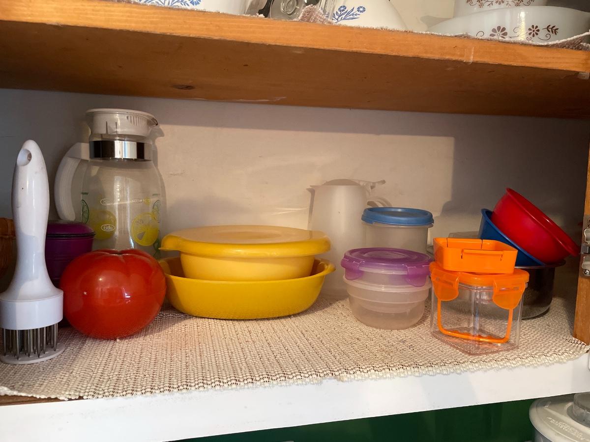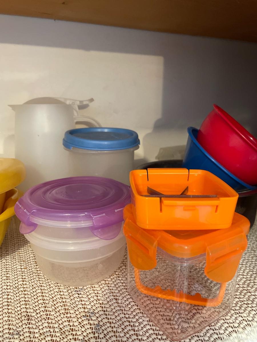 Includes lemon carafe, Hutzler plastic, Tupperware