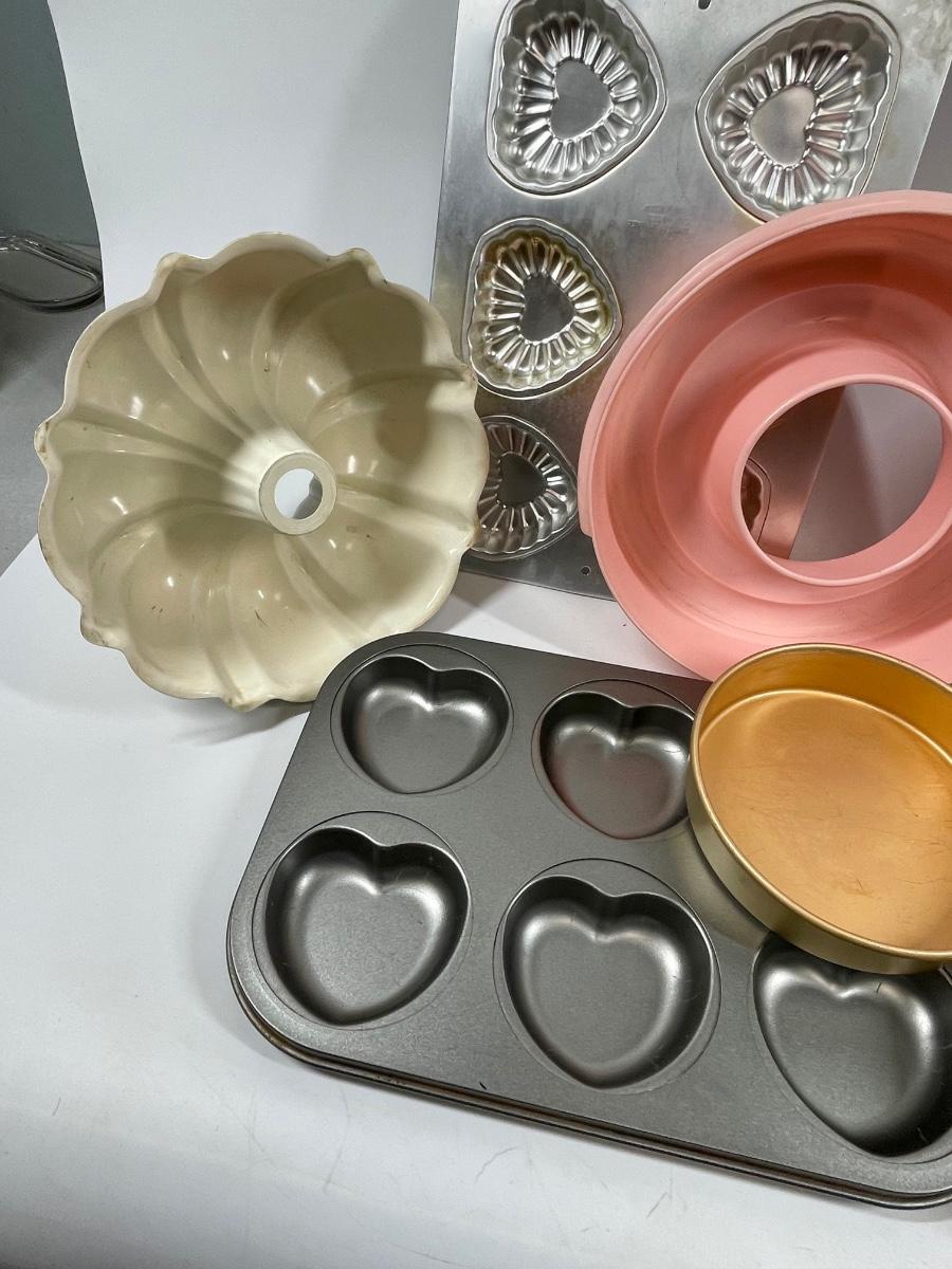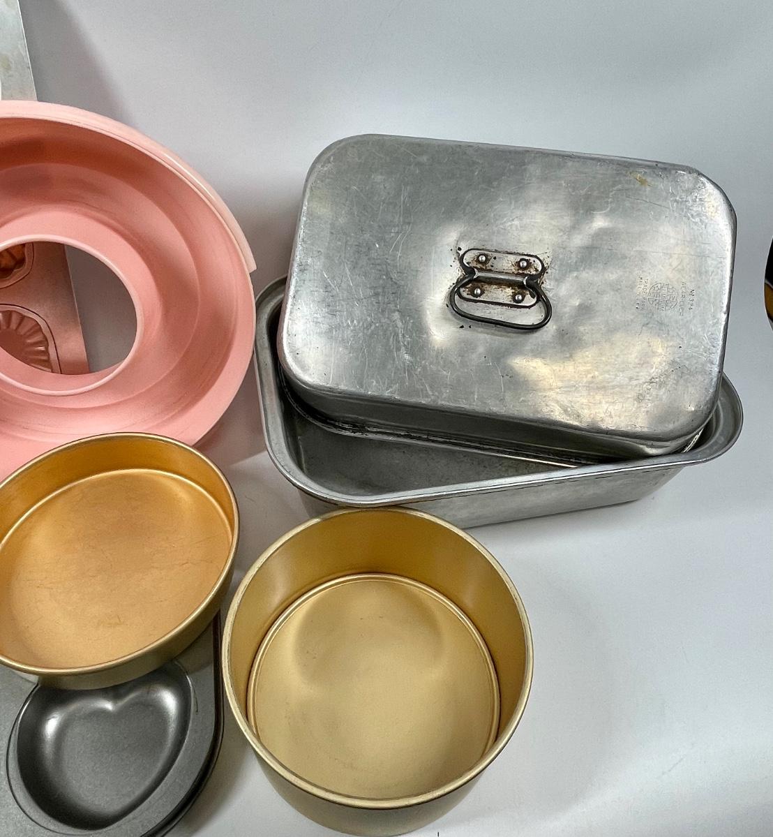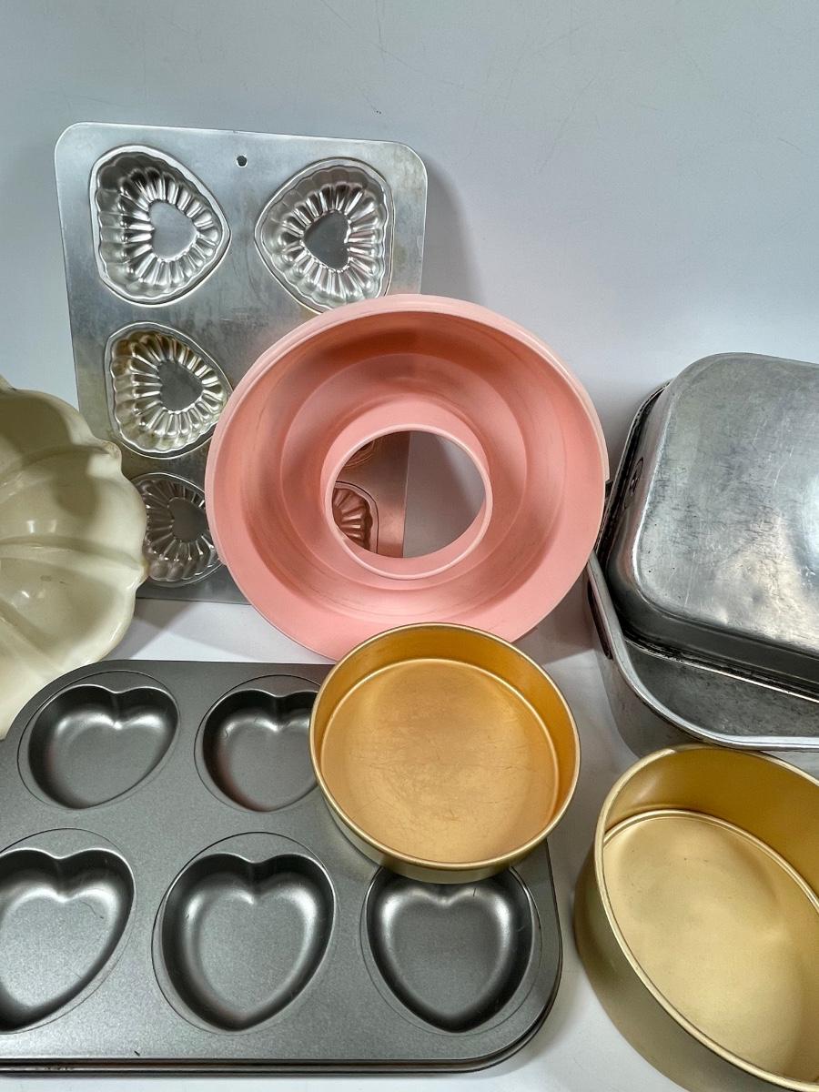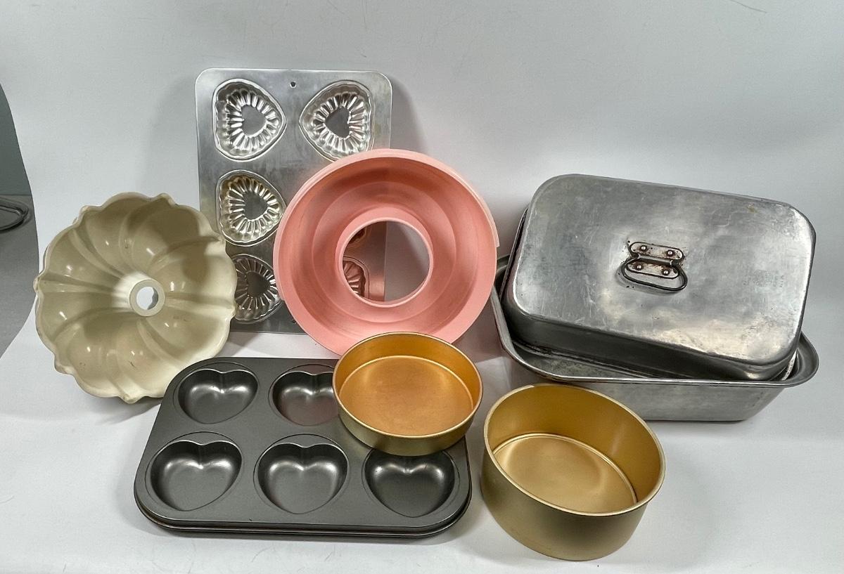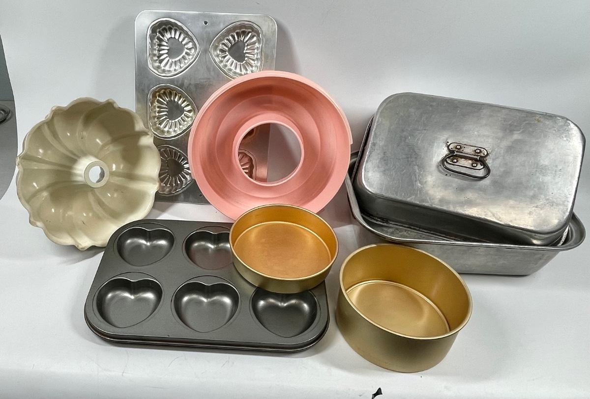 Miscellaneous kitchen lot ““ baking pans, Jell-O, mold,, etc.