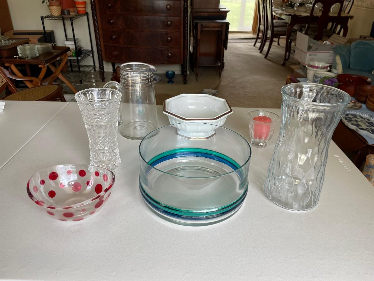 Miscellaneous Lot of Bowls, Vases, Pitcher, Candle Holder
