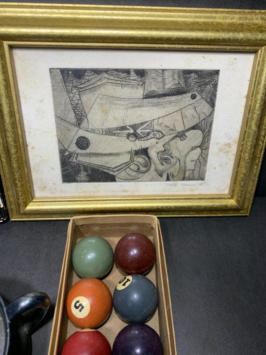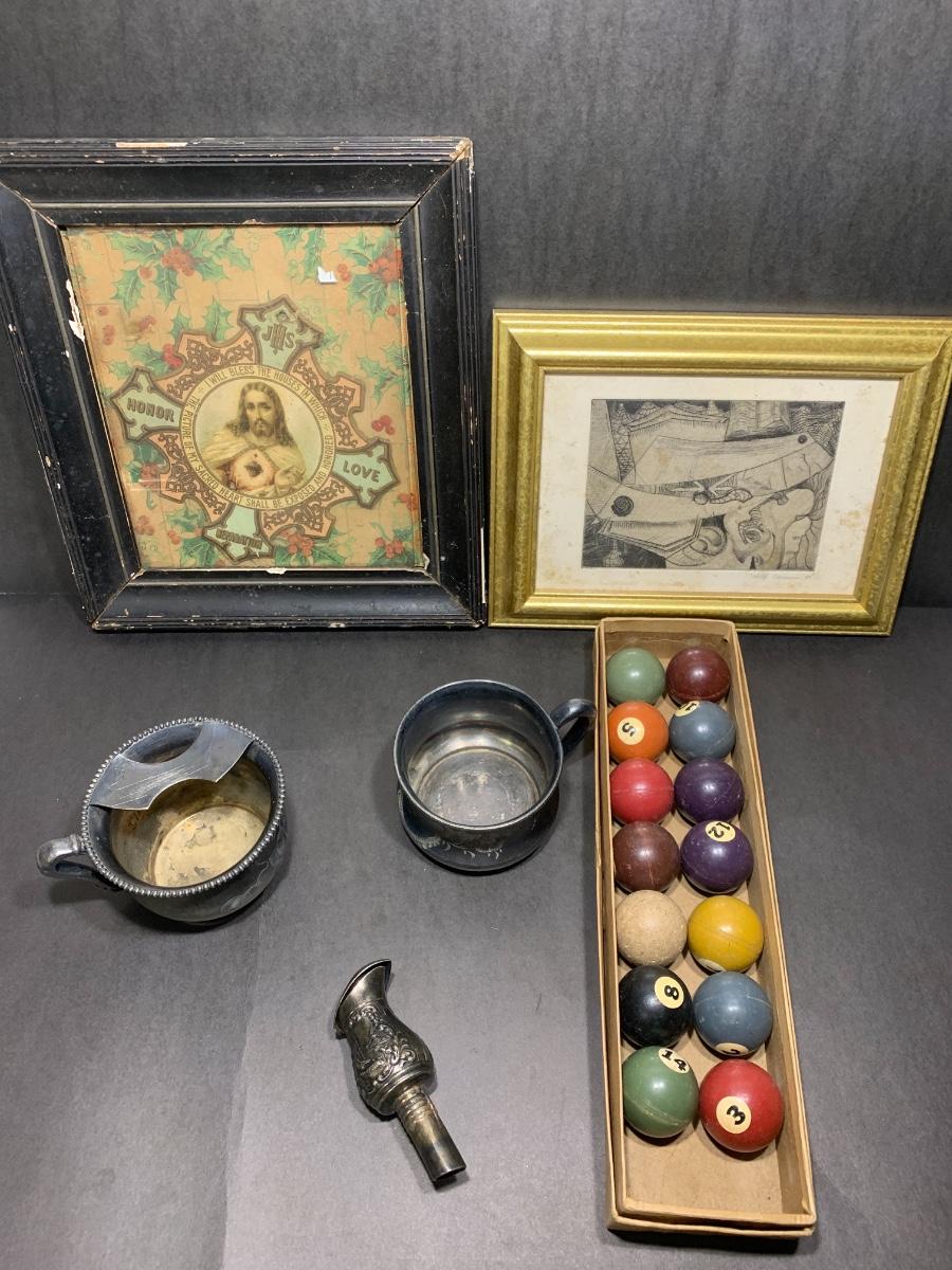 Miscellaneous Lot - Pencil drawing, Pool Balls, Religious