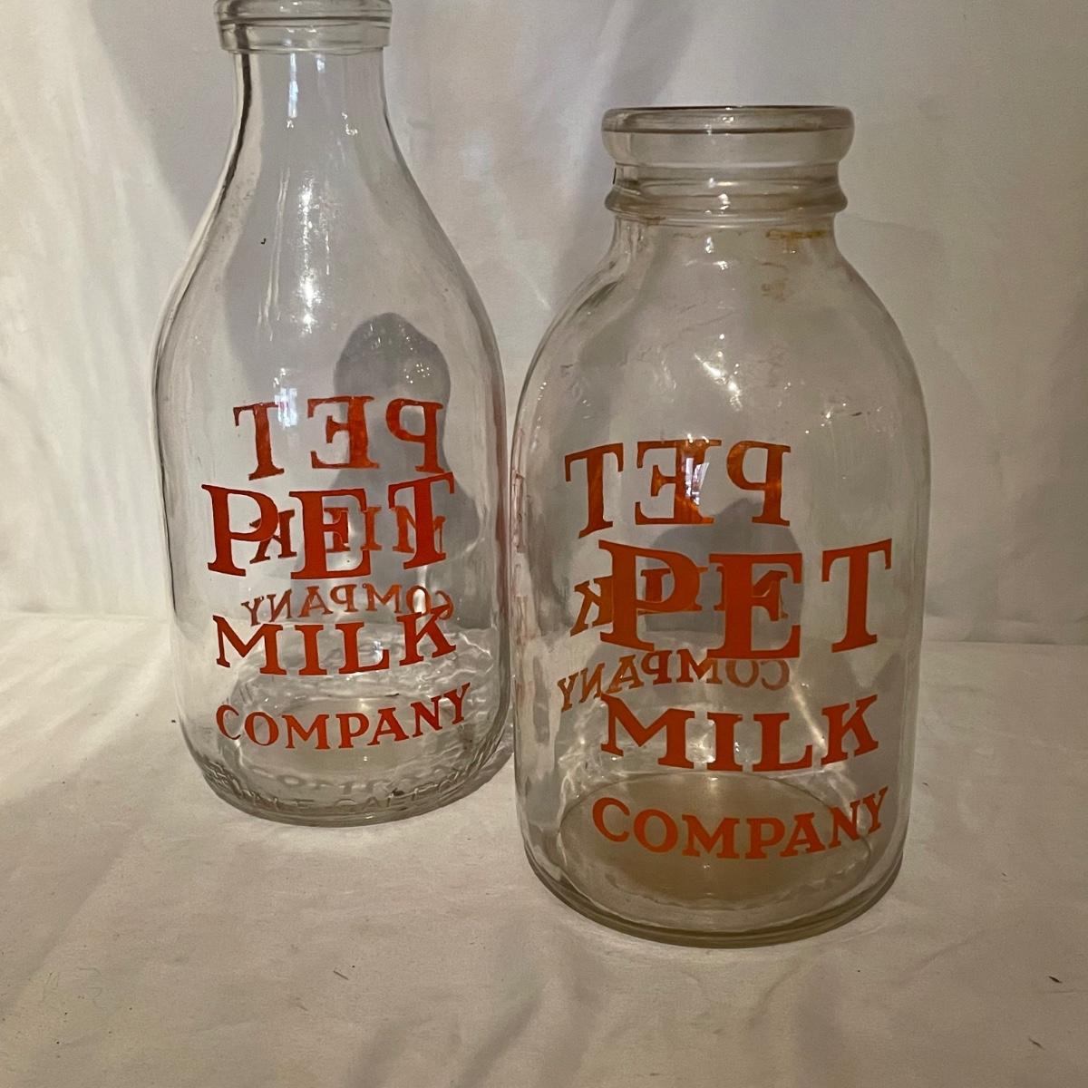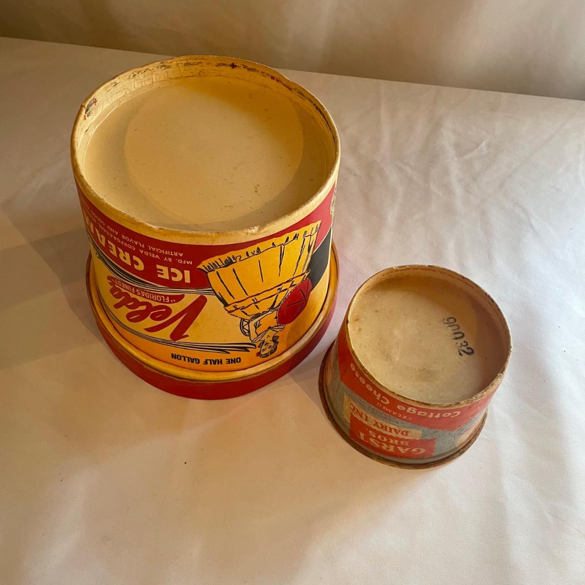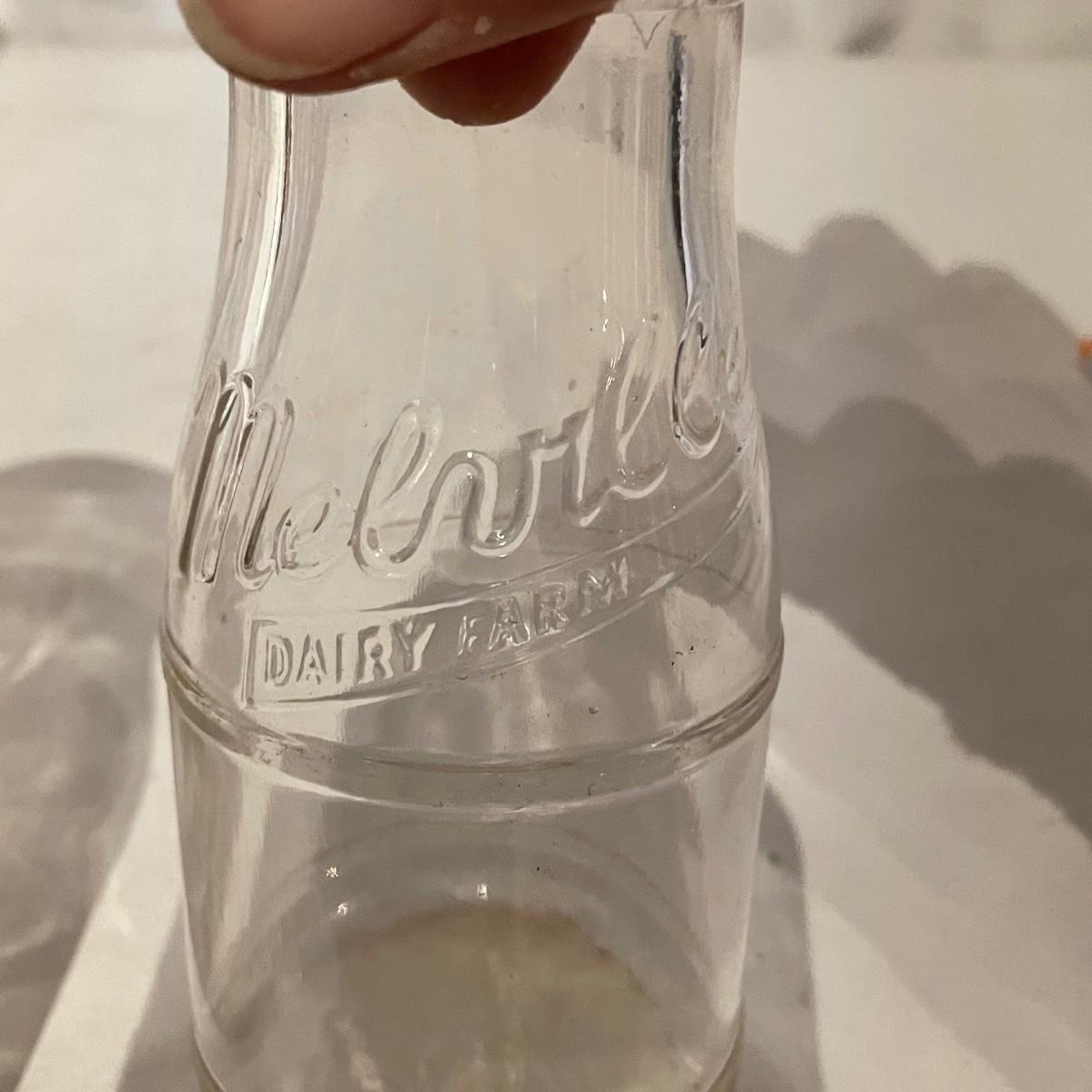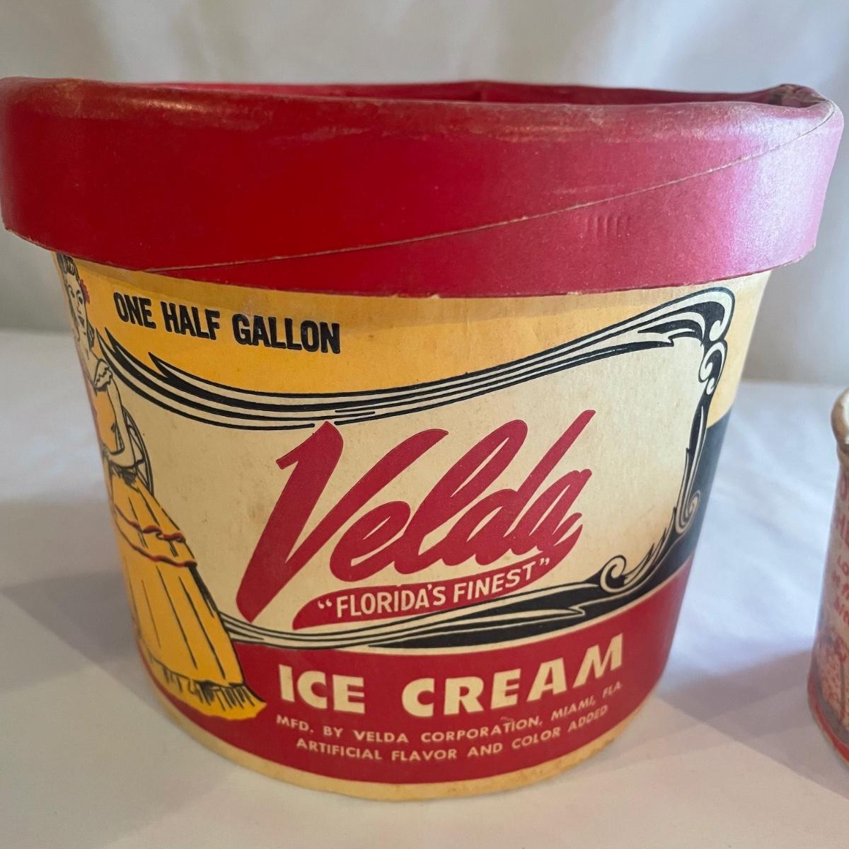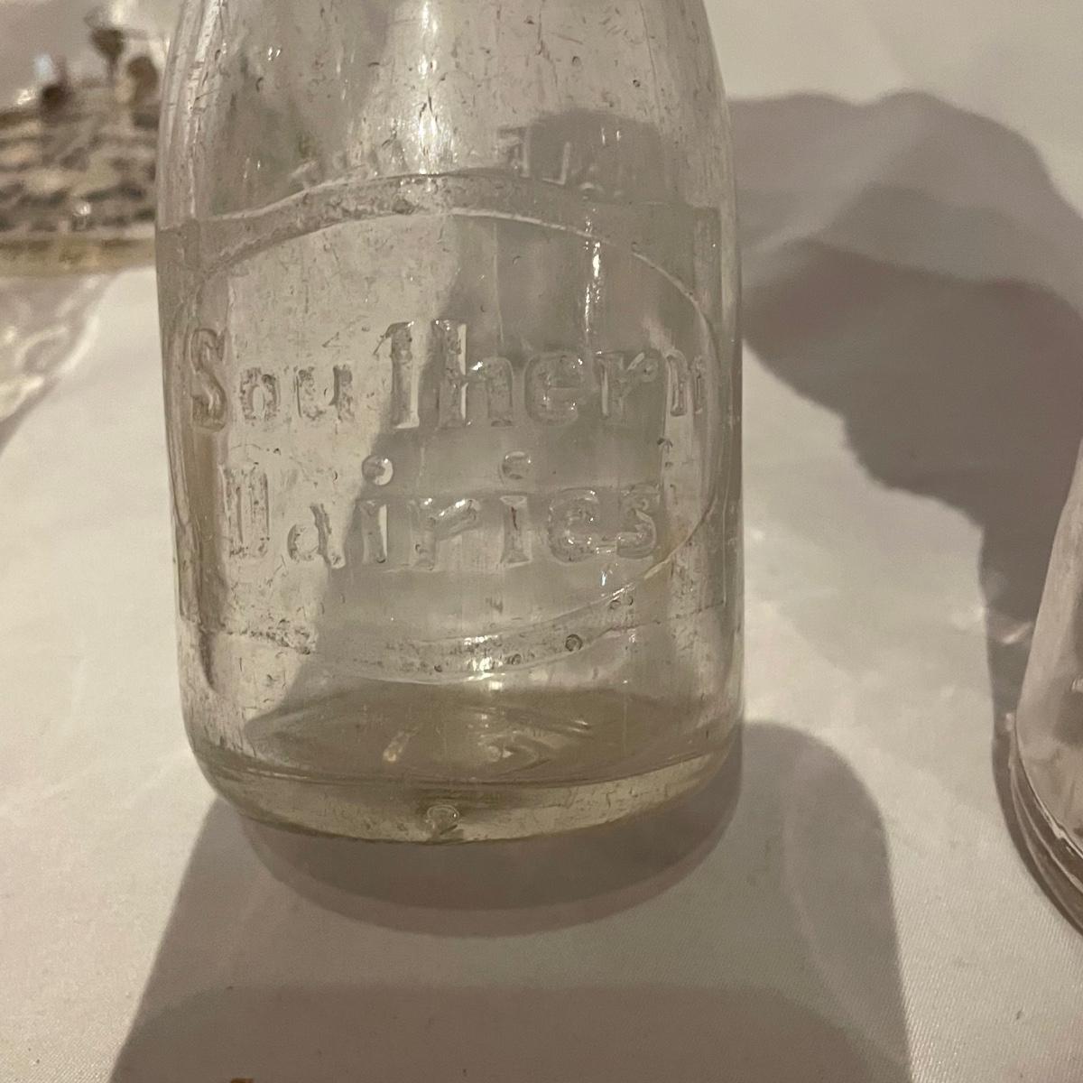 This assortment of five bottles includes a half pint from Southern Dairies of G.A and one from Melville Dairy. Also included are two half gallon PET milk bottles and an unmarked half pint bottle, a one half gallon Velda ice cream run and a Garst cottage cheese tub. Shipping Available