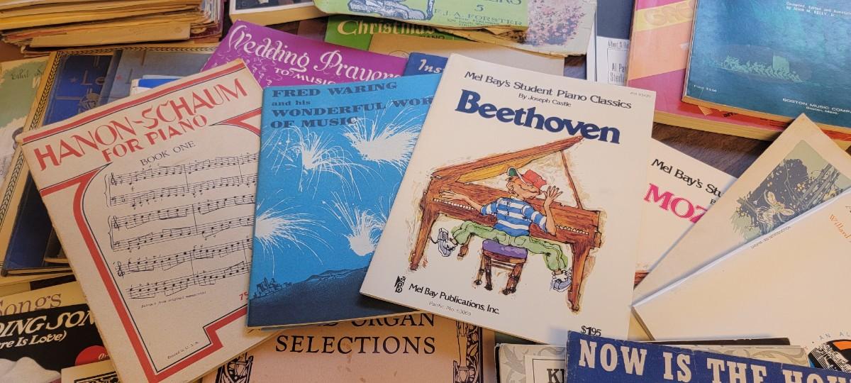 Miscellaneous piano books, sheet music and lessons.