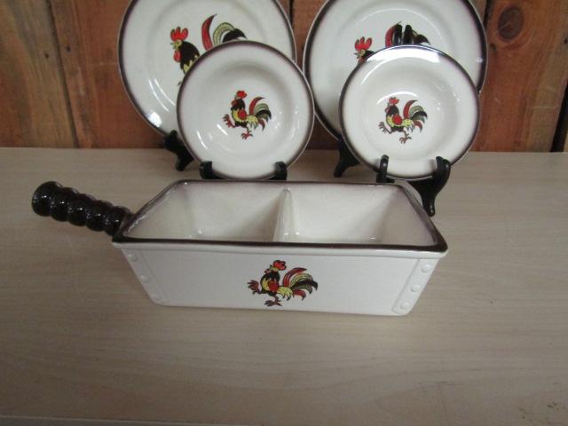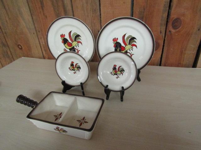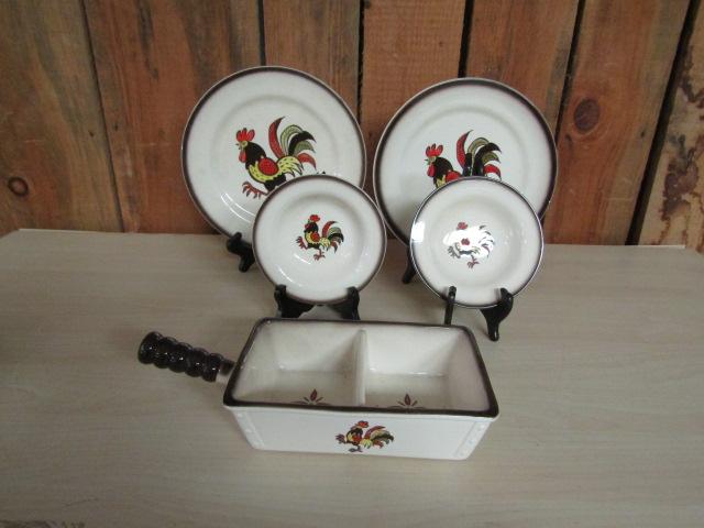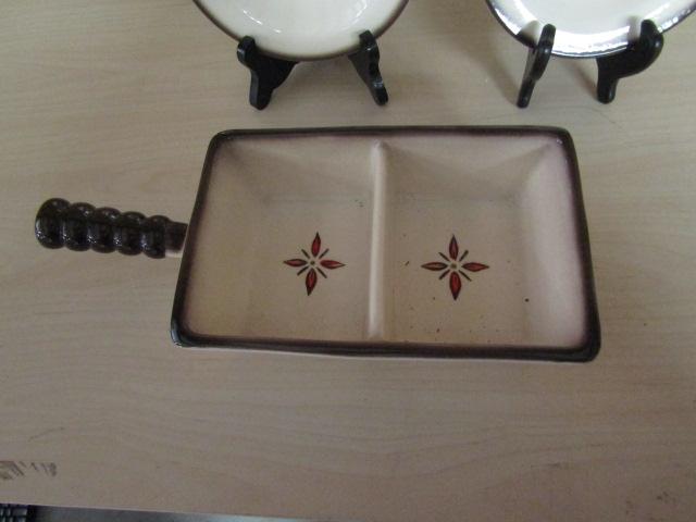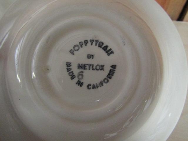 Miscellaneous Pieces from Poppytrail Pattern by Metlox (2- 10"Dinner Plates, 2- 6" Bowls, 1 Divided Serving Dish with Handle)