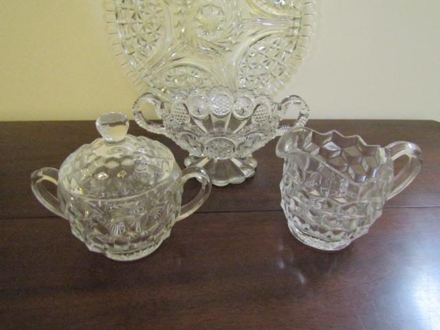 Miscellaneous Serving Pieces- Platter, Cream & Sugar, Small Footed Bowl with Handles