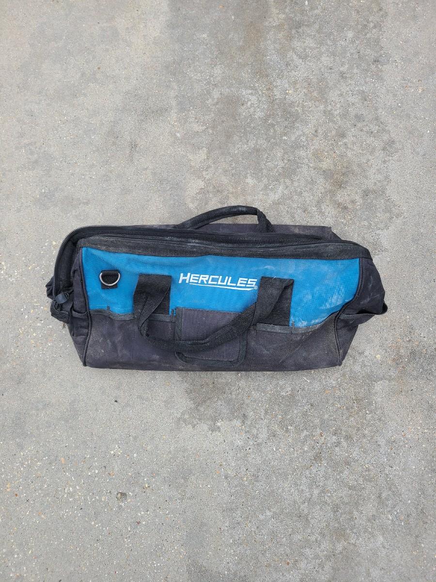 Roughly 25 + Assortment of tools in a Hercules Soft Tote Tool Bag.