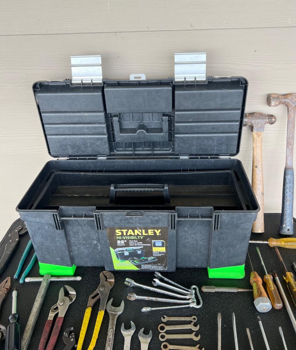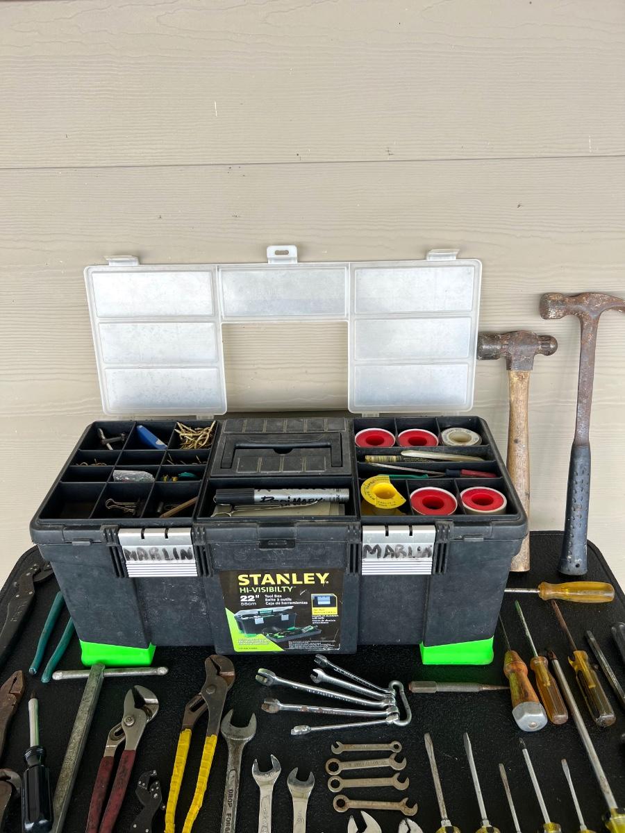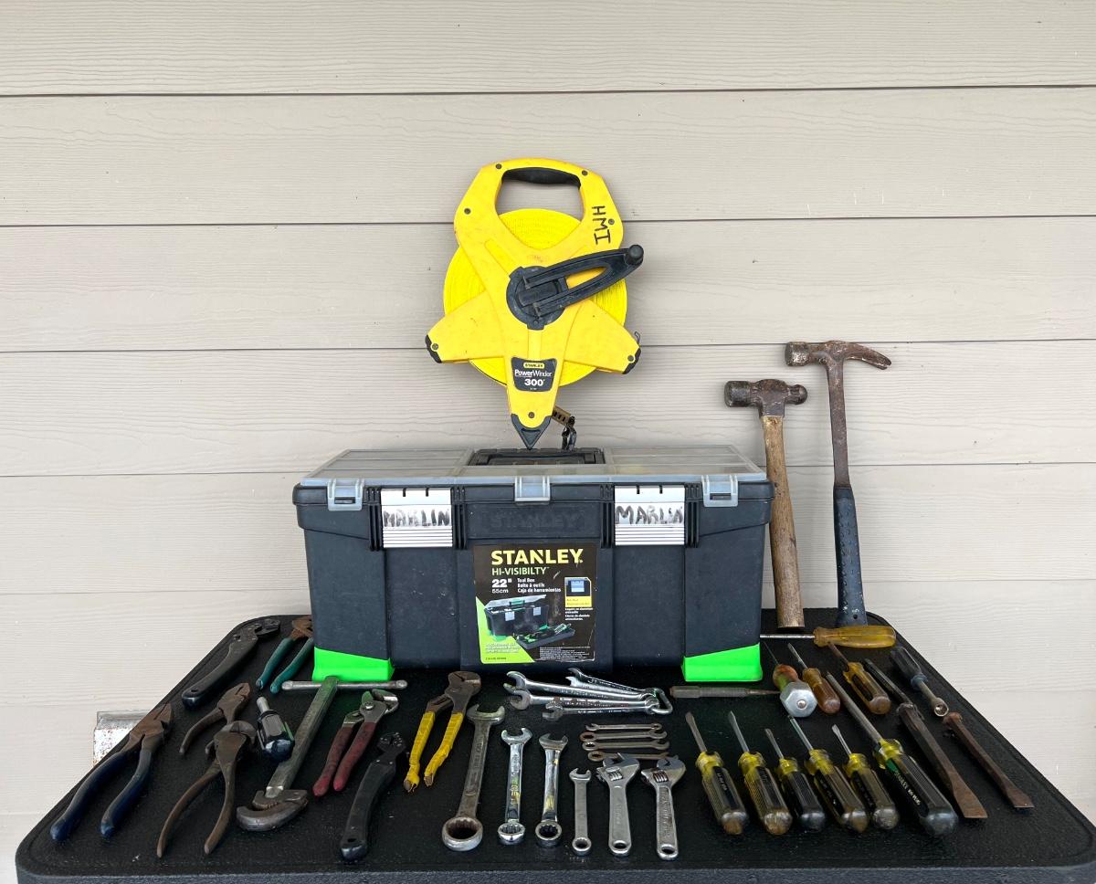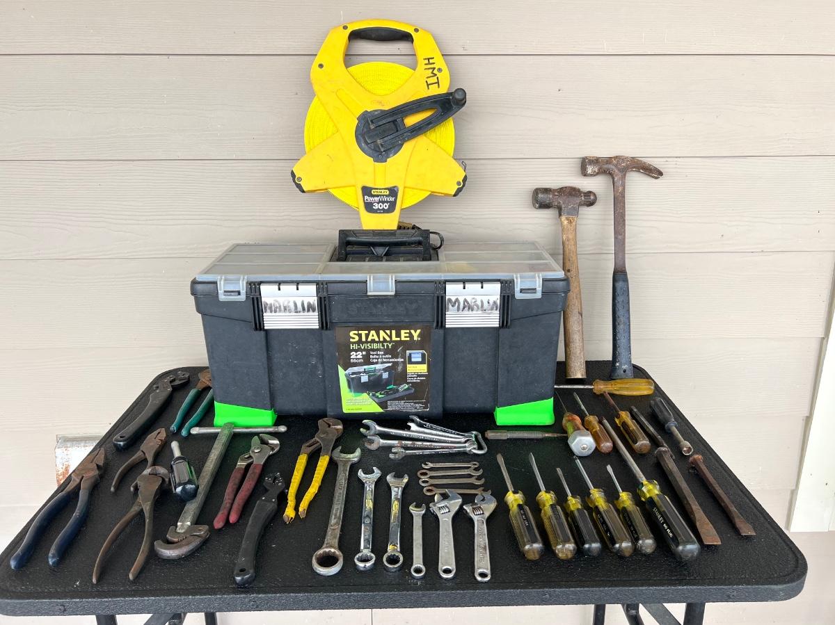 Miscellaneous Tools, 300 ft Measuring tape, and STANLEY Tool Box.