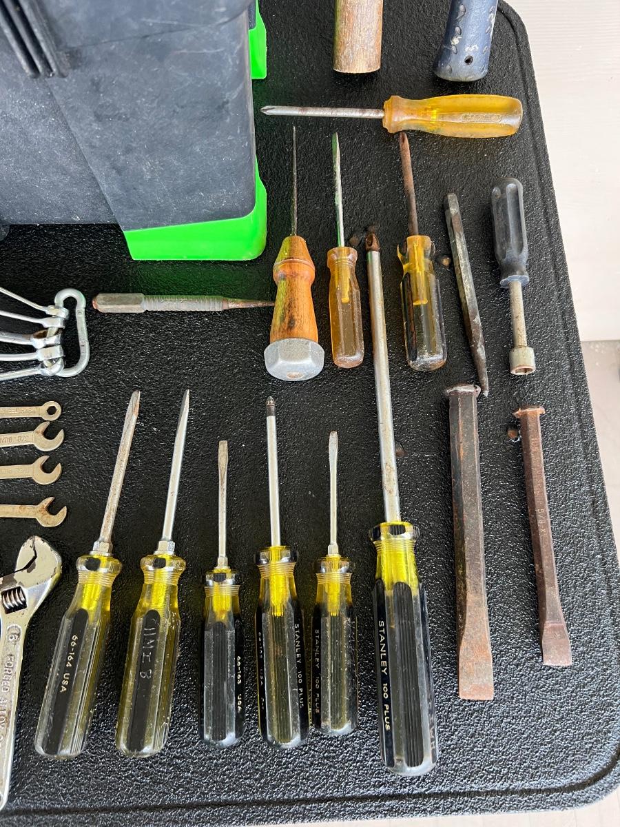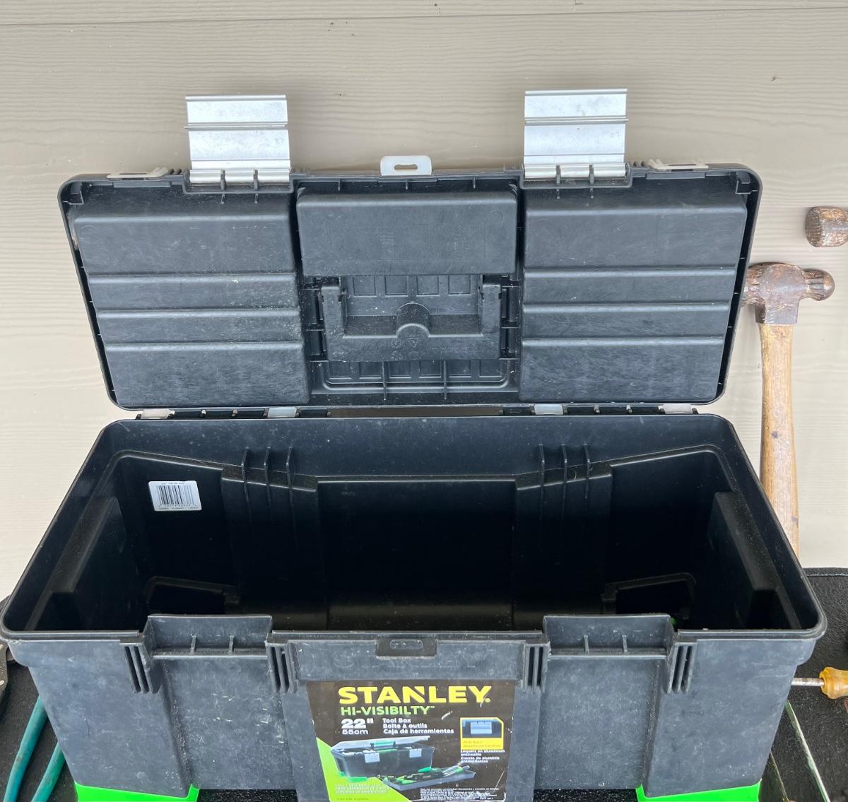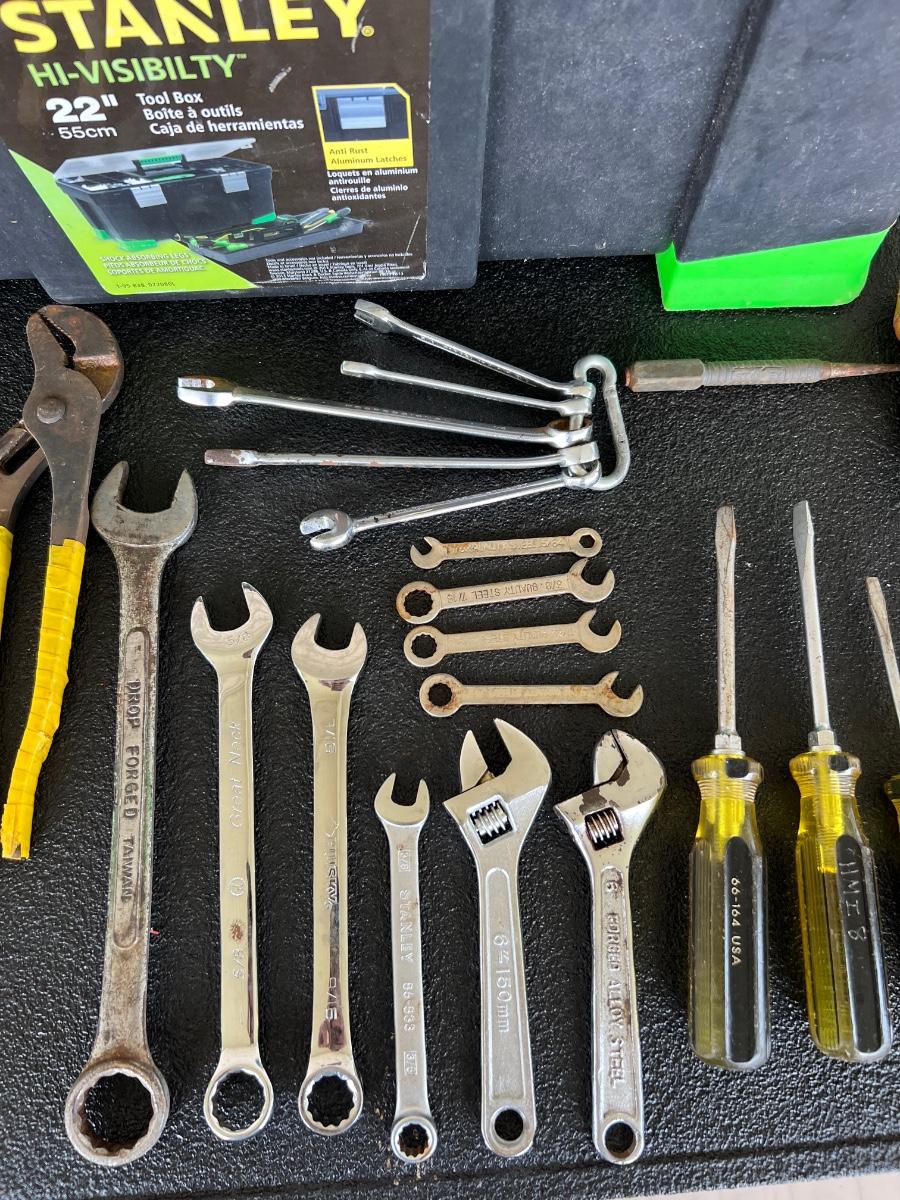 Miscellaneous Tools, 300 ft Measuring tape, and STANLEY Tool Box.
