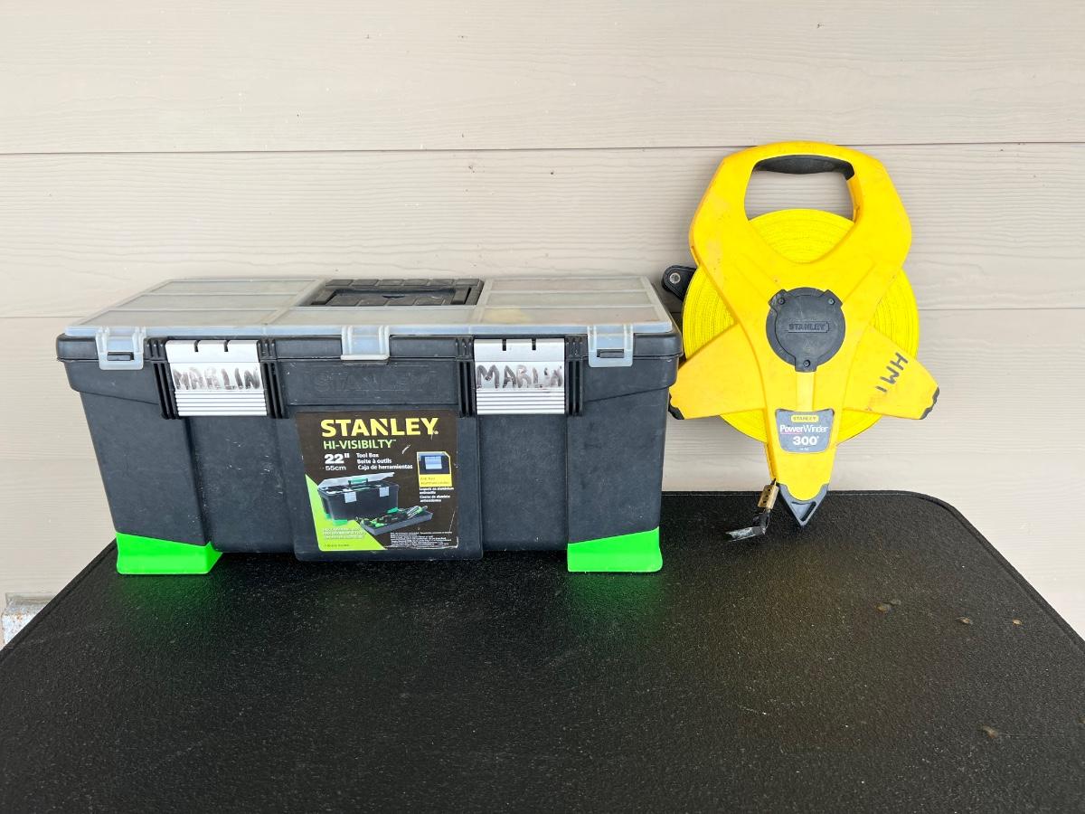 Miscellaneous Tools, 300 ft Measuring tape and STANLEY Toolbox,