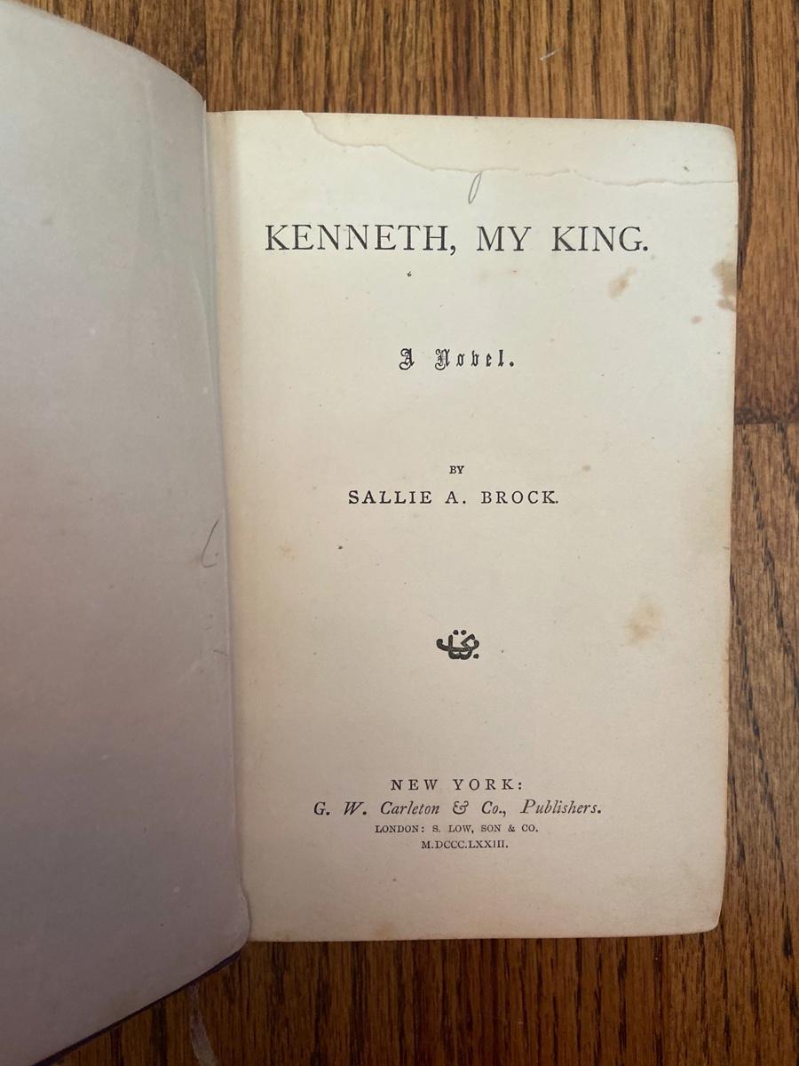 Kenneth, My King by Sallie A. Brock (1873), : Brown Hardcover, Small Staining, Ripping in Binding, Published by G. W. Carleton and Co. Publishers