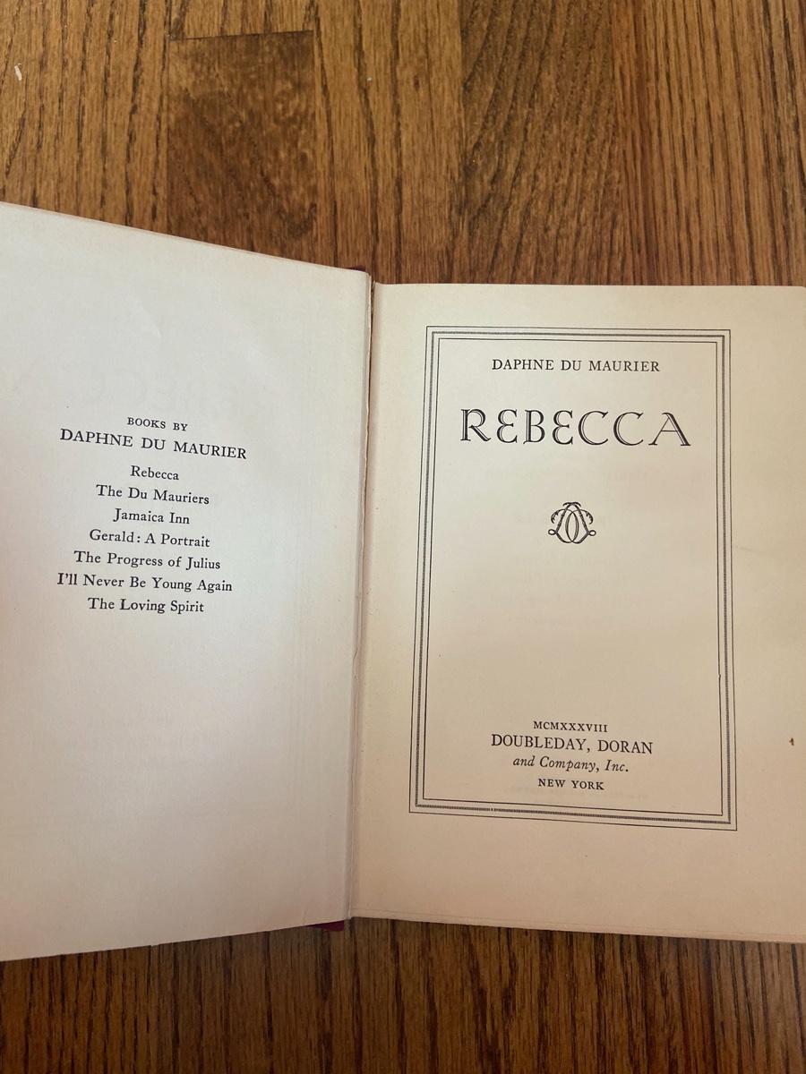 Rebecca by Daphne Du Maurier (1938), Red hardcover, Published by DoubleDay, Doran and Company inc. good condition.