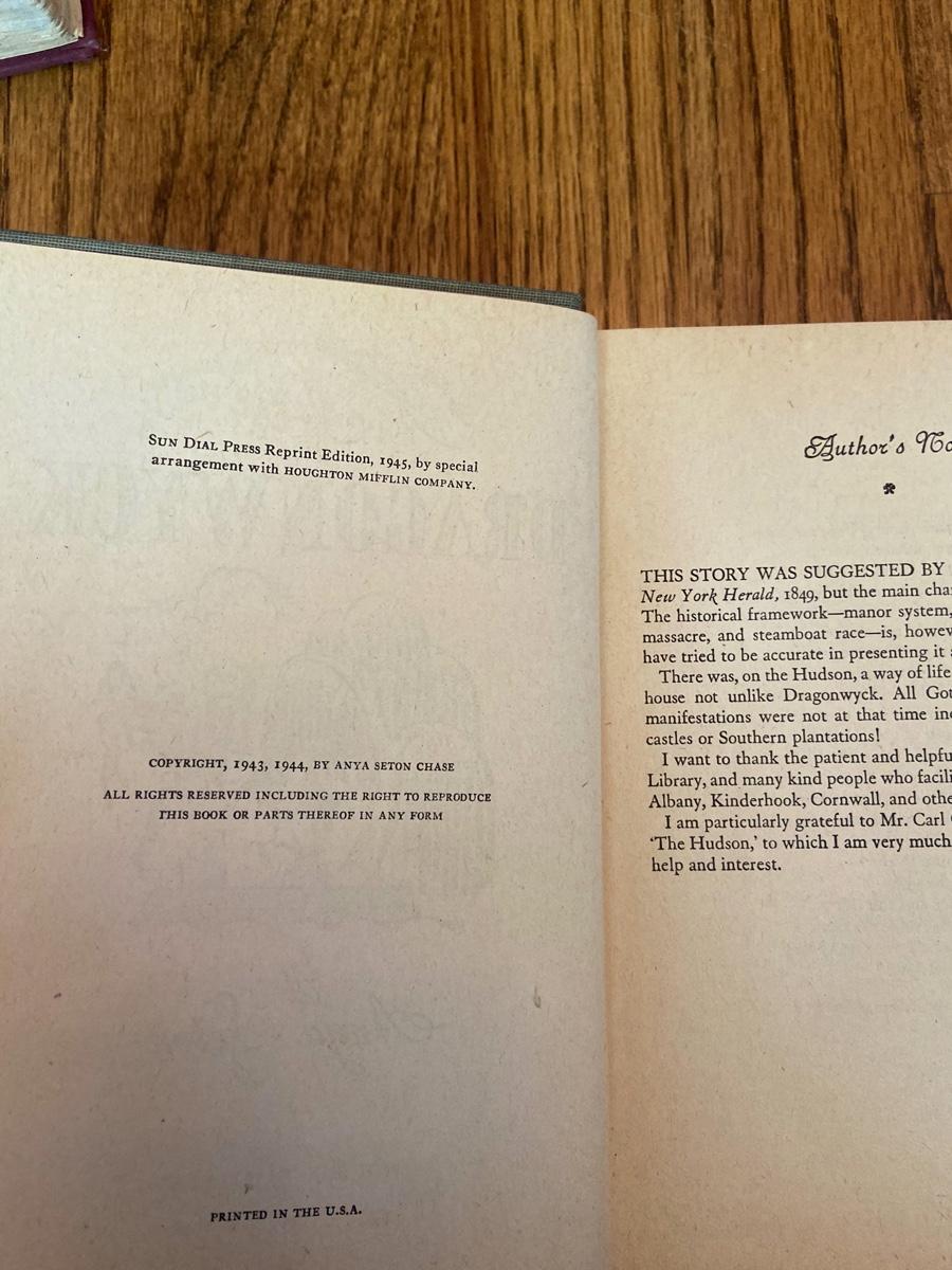 Dragonwyck by Anya Seton (1945), Blue hardcover, sundial press reprint edition