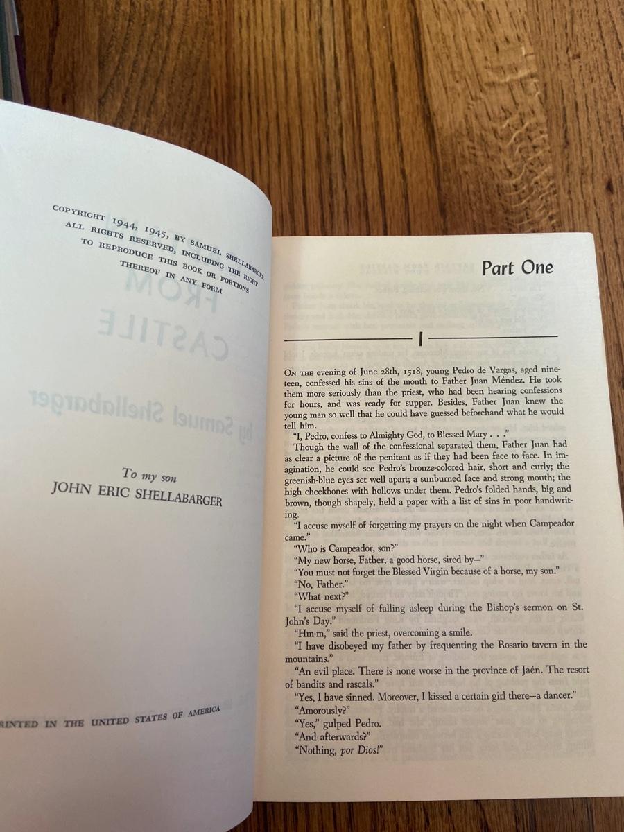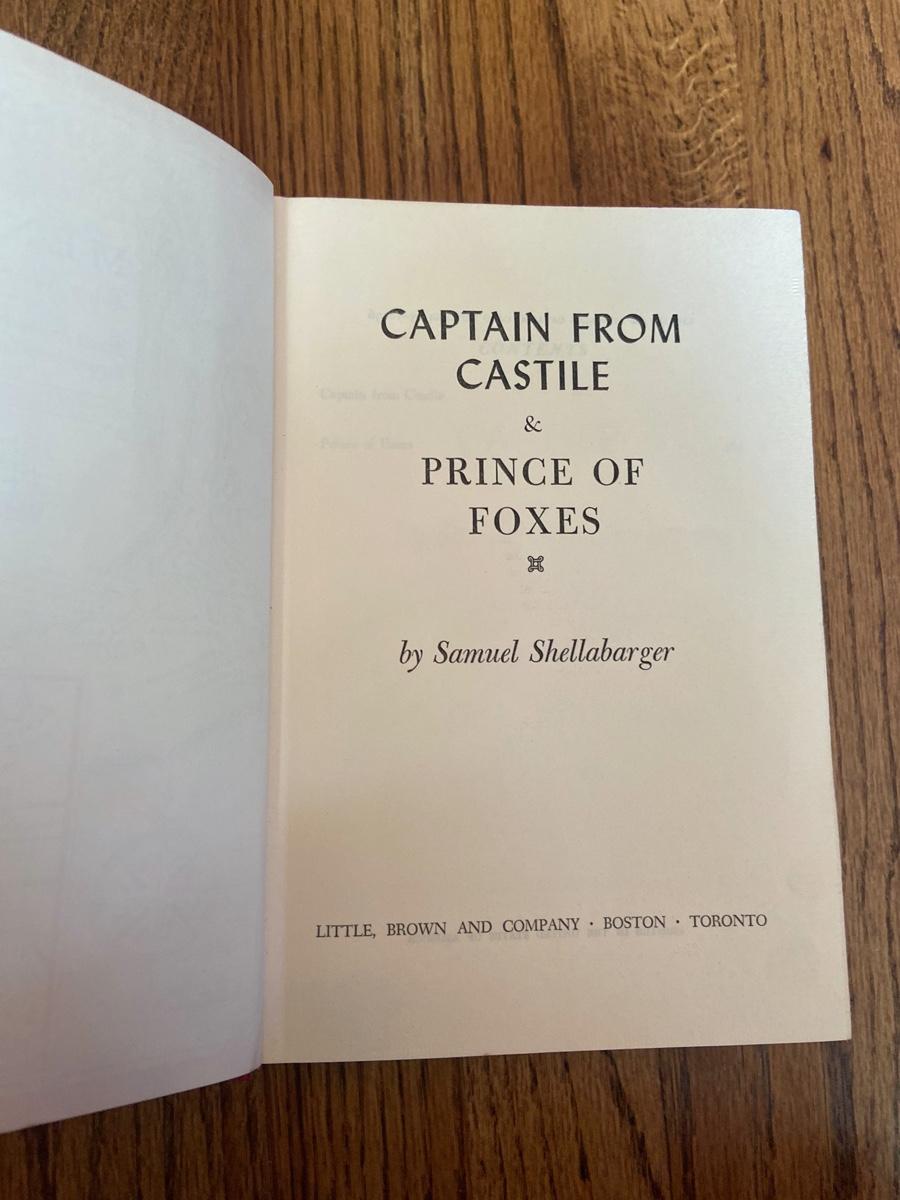 Captain From Castile and Prince of Foxes by Samuel Shellabarger (1945), great condition, Little, Brown and Company. Red hardcover.