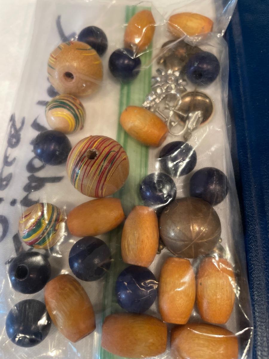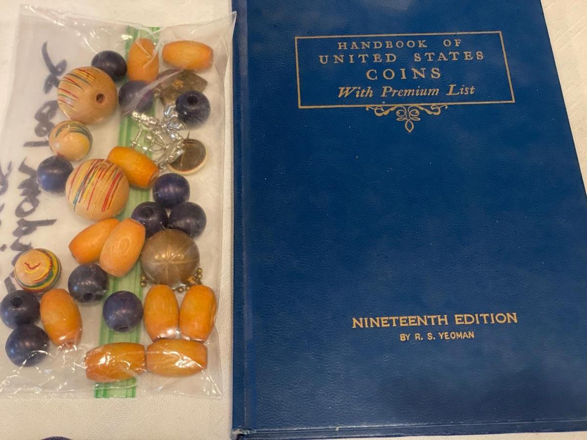 Miscellaneous wood beads and coin handbook