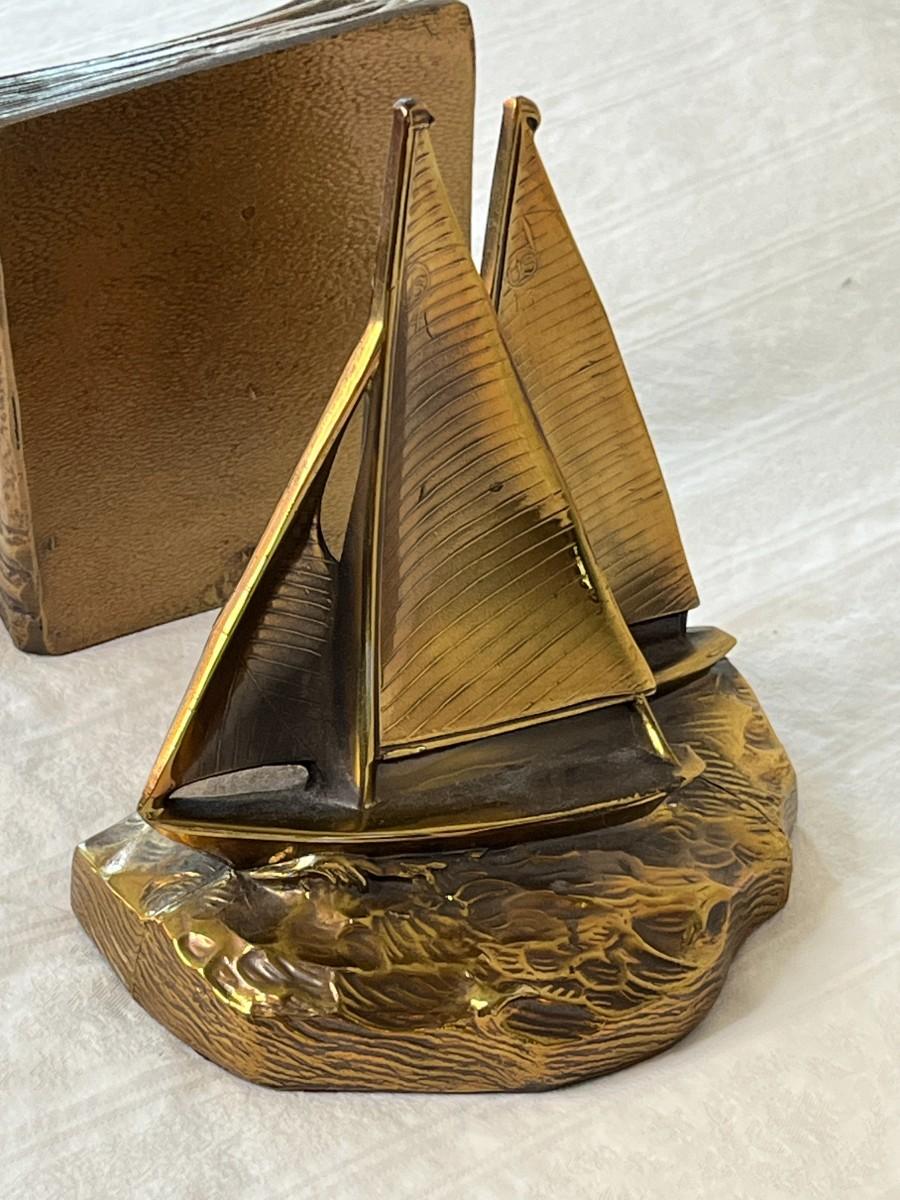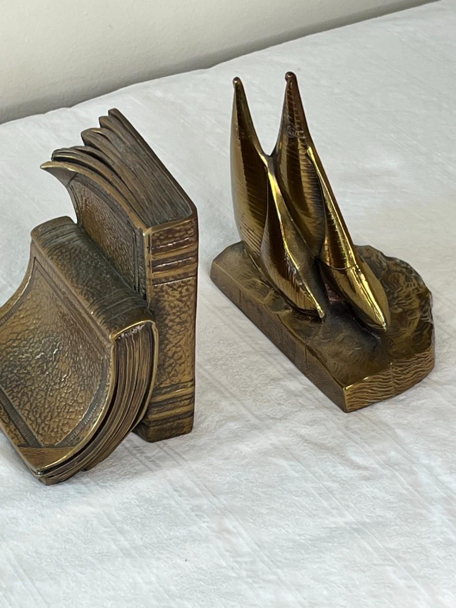 Mismatched Set of Brass Style Bookends Made by Philadelphia Mfg. Co