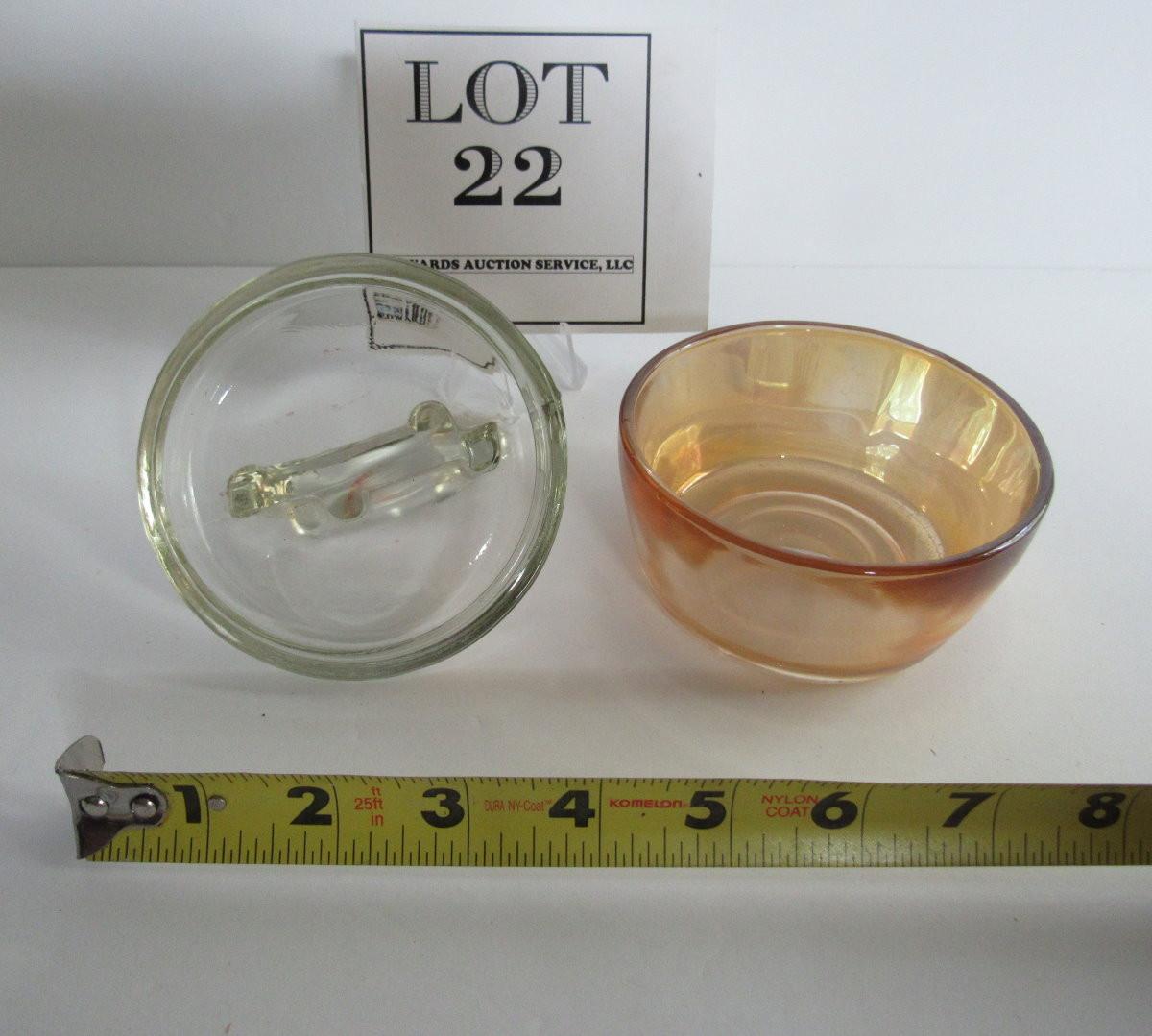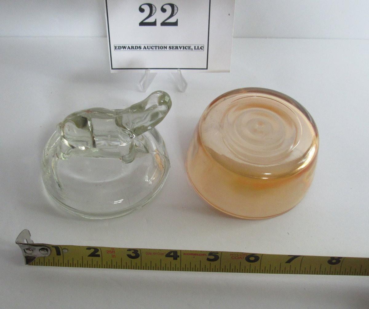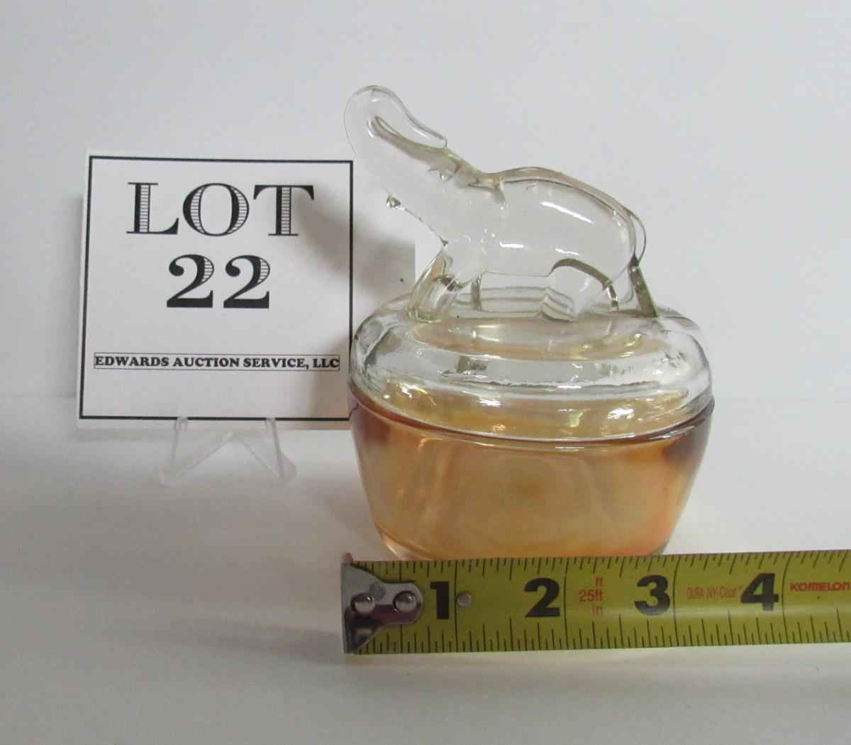 Mismatched Vintage Dresser Box, Elephant Cover in Clear, Base in Marigold Carnival Glass