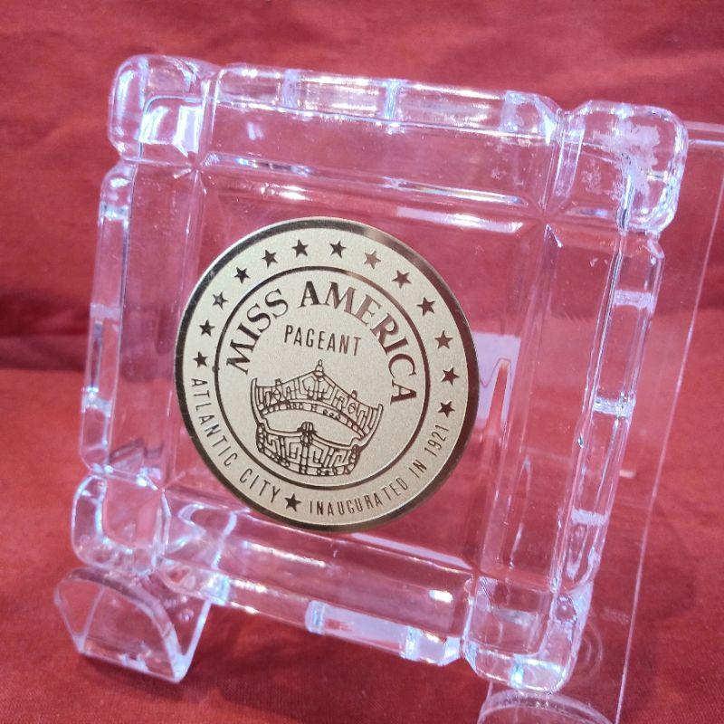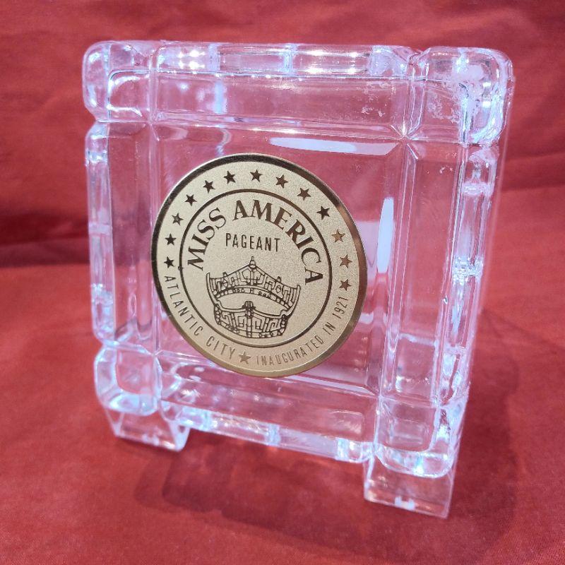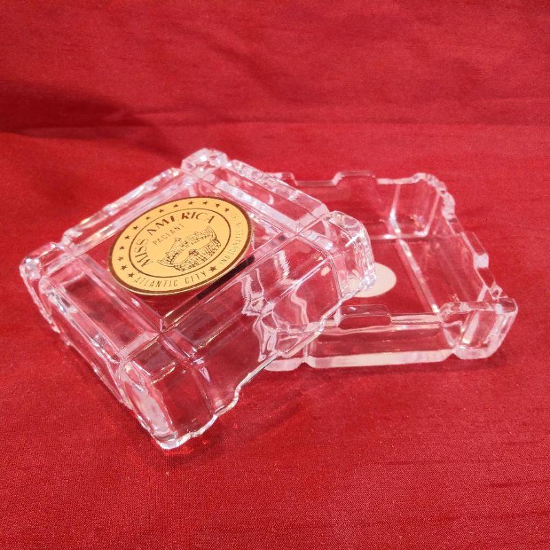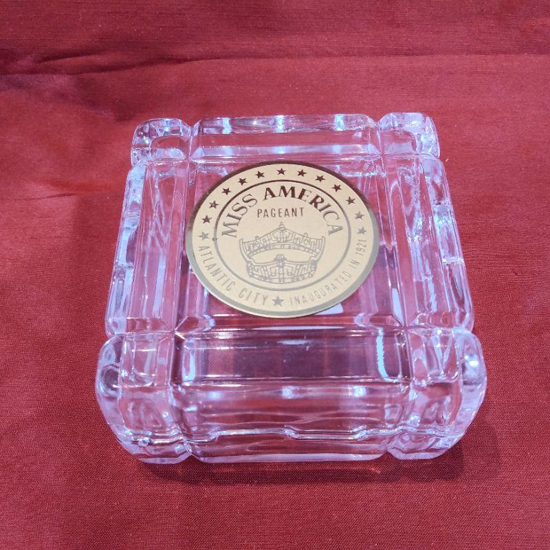 This offering is for a Miss America Pageant souvenir Keepsake Box - Atlantic City. Made by Reed & Barton of crystal glass. It measures 2 3/4-inches square X 1 3/4-inches tall. In very good condition and a fun memento.