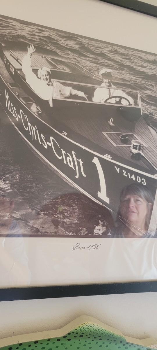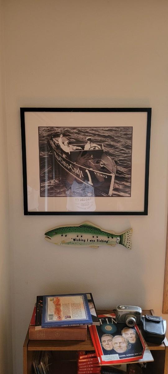 25" x 22" frame Miss Chris Craft circa 1938 picture an Wishing I was fishing key holder