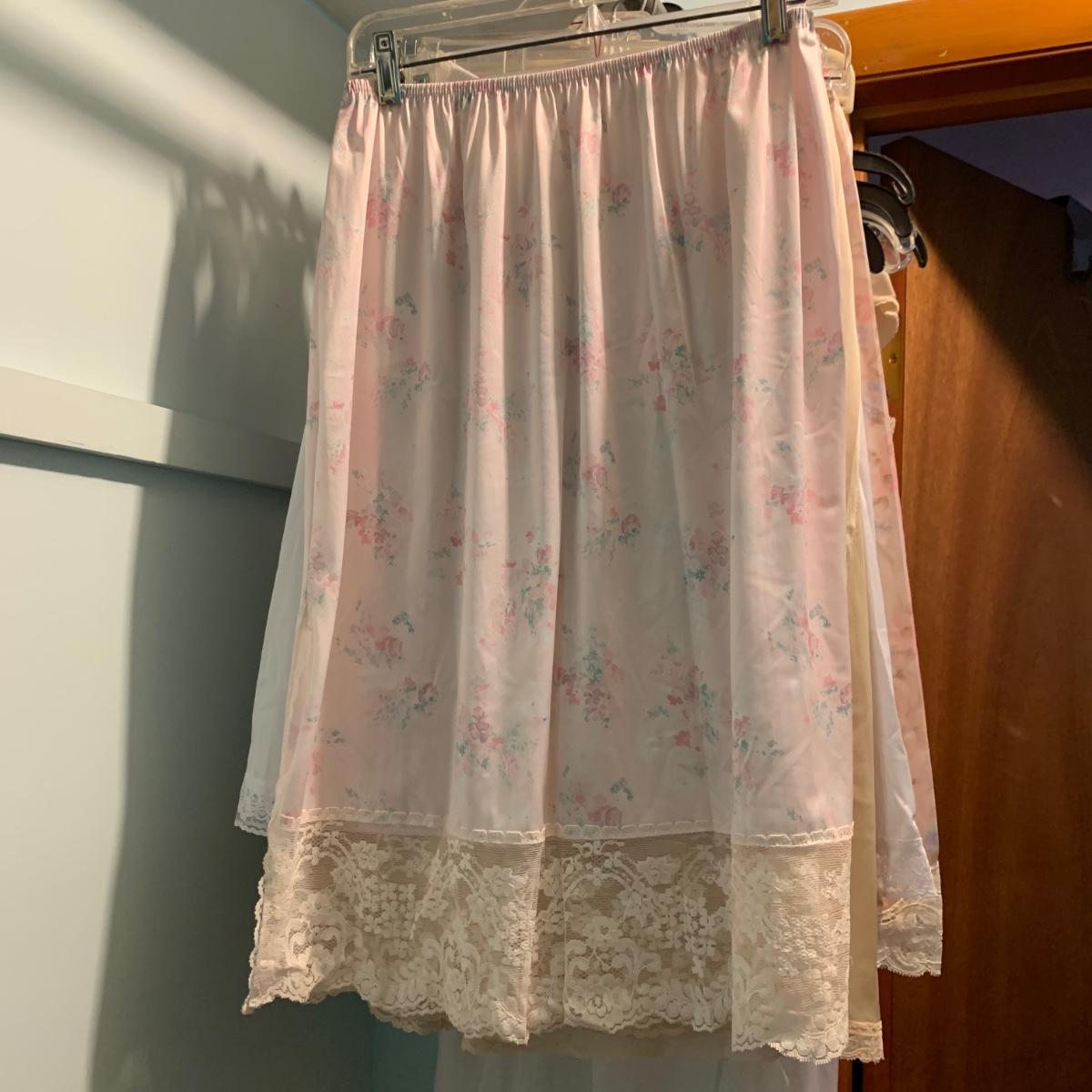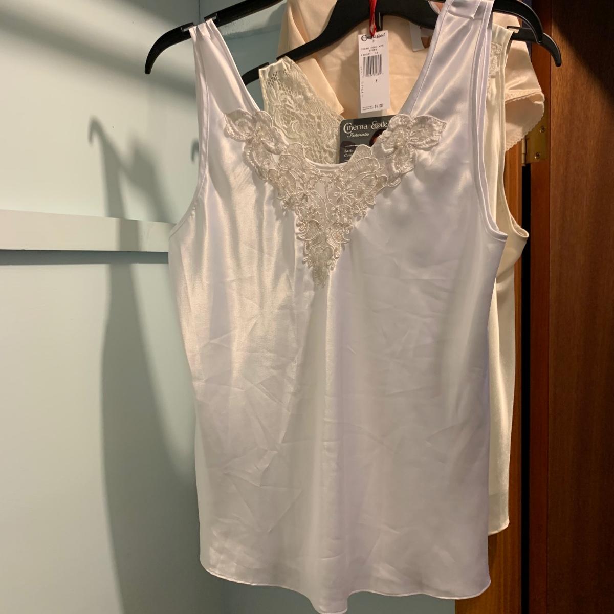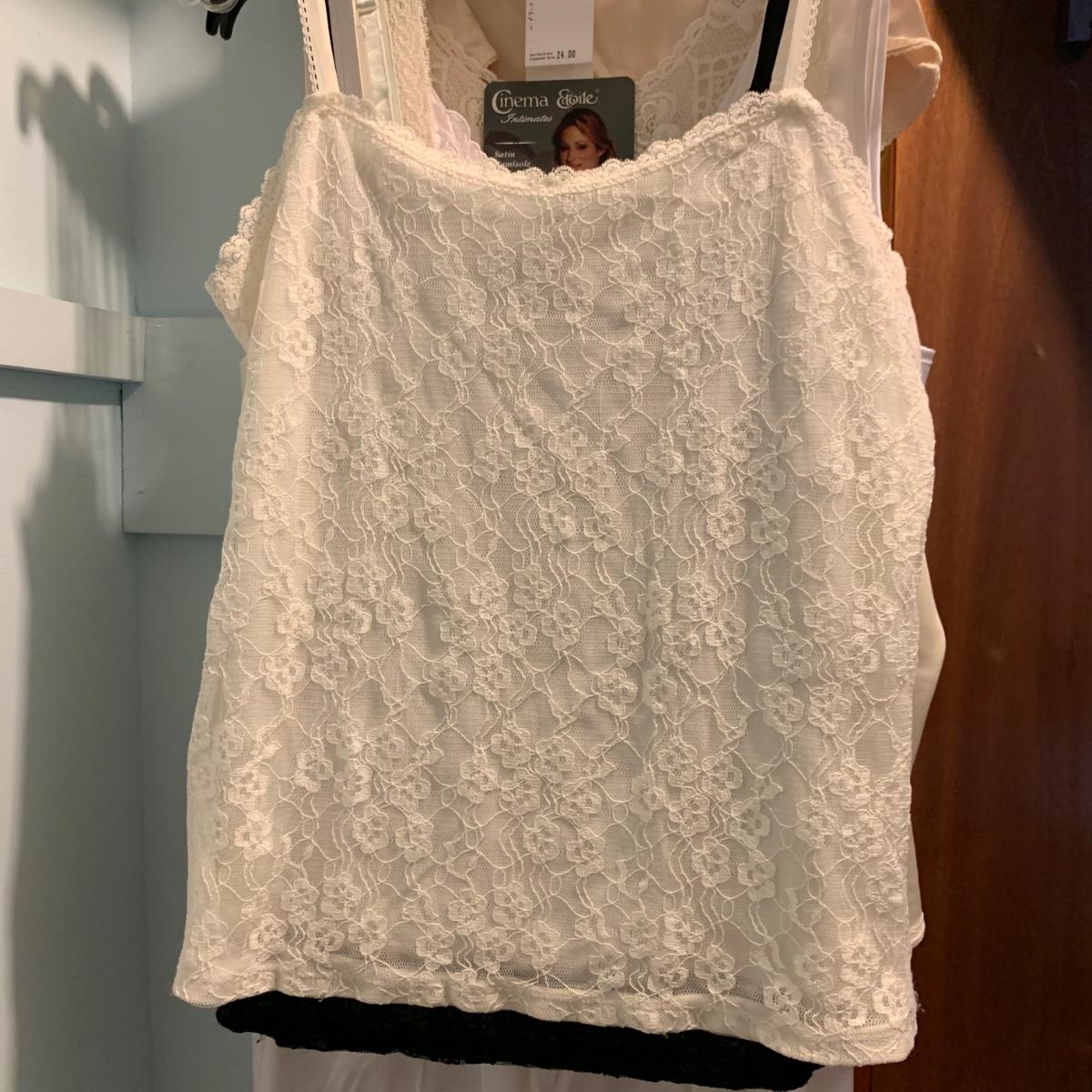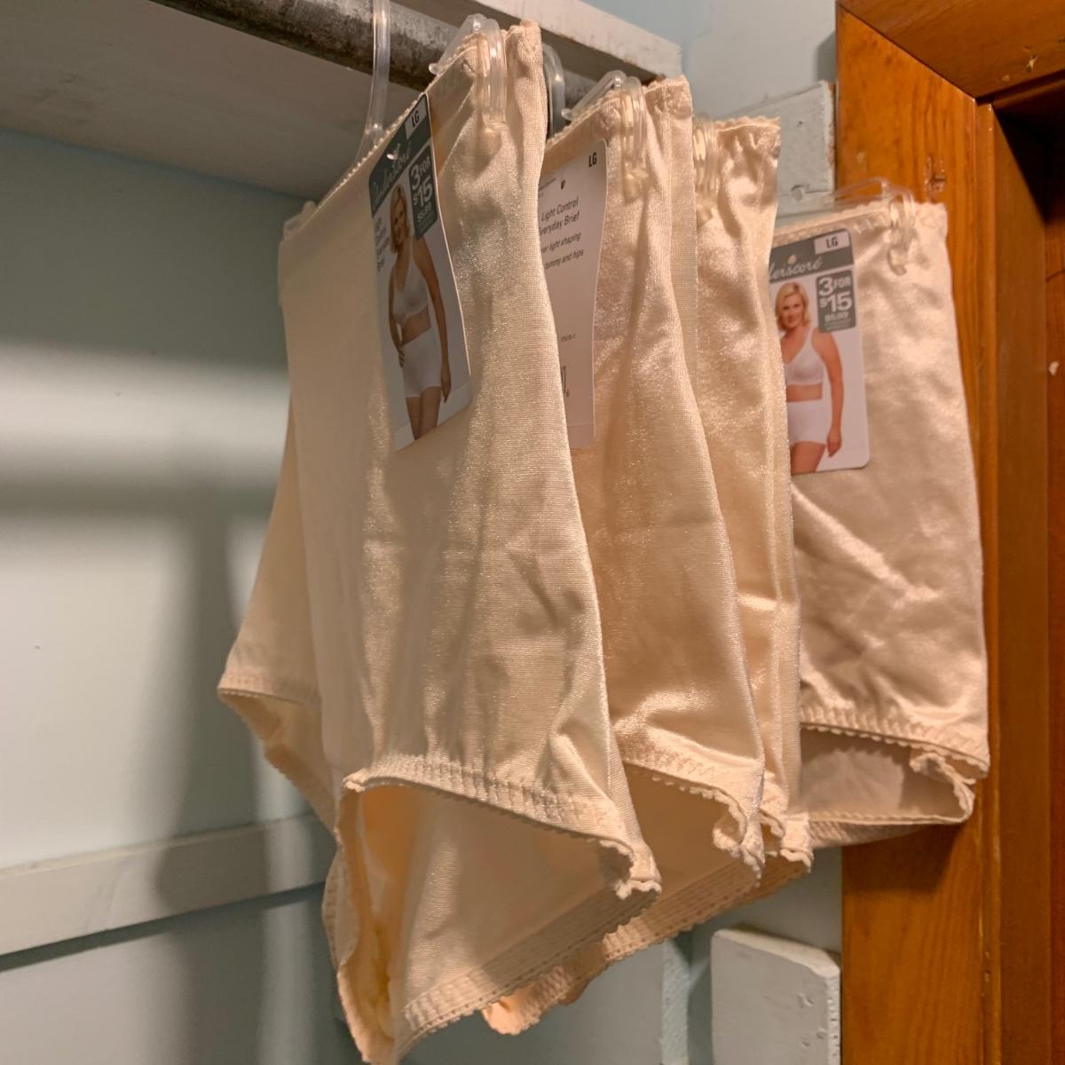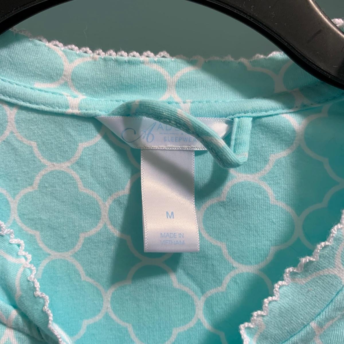 A wonderful quilted robe with a satin feel by Miss Elaine (size L) starts this collection. There are four Miss Elaine nightgowns as well as one PJ set. There’s also a lightweight cotton robe by Adonna plus three long sleeved nightgowns, as well as a matching robe and nightgown set, six slips, and nine camisoles. Five pairs of brand new size L underwear are also included. Most items are size M. Please see pictures for brands and sizes.