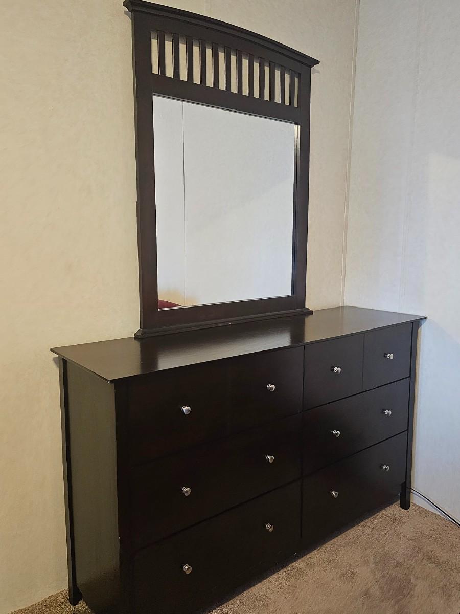 Cappuccino Mission Style 6 drawer dresser w/mirror.