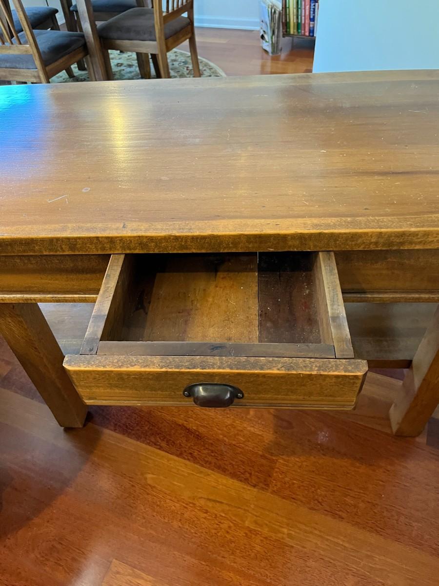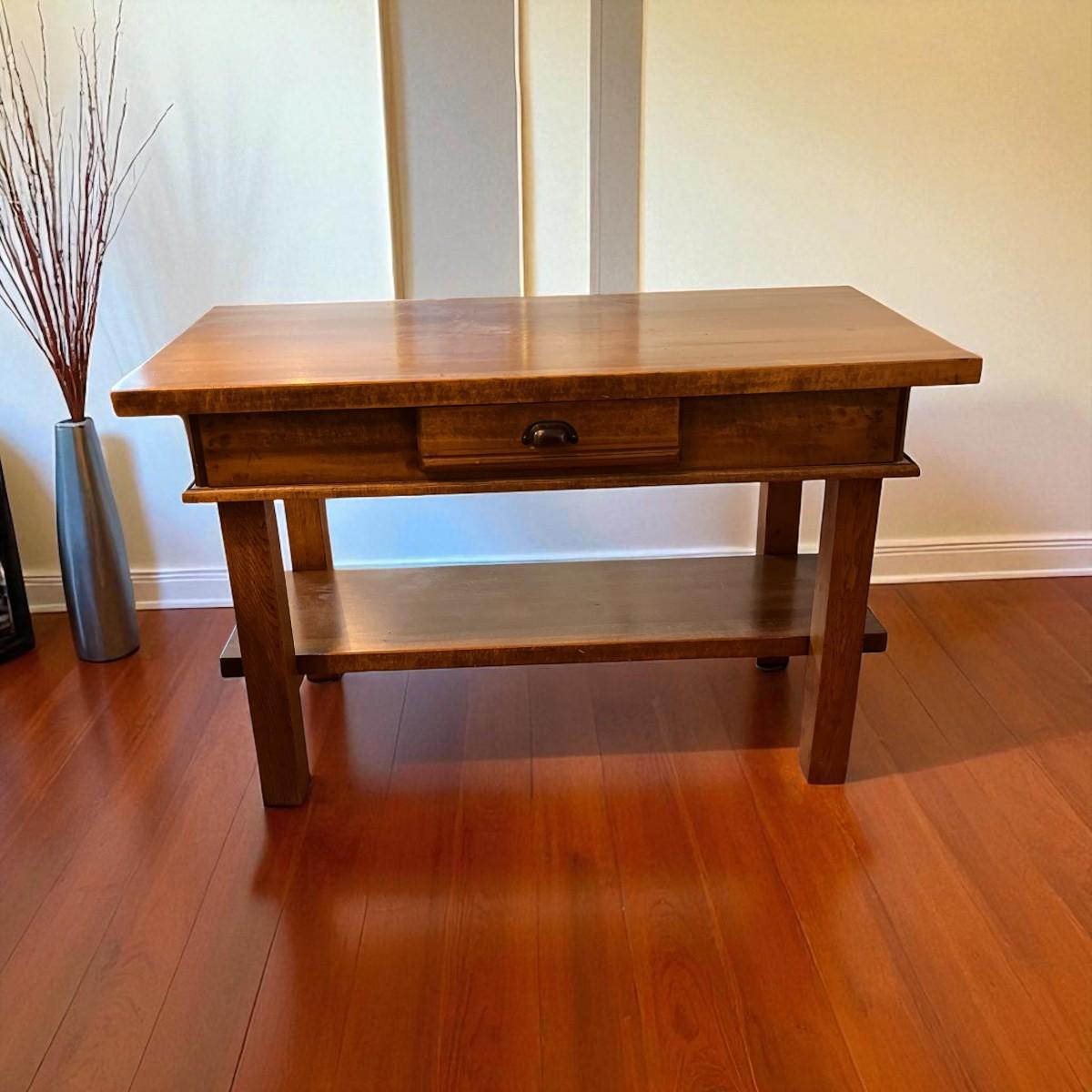 Mission Style Library Table/Console Table with Drawer and Bottom Shelf. Note minor scratches on the top.