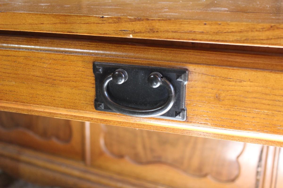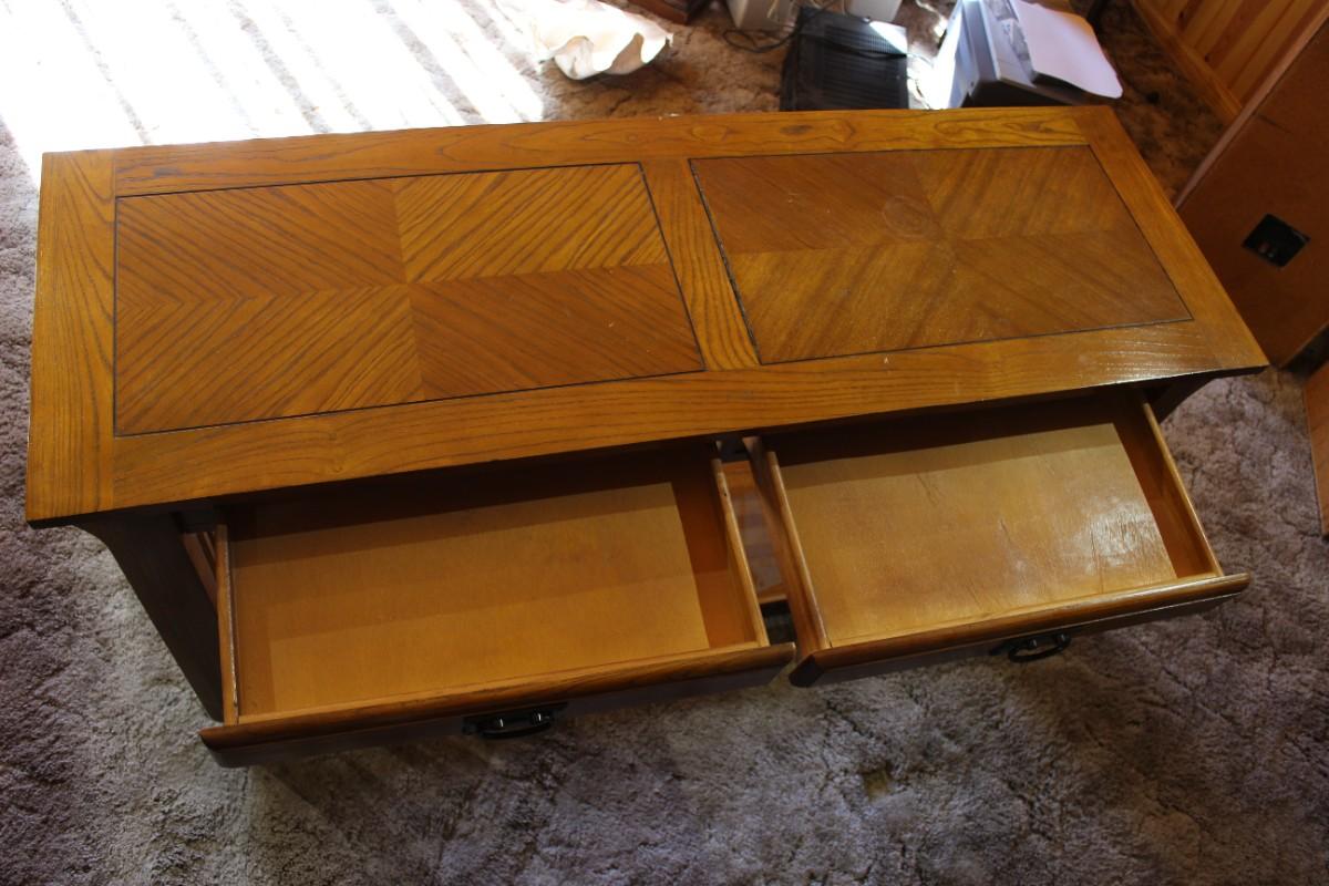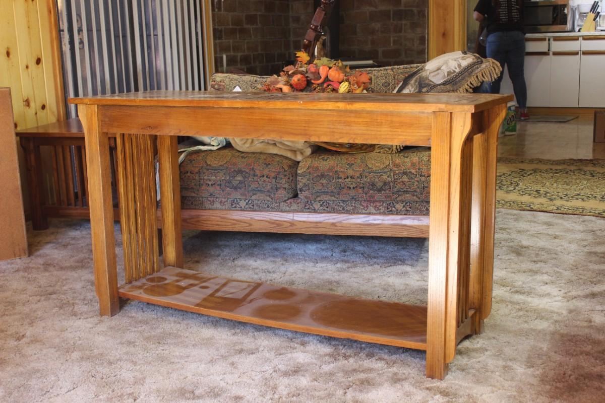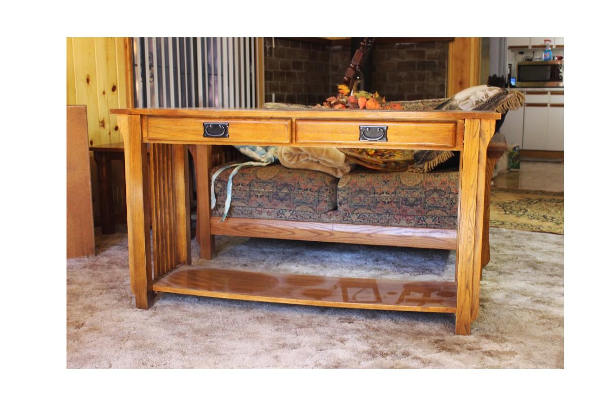 Mission style console table. Double drawer front. A little dusty in photos but in good condition. LOCAL PICK UP IN ANGELUS OAKS.