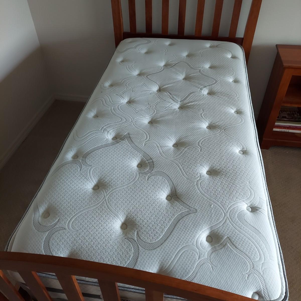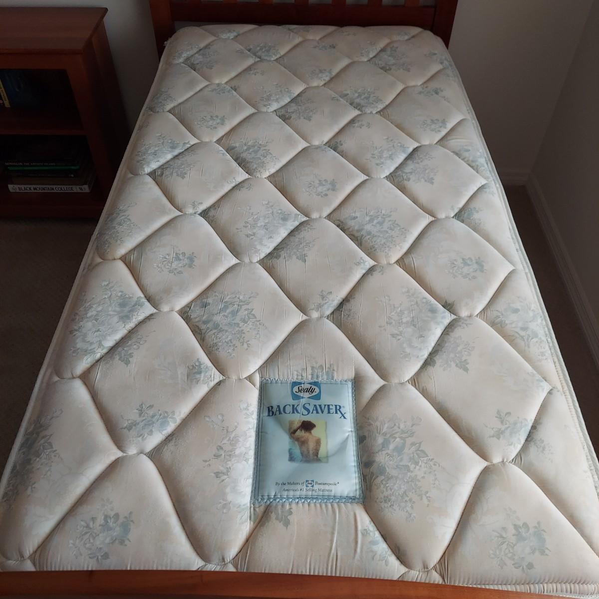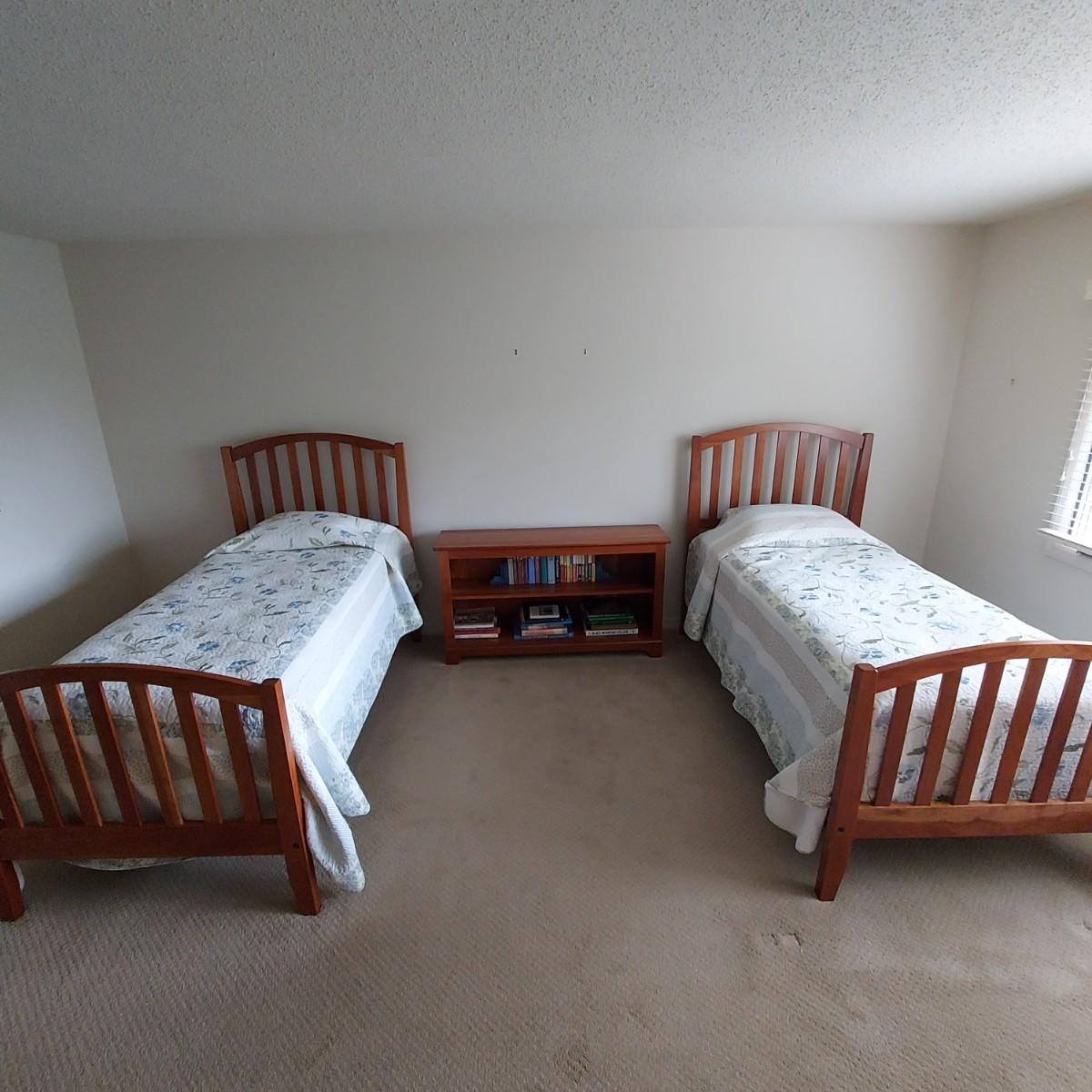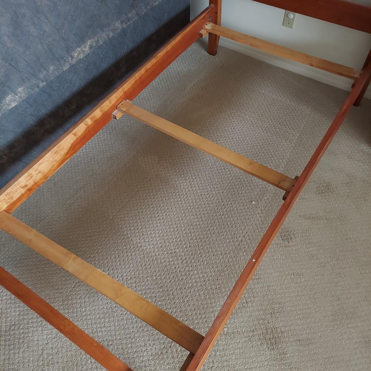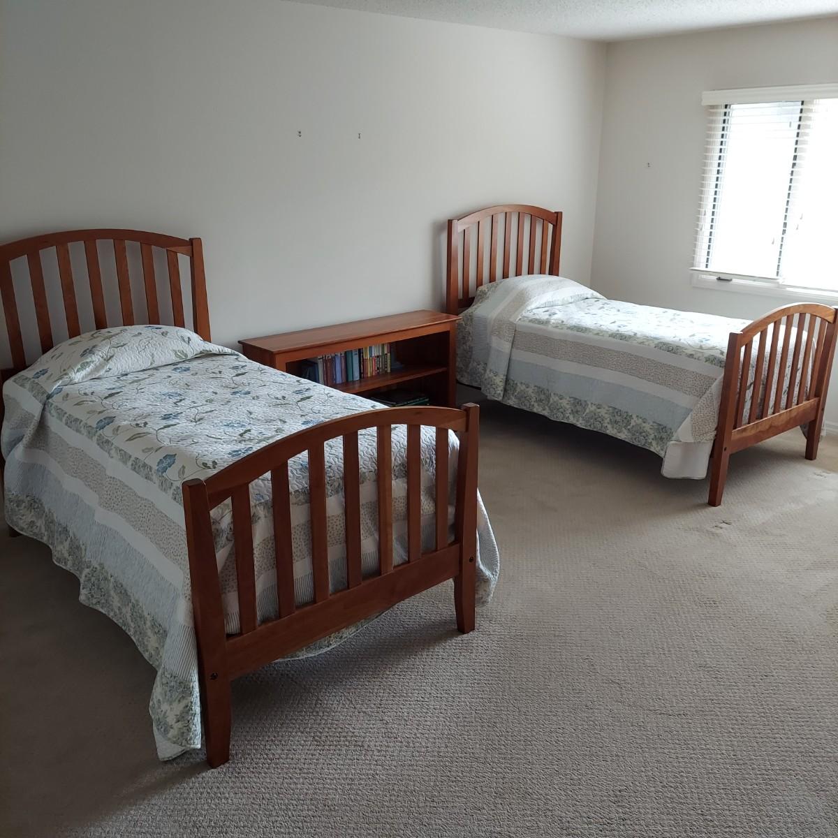 Two wooden Mission style twin bed frames with matching floral quilts. The beds each measure 42.5" x 80" x 54"H. The quilts are approximately 81" x 109". One quilt has a stain that's about 6". Bed Frames will need disassembled at pickup by winning bidder. Please see photos of hardware and bring appropriate tools. The mattresses are available to the winning bidder if desired, but the winning bidder is not required to take them. Local Pickup Only. Winning bidder must bring assistance to help move and load this item due to its weight and/or size.