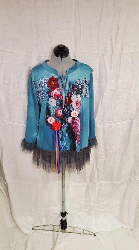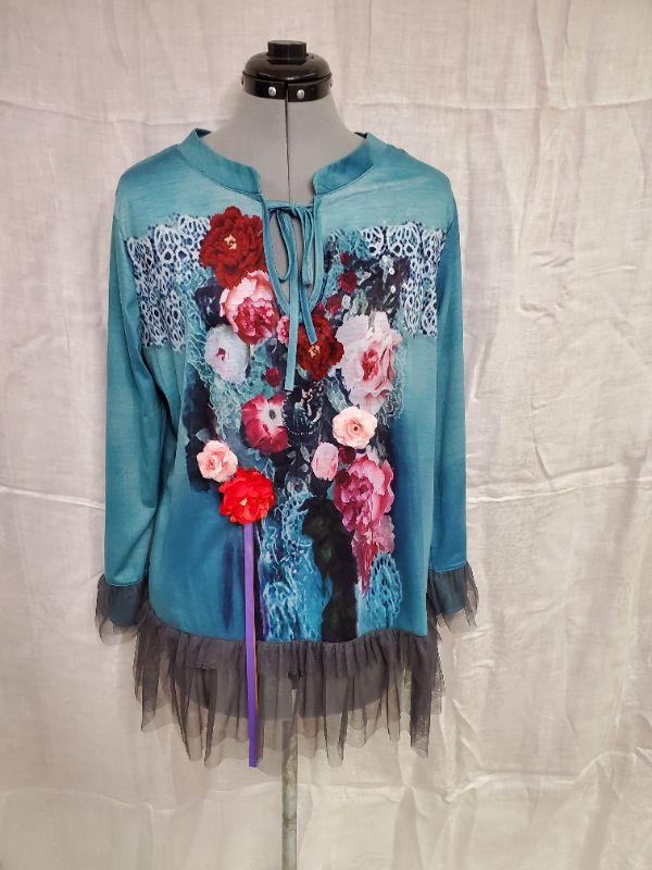 This gorgeous teal floral top is in like new condition. 2XL size