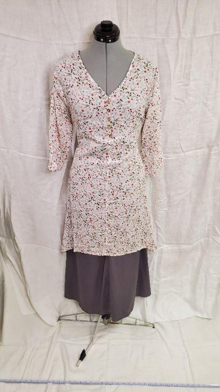 MISSLOOK WHITE AND GRAY FLORAL DRESS