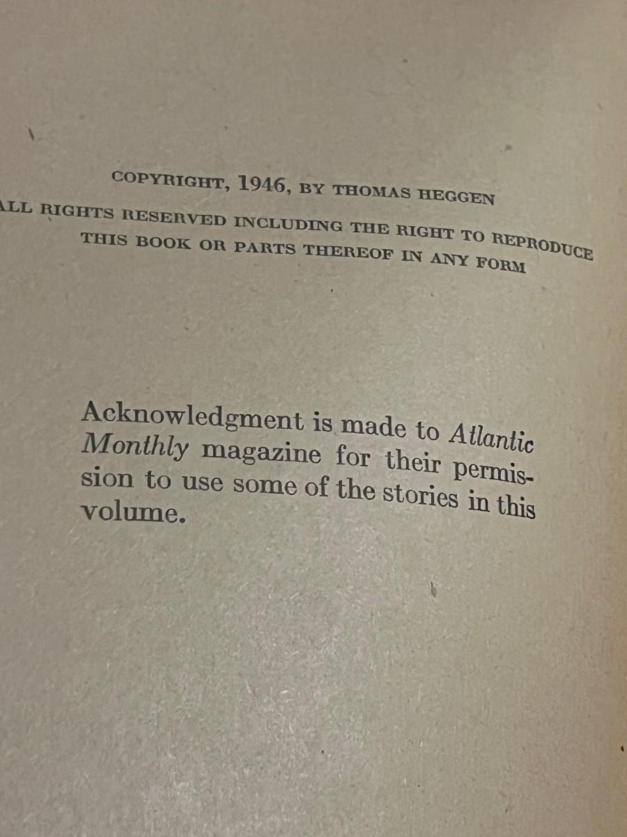 Vintage hardcover copy of Mister Roberts by Thomas Heggen, published in 1946 by Houghton Mifflin. Later printing. Classic WWII naval novel that inspired the Broadway play and 1955 film. Beige cloth boards show visible staining and shelf wear; no dust jacket. Interior pages intact and readable. A solid reading copy of a mid-century classic.