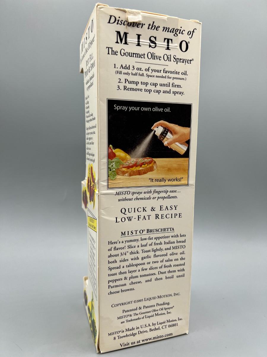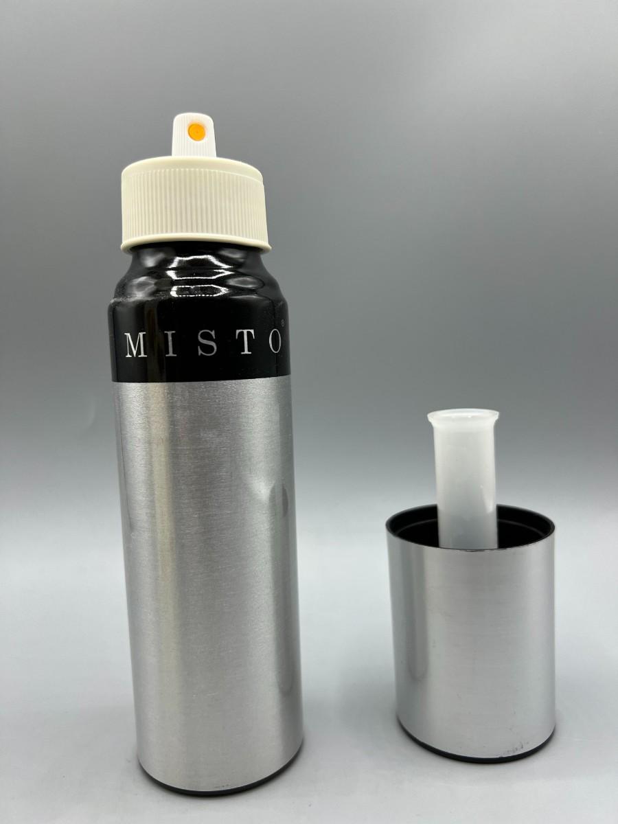 Misto Brushed Silver Aluminum Oil Sprayer Kitchenware, there is some use to the sprayer, but there is no significant damage to the sprayer and is in overall good condition. Check pictures for more details and for sizing.