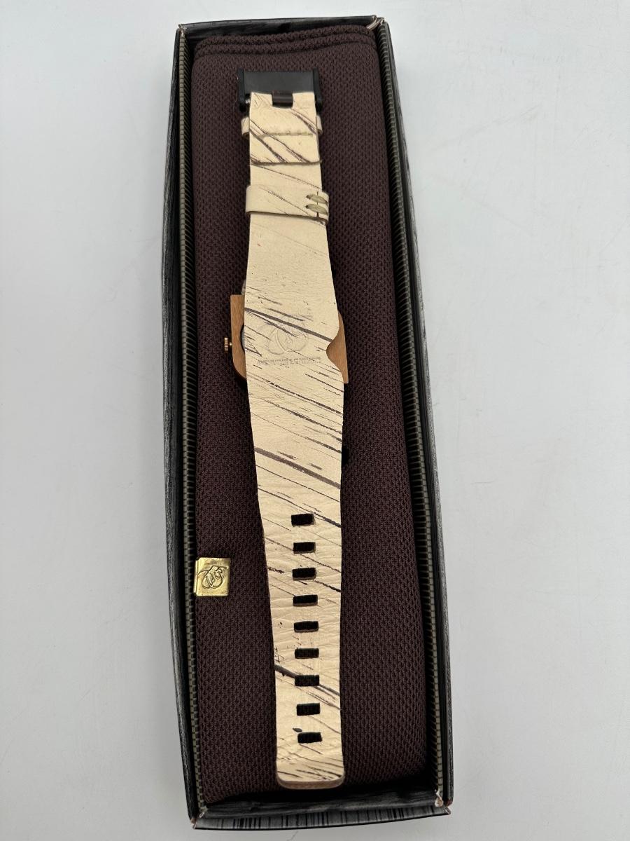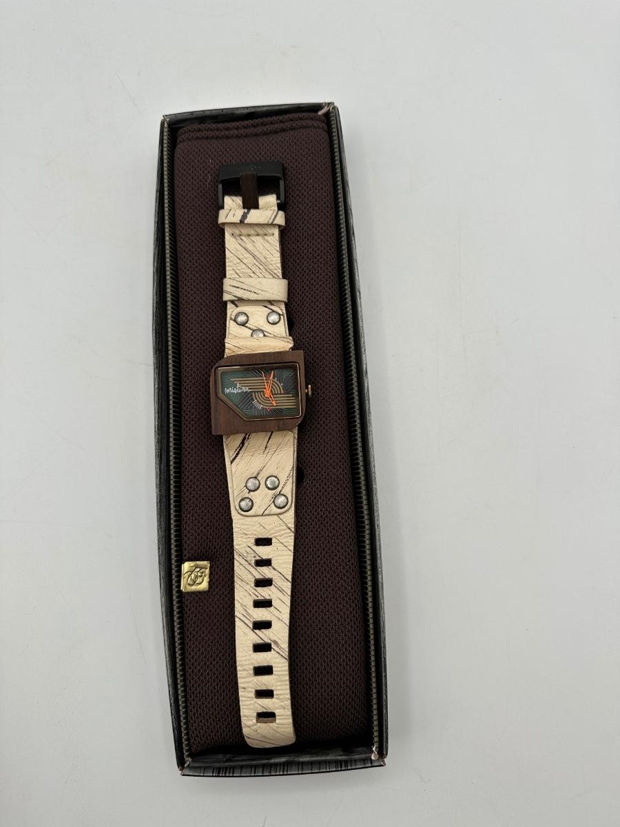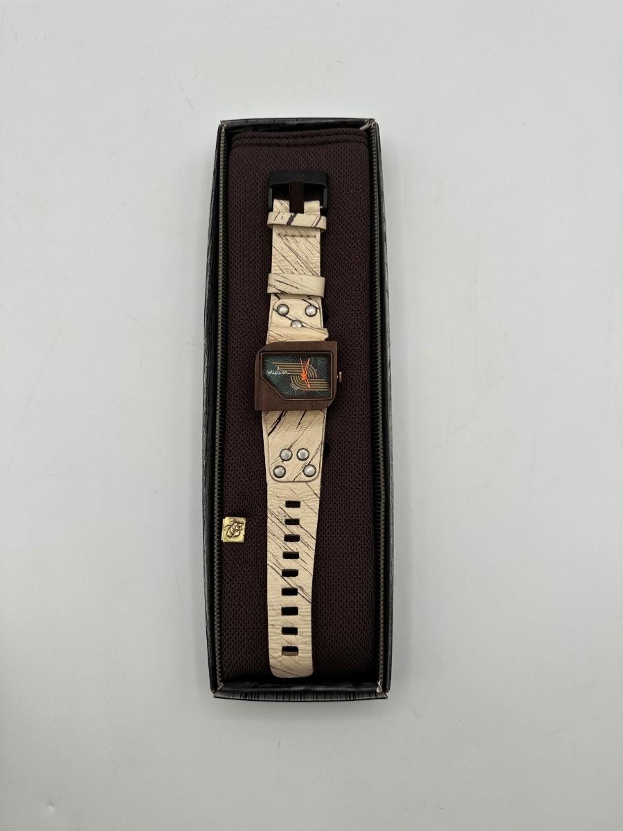 Mistura Handmade Wooden Wristwatch with Cream Leather Band.