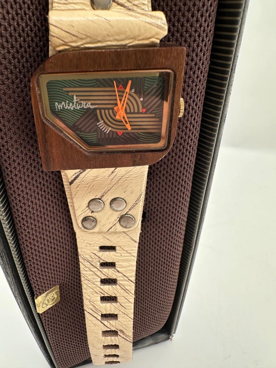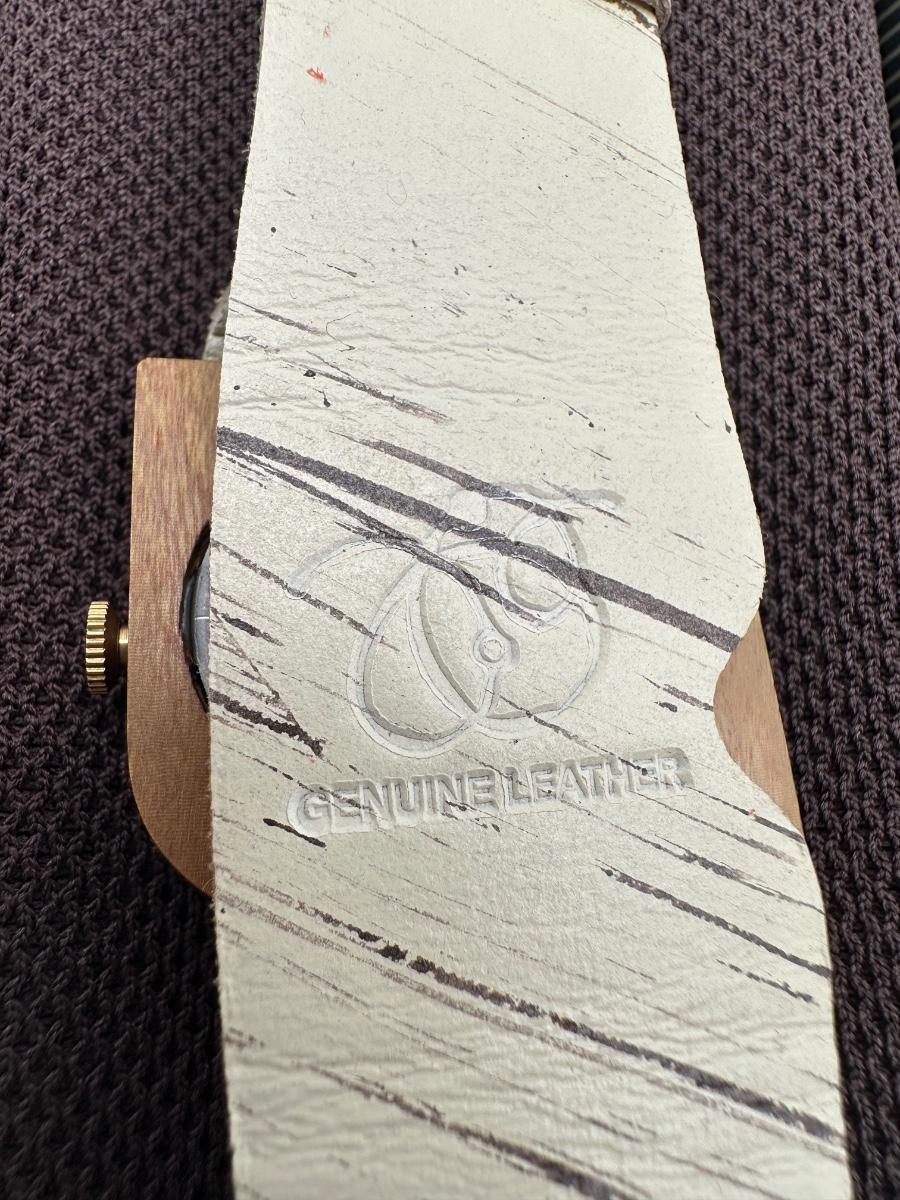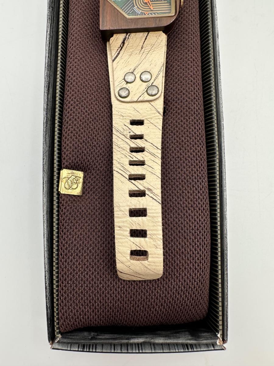Mistura Handmade Wooden Wristwatch with Cream Leather Band.