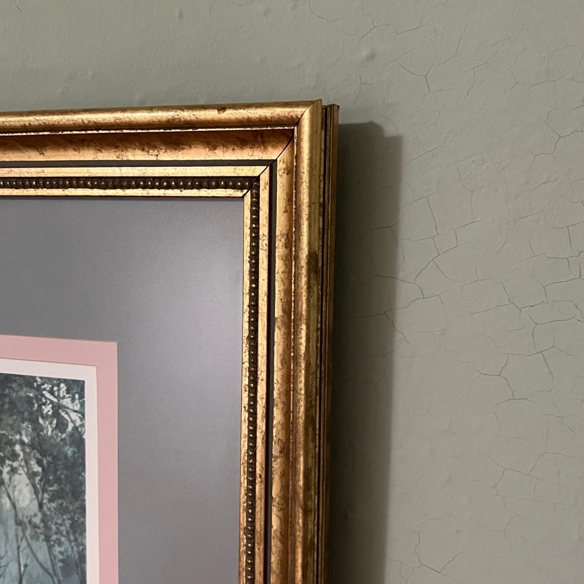 Beautiful watercolor limited edition print with signature. Mounted under what appears to be anti glare glass in a gilded wood frame.