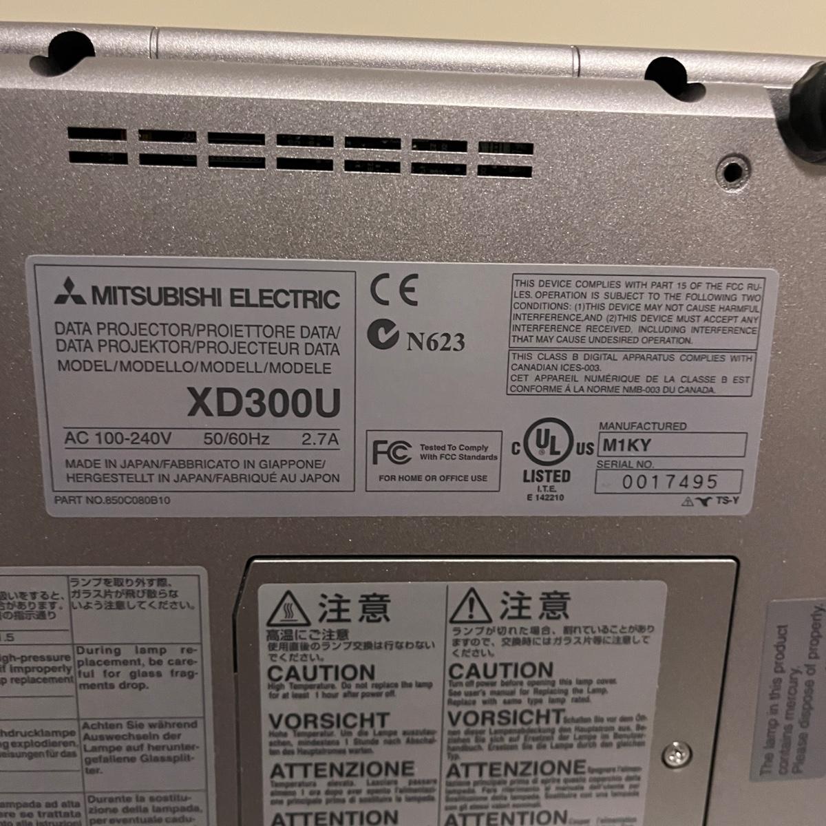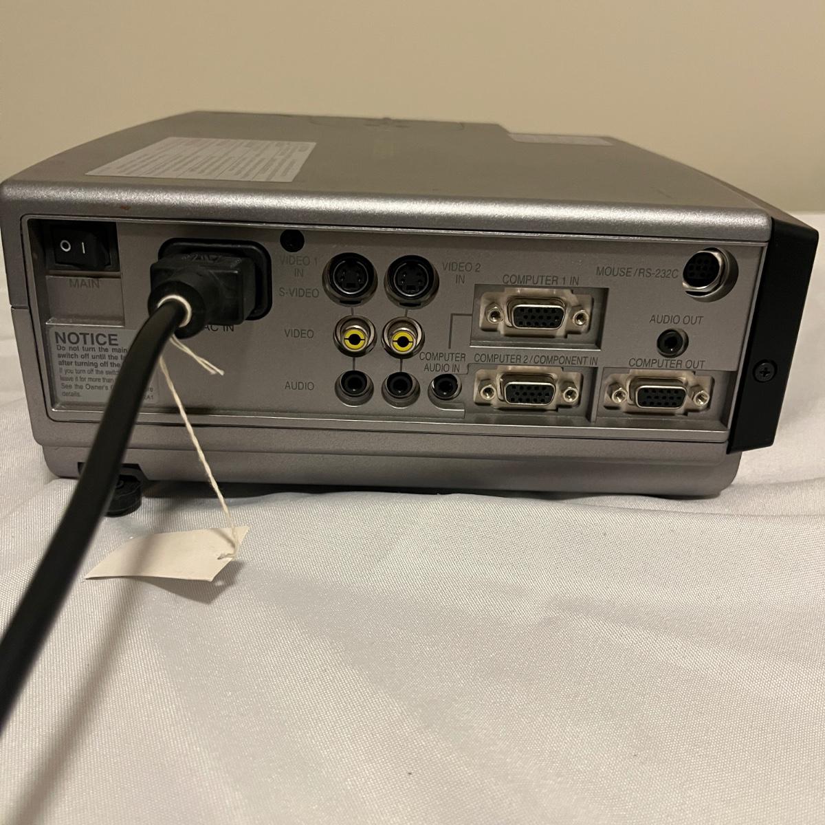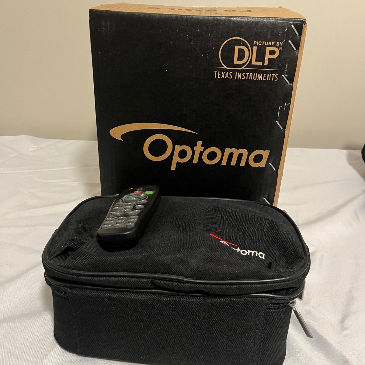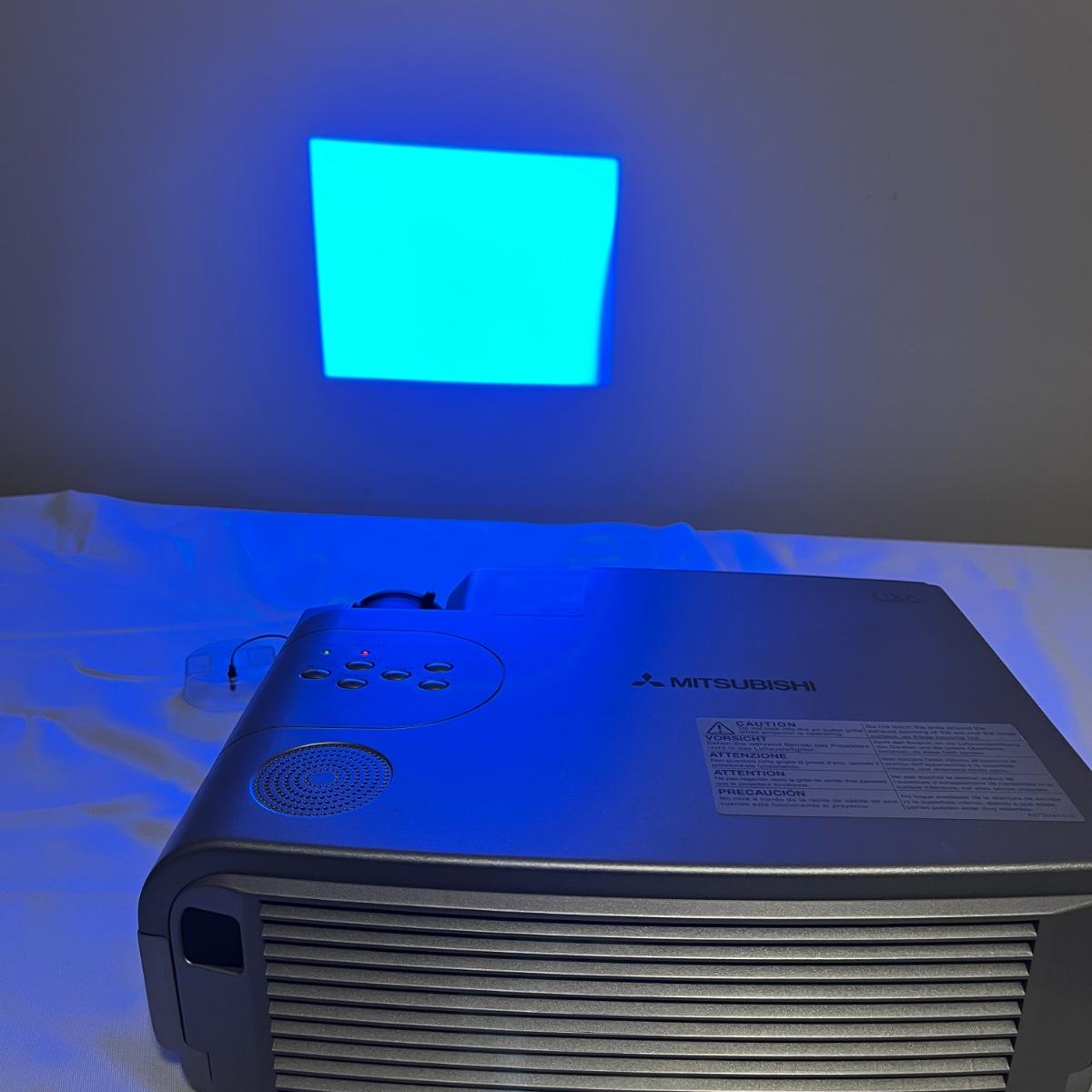 Lot includes a Optoma projector with carrying case, remote and original box and a Mitsubishi projector with carrying case, remote and owners manual. Both items powered on when plugged in, remote was not tested.