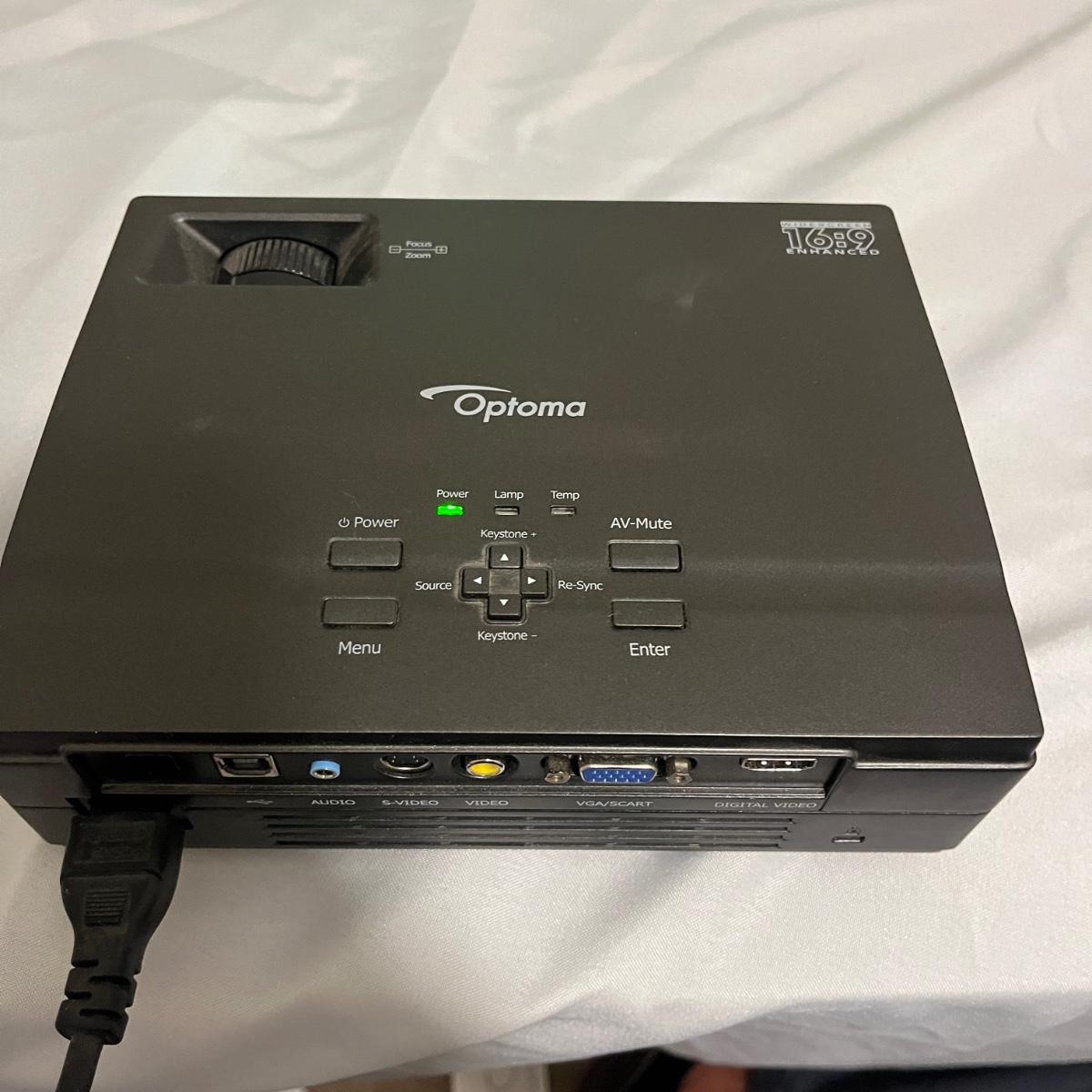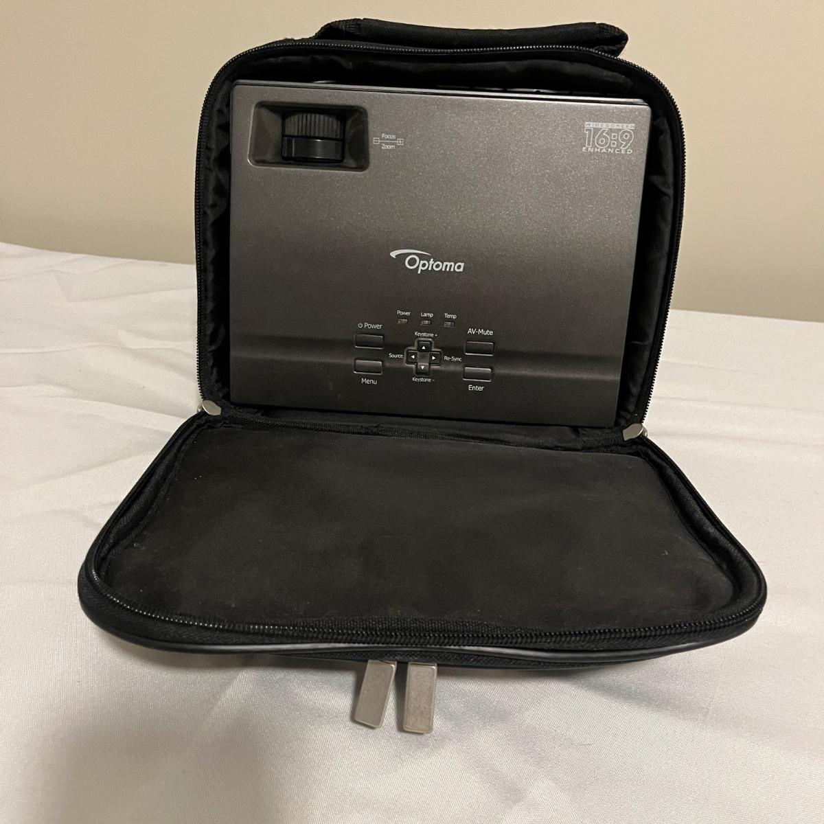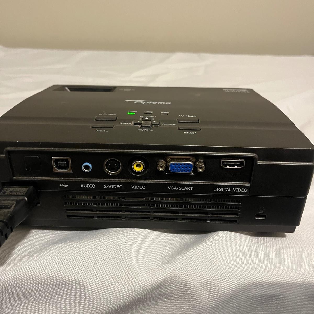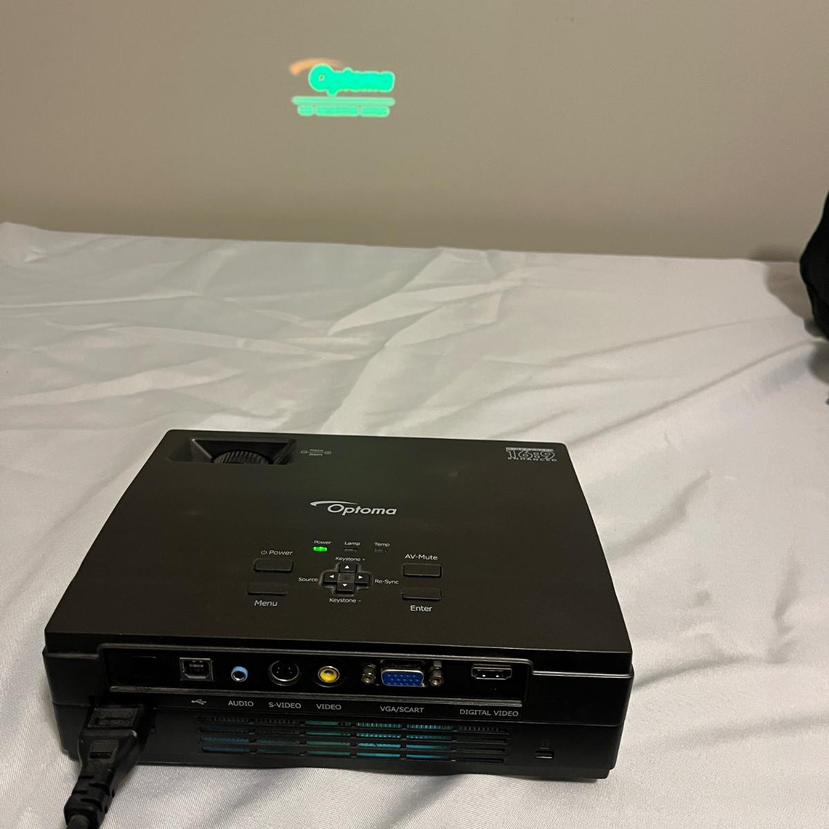 Lot includes a Optoma projector with carrying case, remote and original box and a Mitsubishi projector with carrying case, remote and owners manual. Both items powered on when plugged in, remote was not tested.