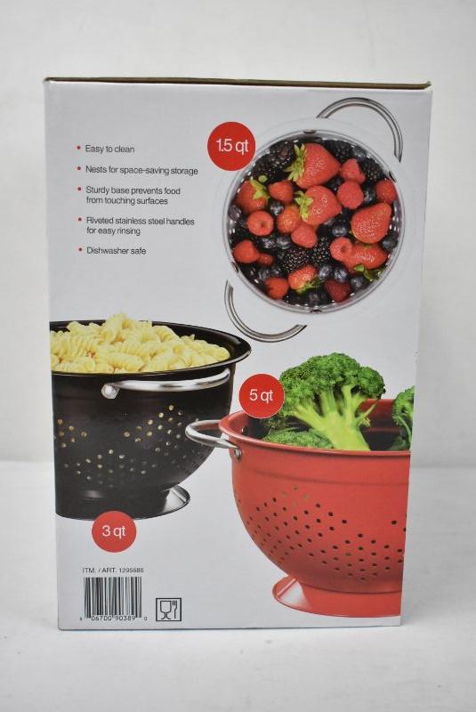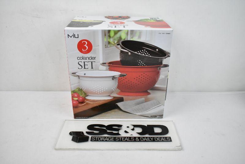Miu 3 Piece Metal Colanders, Nesting: 1.5 Quart, 3 Quart, and 5 Quart - New