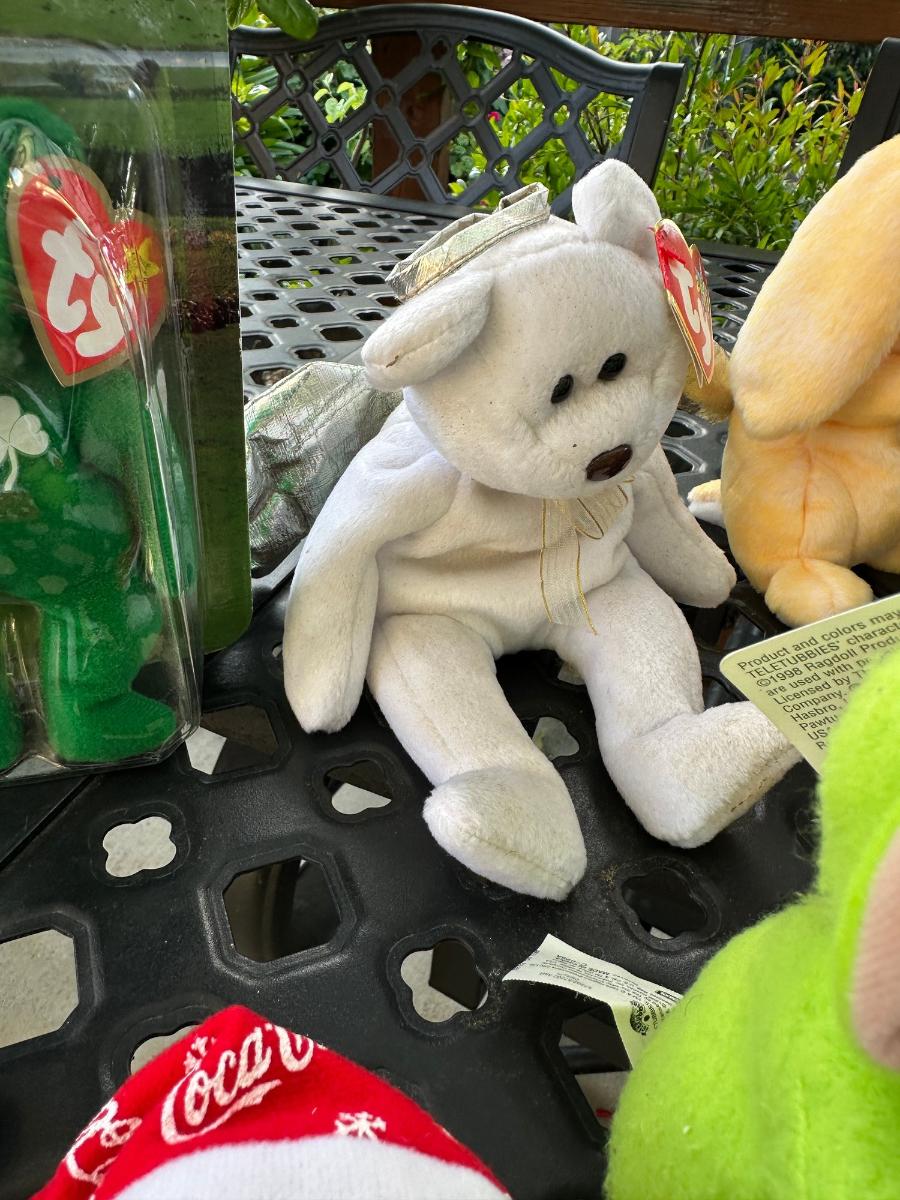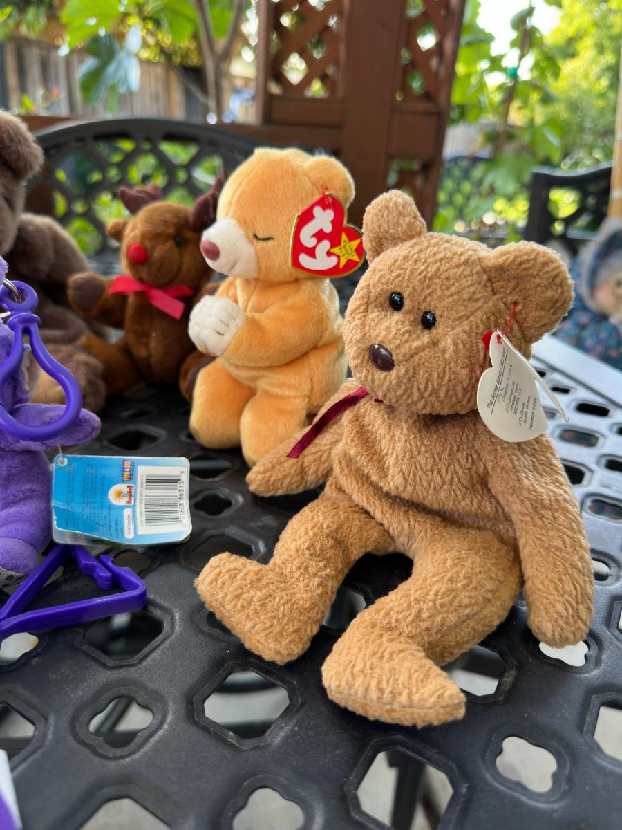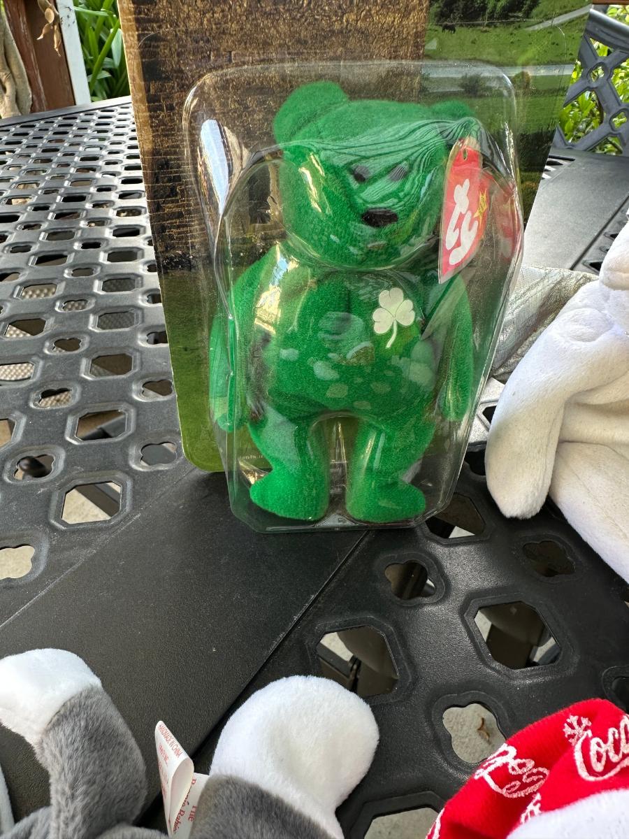 1. Mix Doll Lot- Includes McDonalds Erin the Bear Beanie Baby 1997 with Errors 1993 Ty Oakbrook: This is the now-famous Erin the Bear Beanie Baby that was distributed by McDonalds in 1998 that contains an error on its tush-tag. According to the box Erin was born on March 17 1997 and introduced on January 31 1998. However the tush-tag is dated 1993. Over $100 value