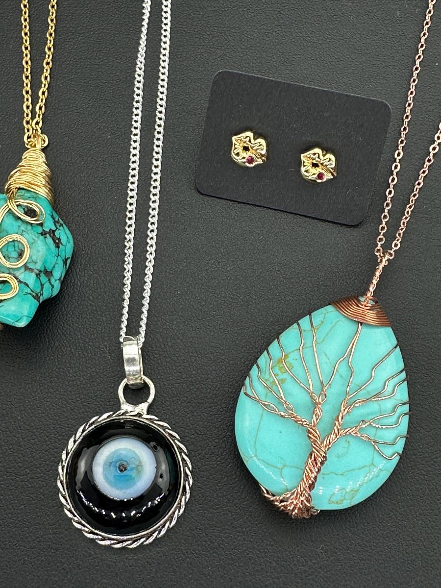 1. Mix Jewelry Lot Includes Turquoise necklace Lava Rock Bracelets Stud Earrings and More._x000D_