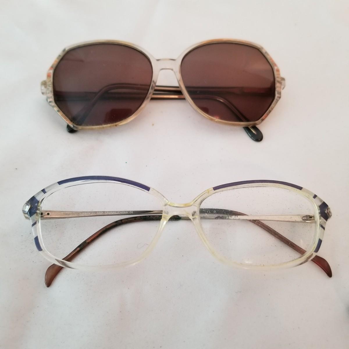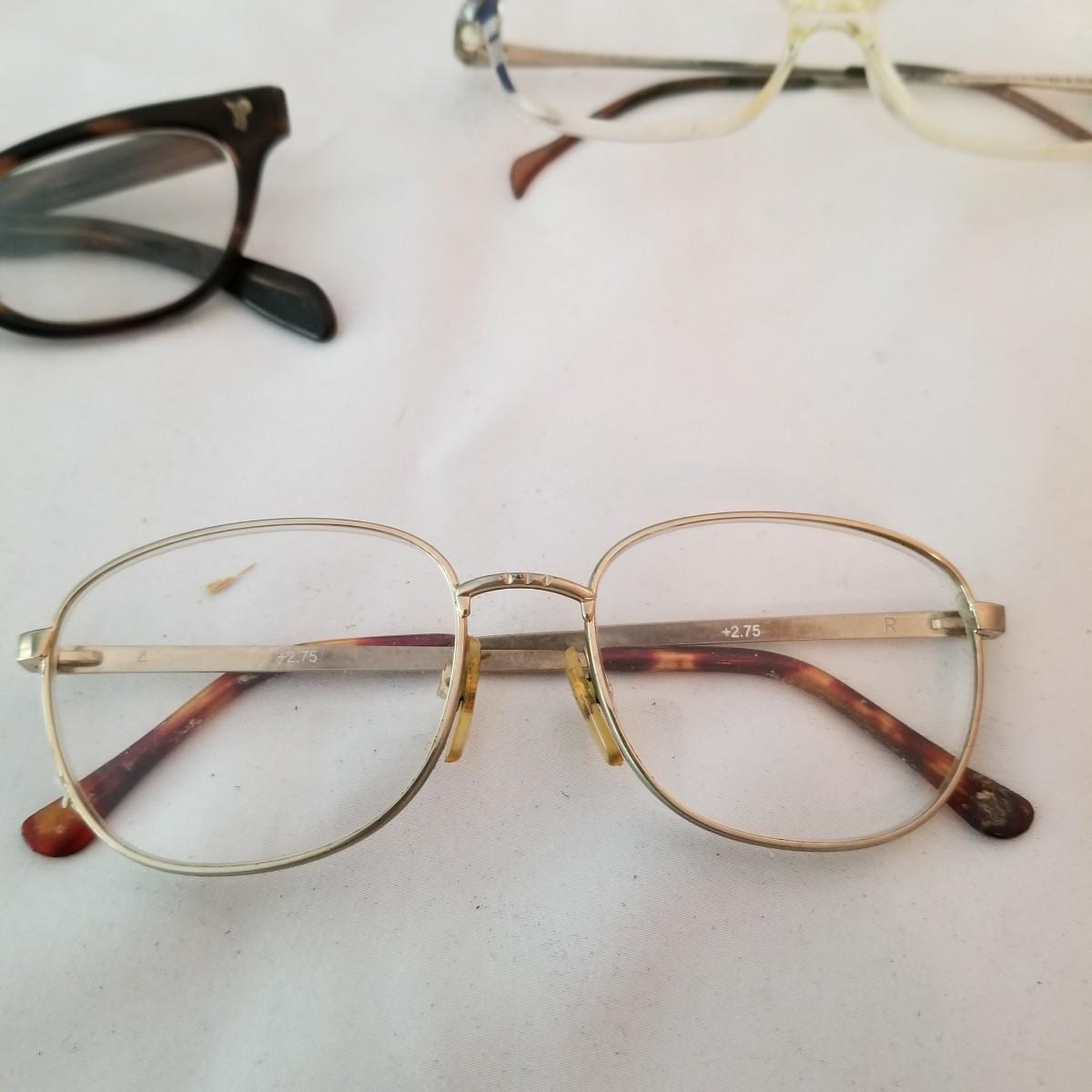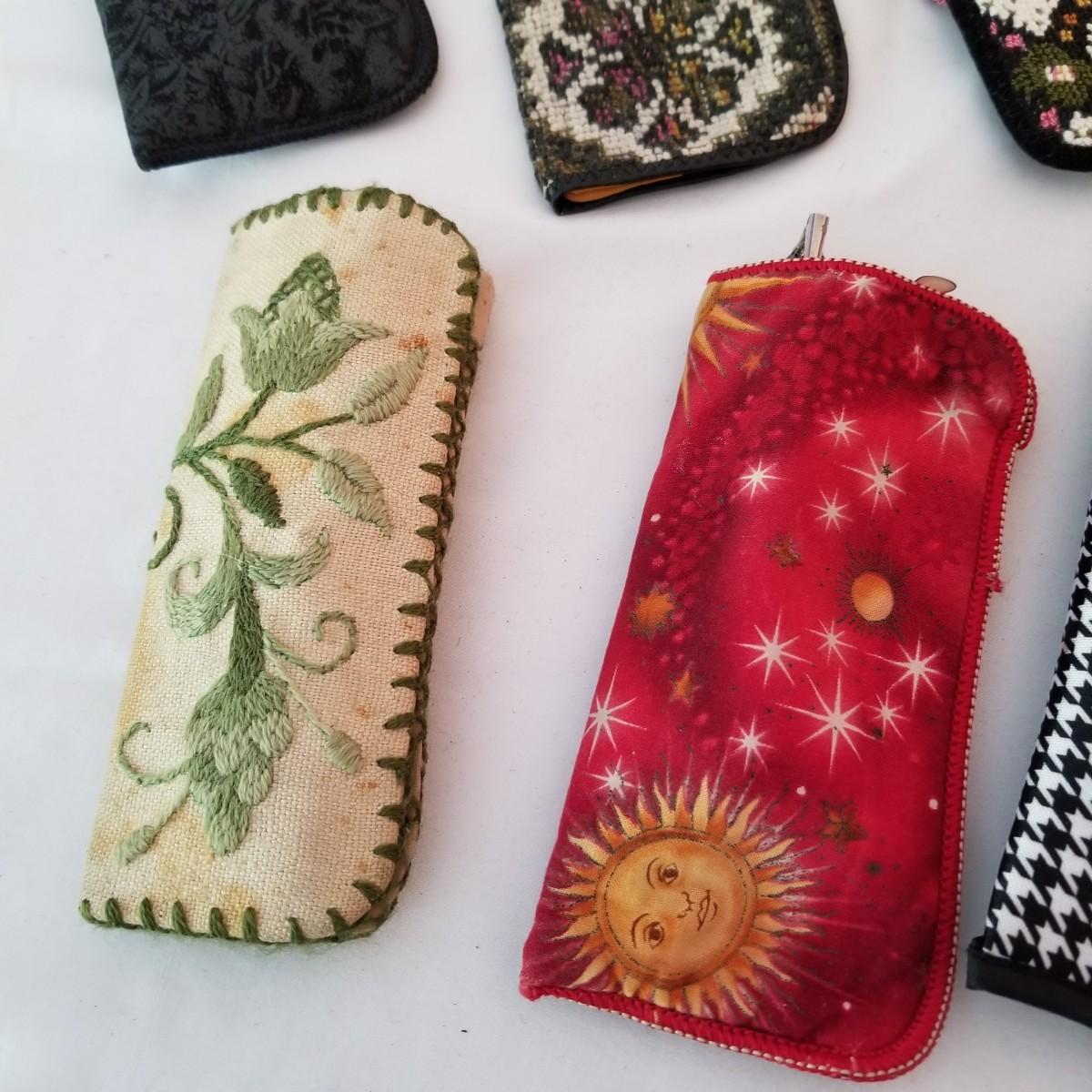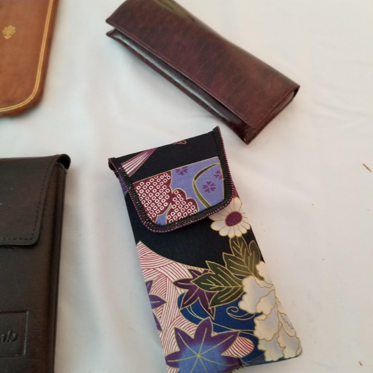 Retro frames and cases plus two desktop eyeglass holders. Ten cloth and pleather cases, seven pairs of mild prescription glasses. See photos for detail. Shipping available.