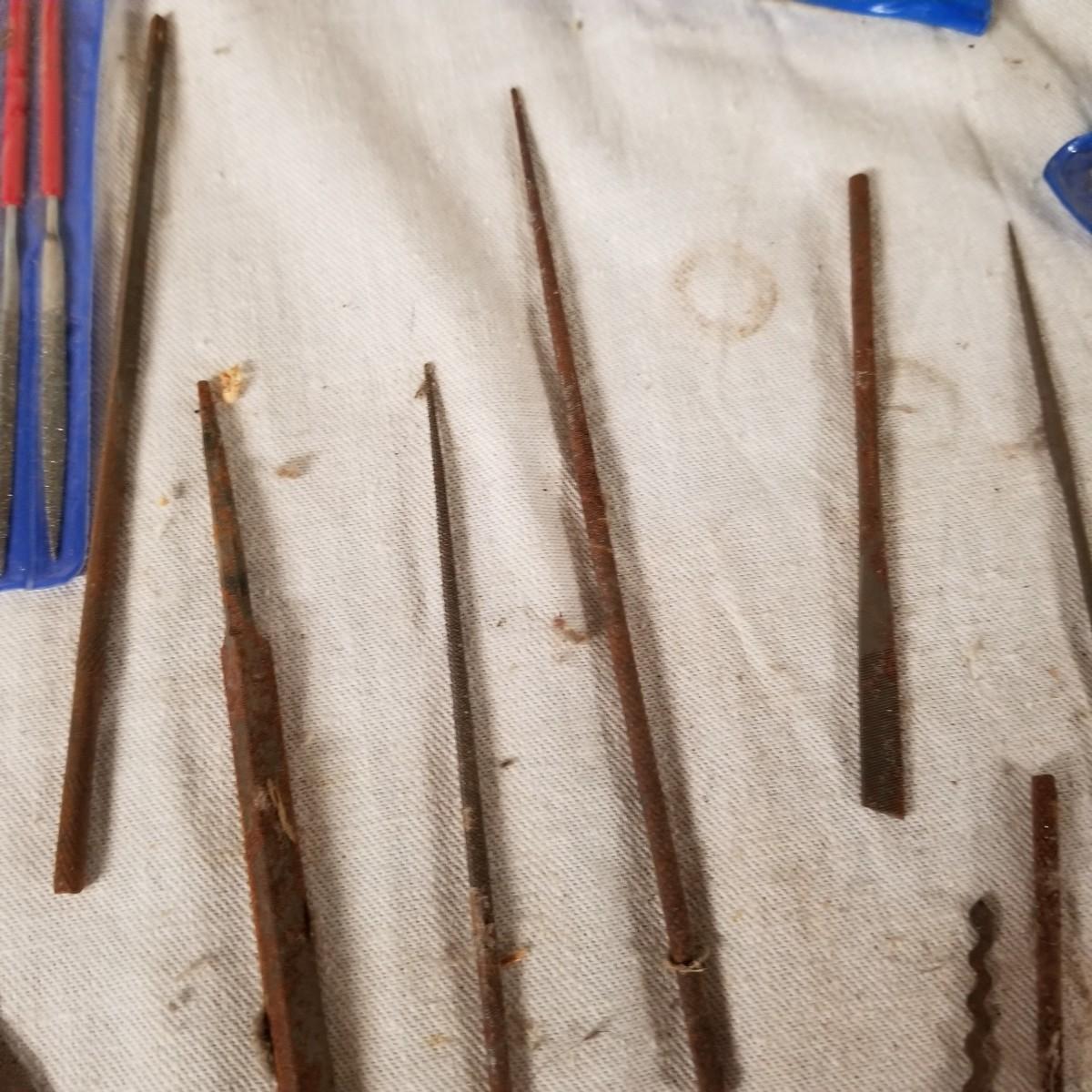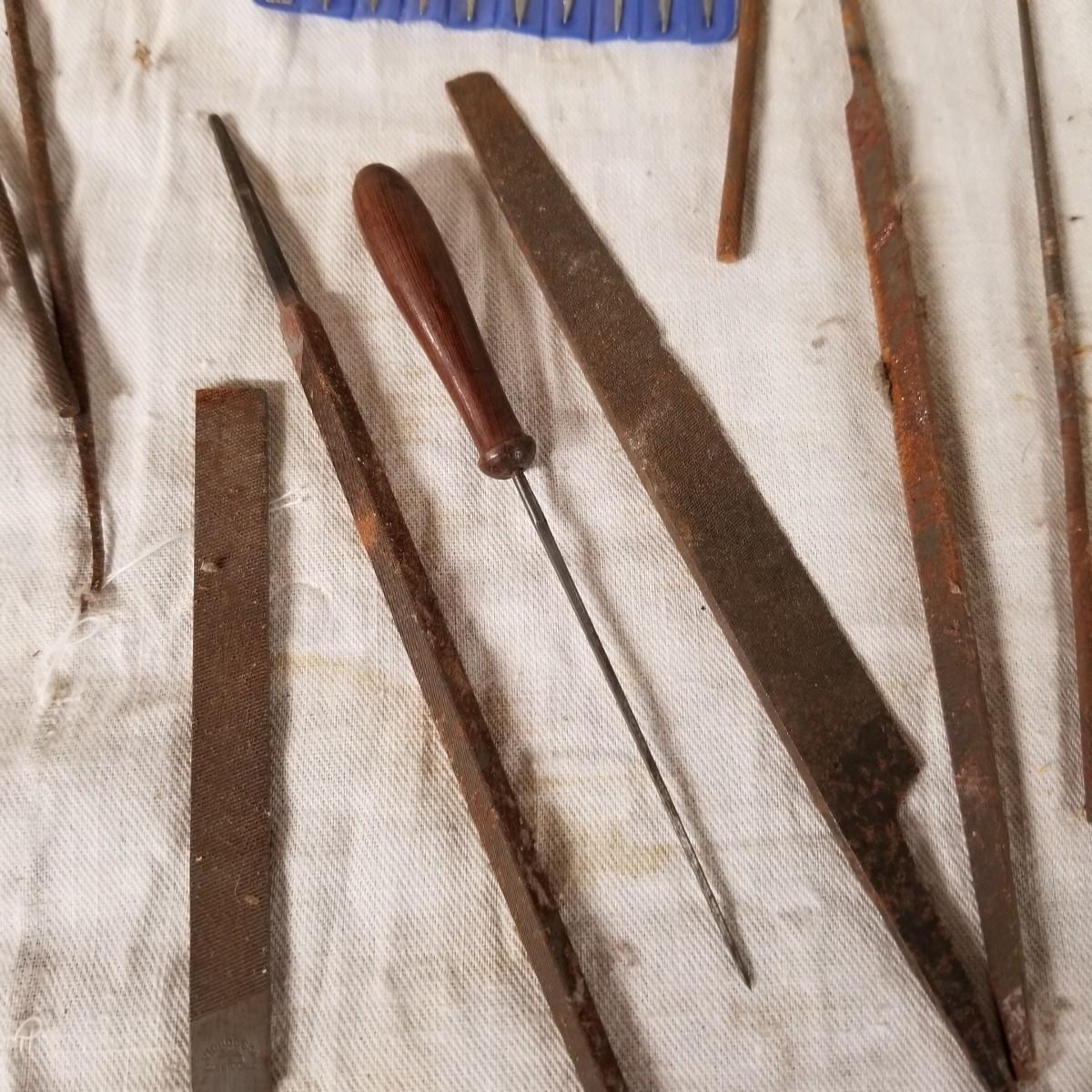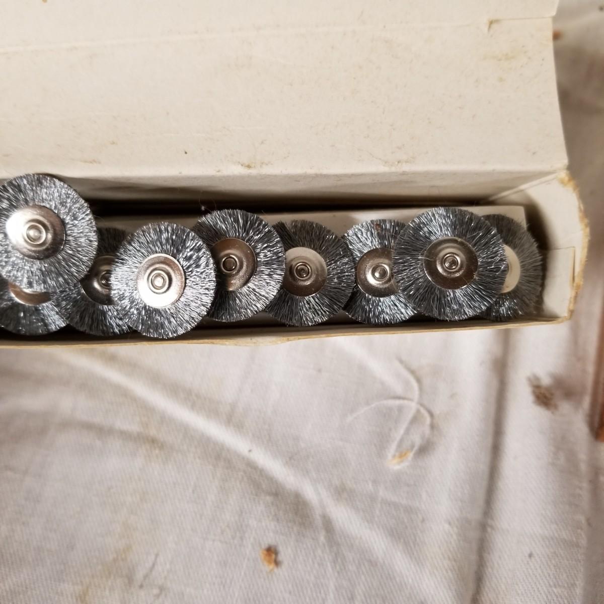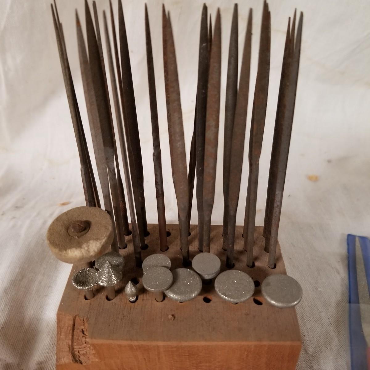 Assortment of small files rifflers and picks.  Some standard cut and some diamond.  Some appear to be new and others used.   Also includes box of 21mm steel brushes, new, and several diamond head tools.  Shipping available.
