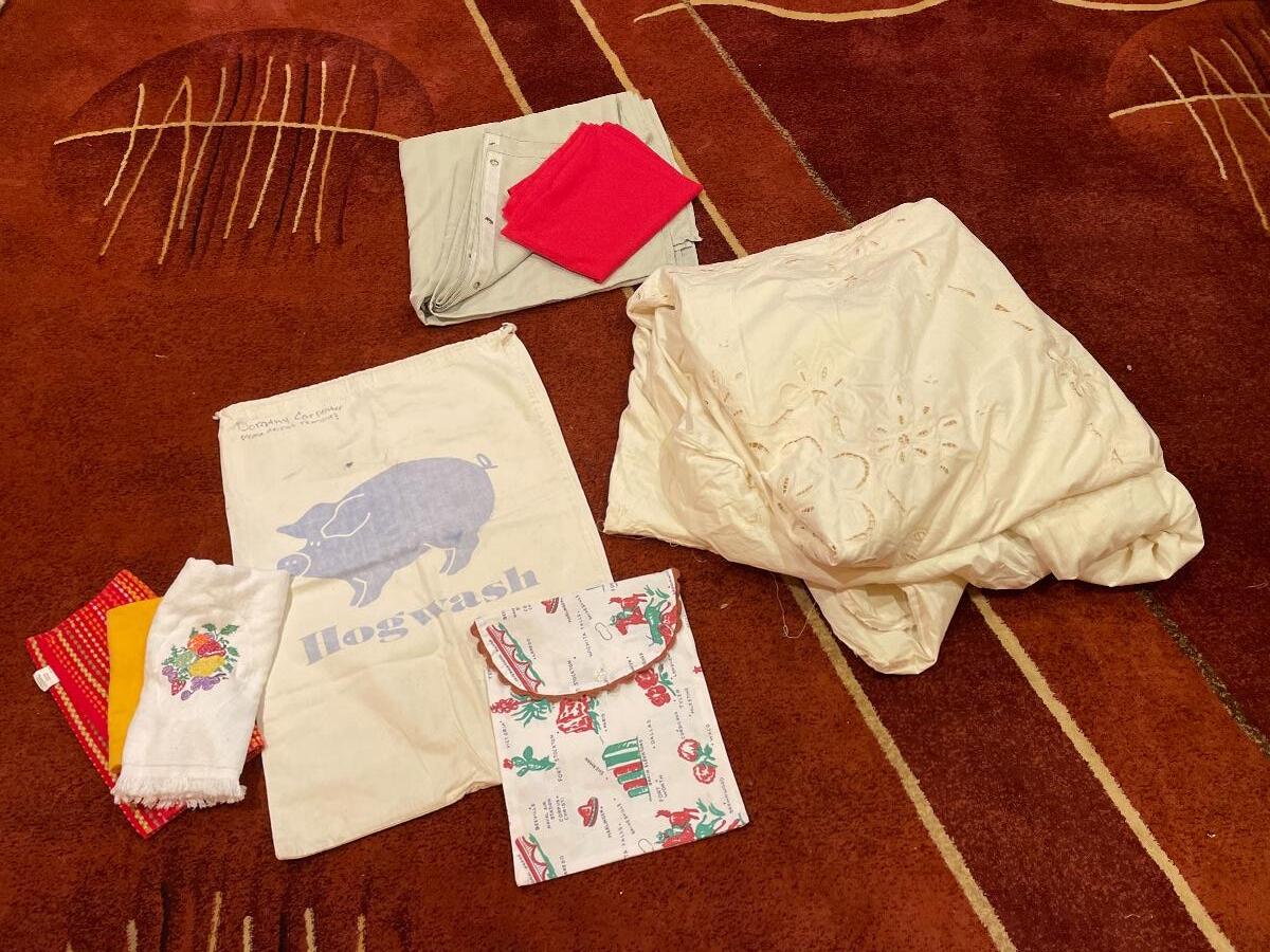 #489 Mix of Queen Duvet Cover, Landry Bag, Cloth Shower Curtain Etc