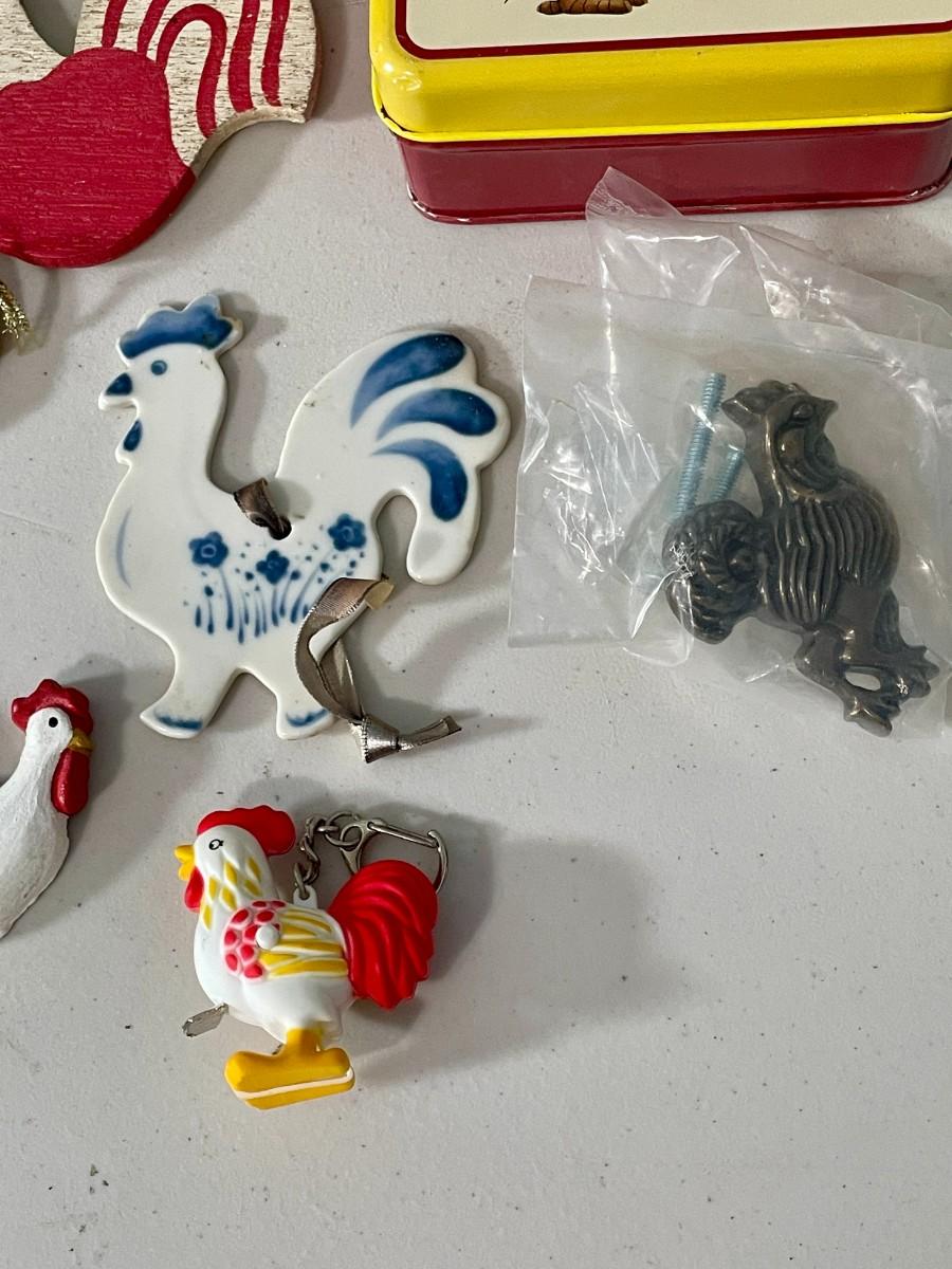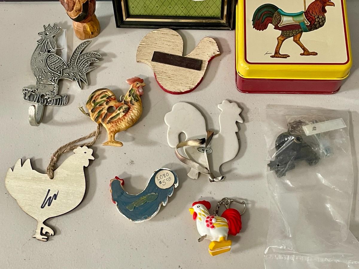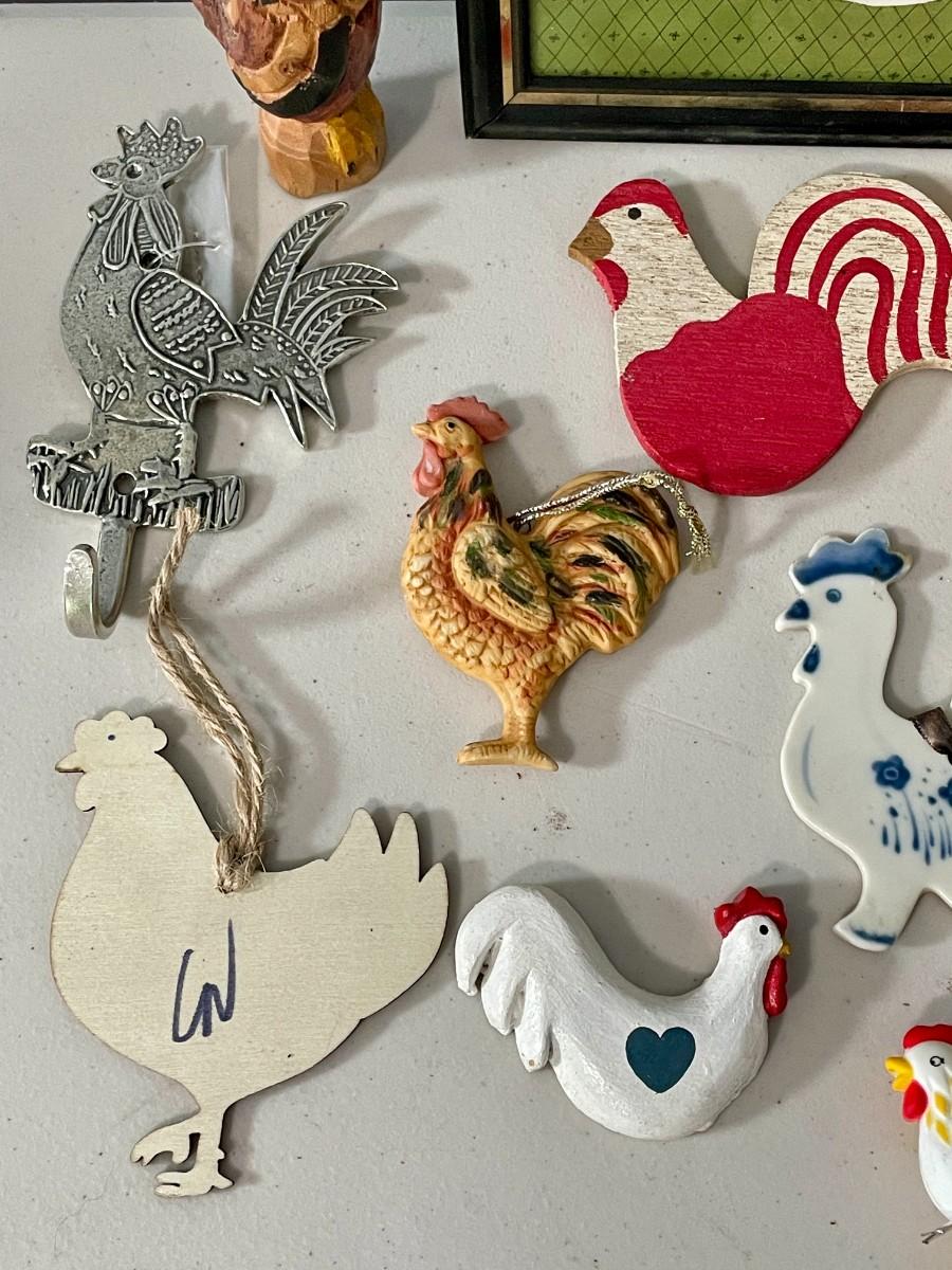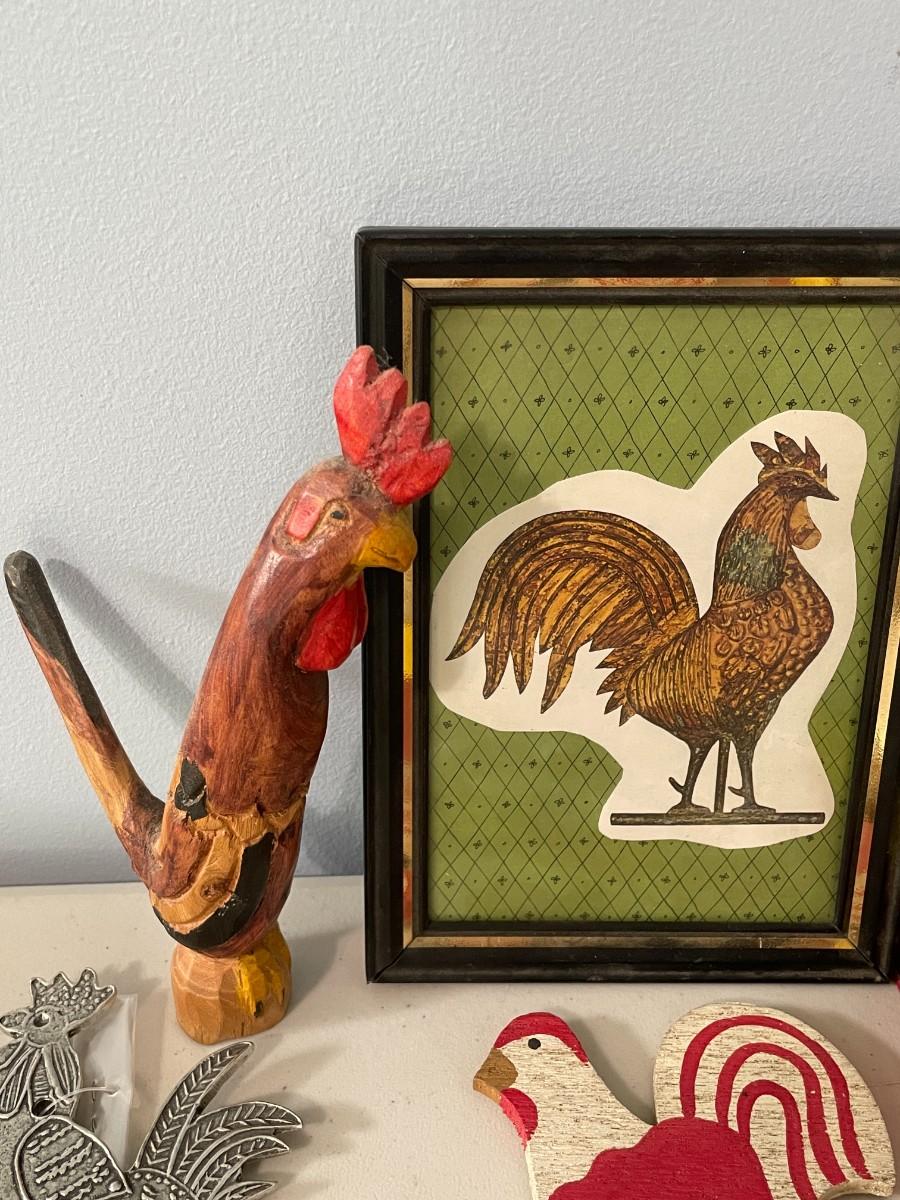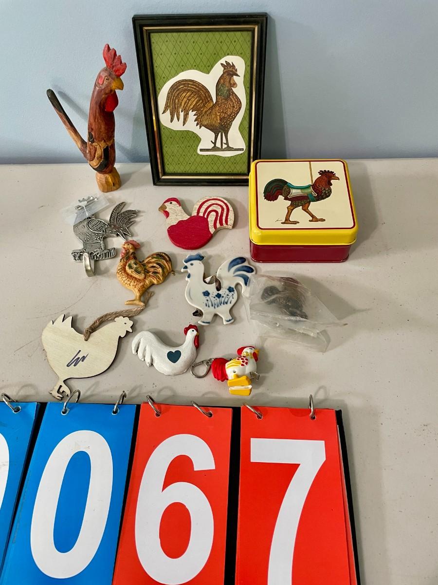 Includes wood, metal, plastic and ceramic roosters.