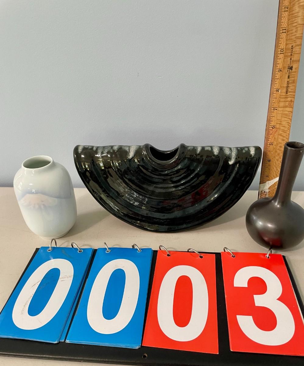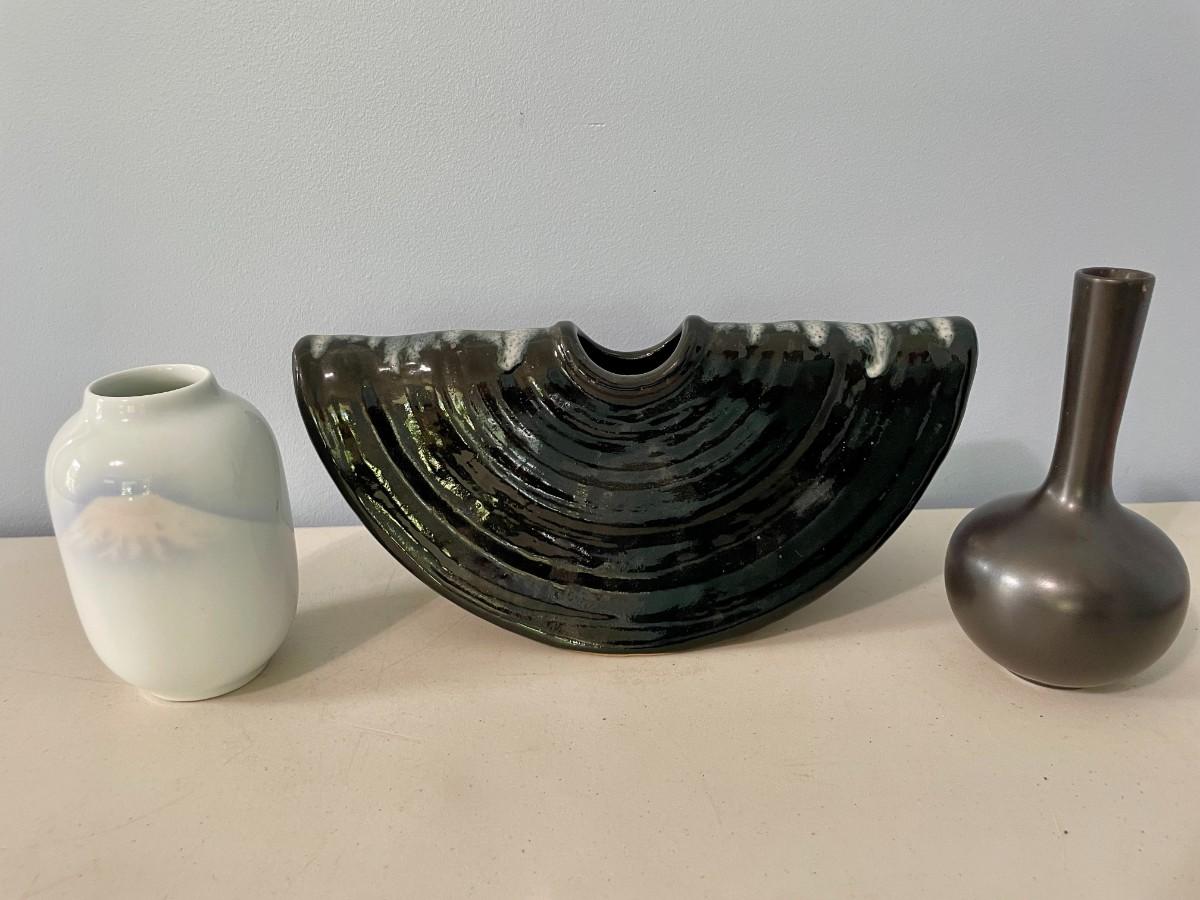 Includes two pottery and one ceramic vases.