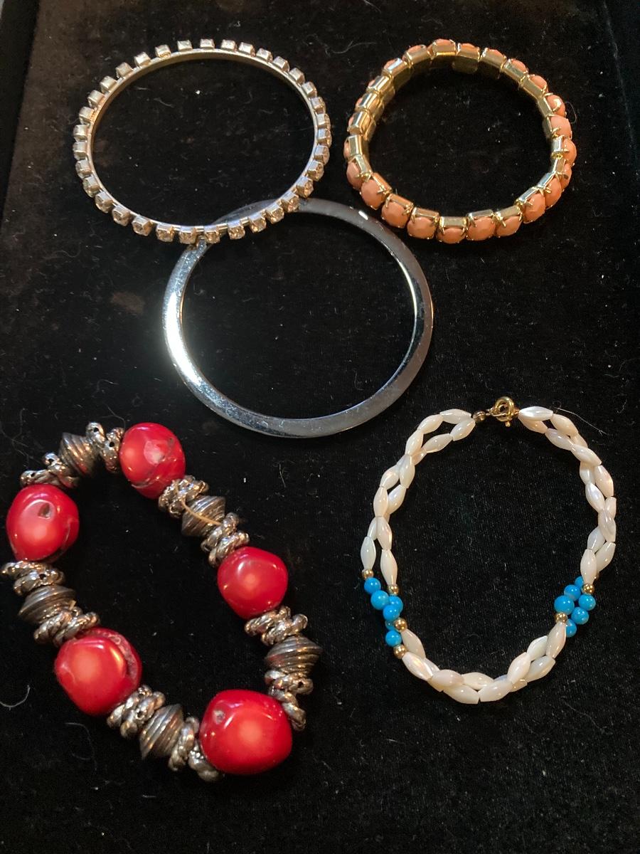 Mixed 5 piece Bracelet Lot with Large Red Cherry Stone Style