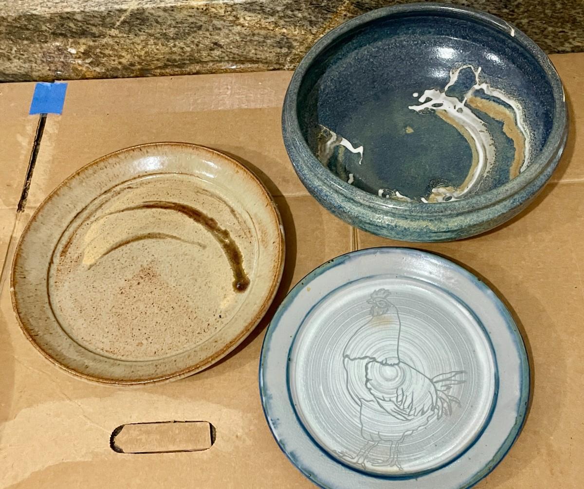 Mixed 5pc lot of hand-thrown pottery plates & bowls